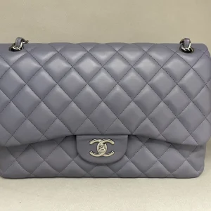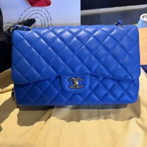 Product details • The iconic CHANEL Handbag • Large / Jumbo Size • Material: Blue Lambskin with Silver-Tone Metal • Colour: Blue • Hardware: Silver • Height: 19.5 cm •...
