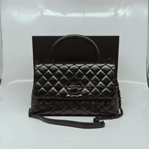 Product details • Dimensions: 15 x 25 x 9cm • Material: Grained Shiny Calfskin & Gold-Tone Metal • Colour: Black • Made in Italy • Year: After 2021 • Microchip...