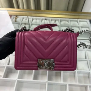 Chanel, purple red V-grain glossy cowhide leboy small size Product details • Measurements: 12 cm (height) x 21 cm (width) x 9 cm (depth) • Material: calfskin • Made in Italy...