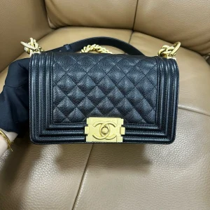 A stunning deep navy Boy Bag with gold hardware, in an almost-new condition. The durable caviar leather makes it a timeless piece you can use for years to come. Product...