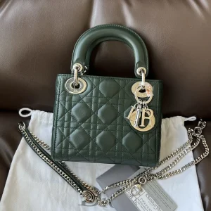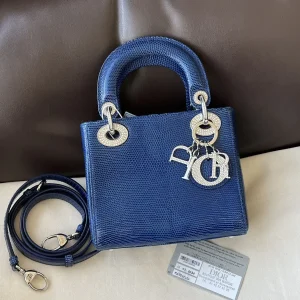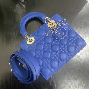 The authentic Lady Dior Mini Bag in blue embodies the House of Dior's profound insight into elegance and beautiful craftsmanship. This timeless and elegant design often features the iconic Cannage...
