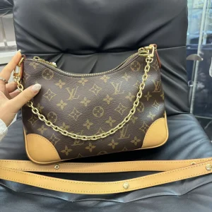 This small Boulogne bag is made from classic Monogram canvas and features a double zipper and a spacious inner patch pocket for your smartphone. The shoulder strap can be worn...