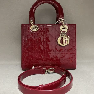 The DIOR Medium Lady Dior Bag in red patent leather is a bold and glamorous icon, where the high-shine finish dramatically amplifies the iconic Cannage quilting and polished ‘D.I.O.R.’ charms,...