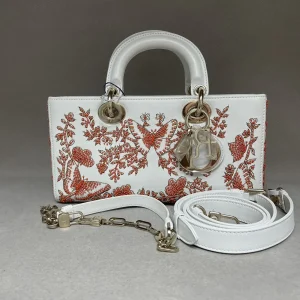 The DIOR Lady D-Joy bag in white lambskin with bead-embroidered ramage butterfly motifs is a breathtaking wearable artwork, where delicate embroidery and beadwork transform the structured silhouette into a romantic...