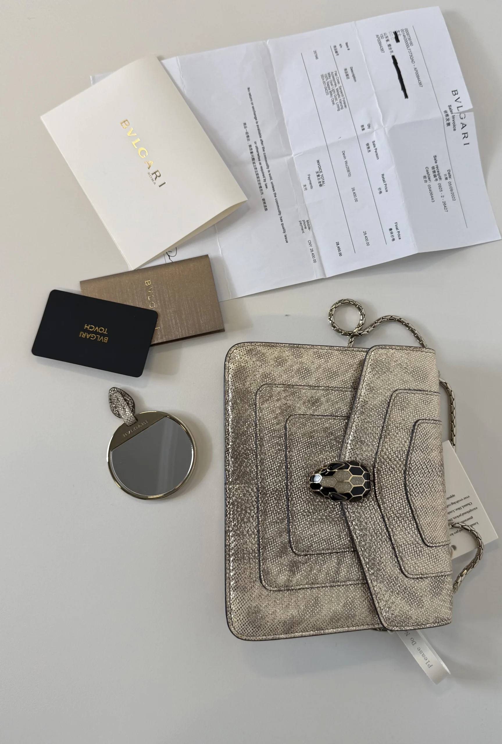 • Accessories: bag,receipt, mirror, cards.