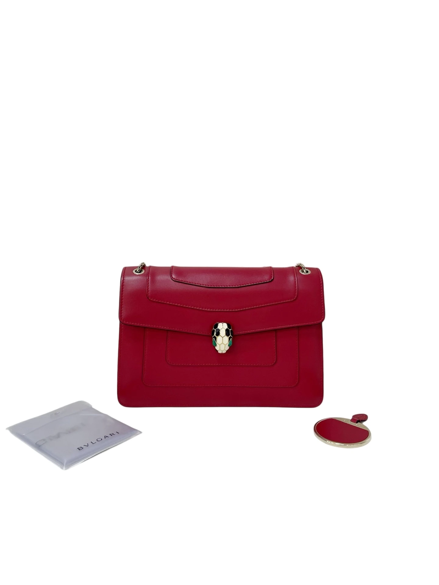 BVLGARI Serpenti Forever Medium Red Leather Bag,An iconic Bulgari design featuring the signature Serpenti snakehead closure, crafted in bold red leather. Elegant yet statement-making, perfect for both day and evening styling.
