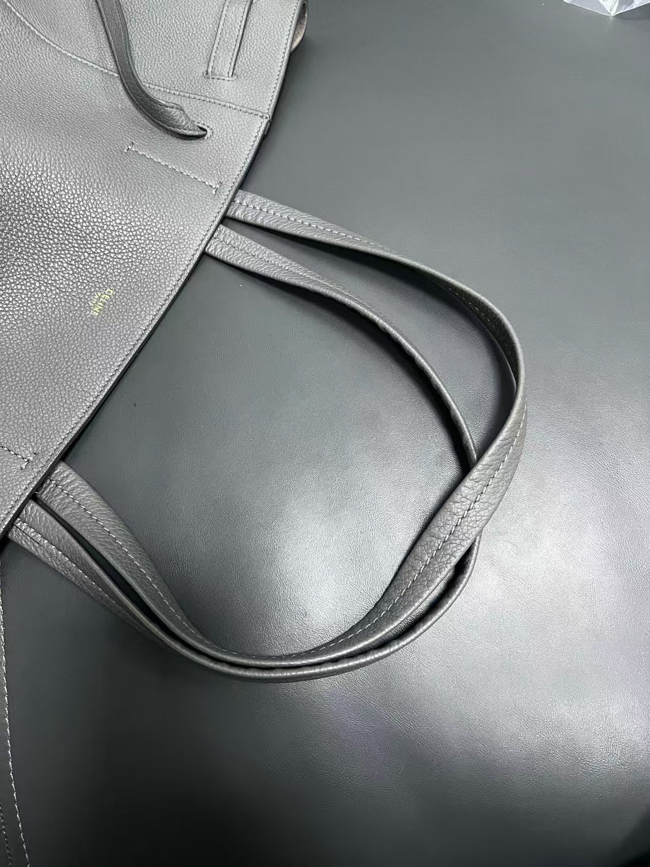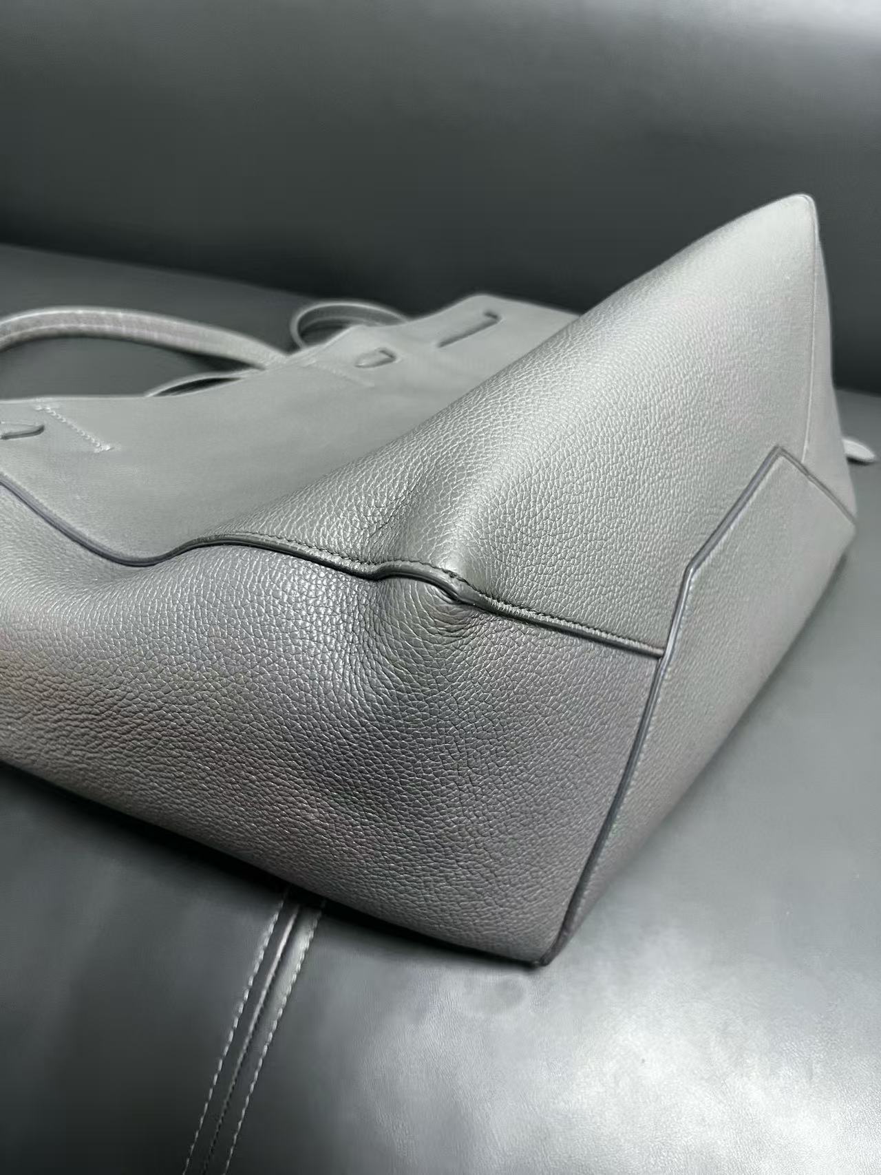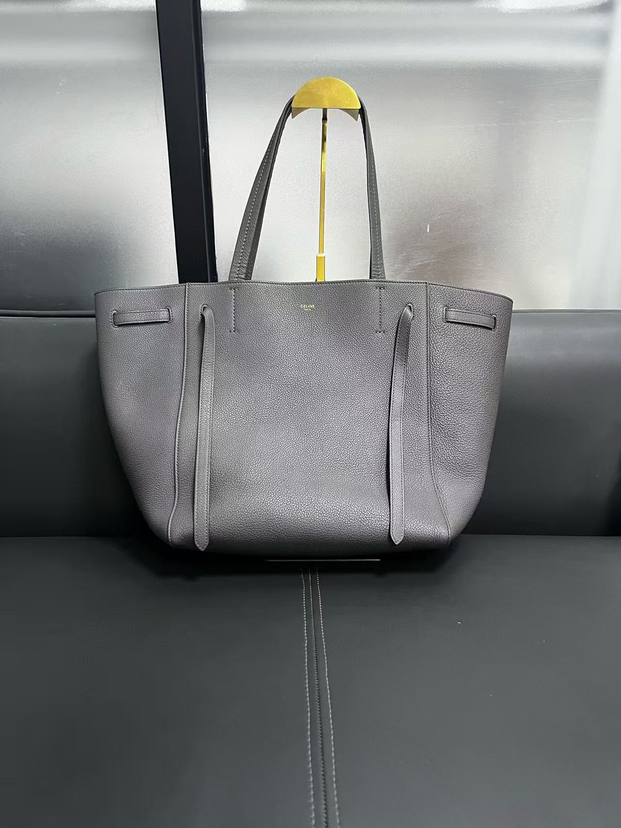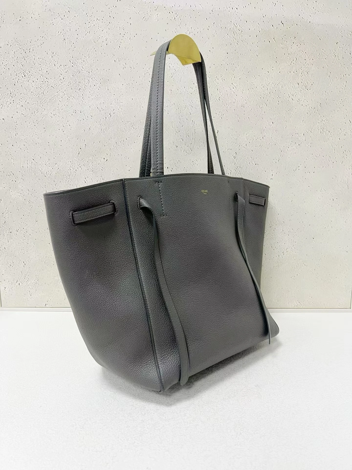 CELINE Cabas Tote Grey Grained Leather Shopper Bag is a minimalist and timeless design crafted in soft grained leather. Spacious and practical, perfect for everyday use and work essentials.