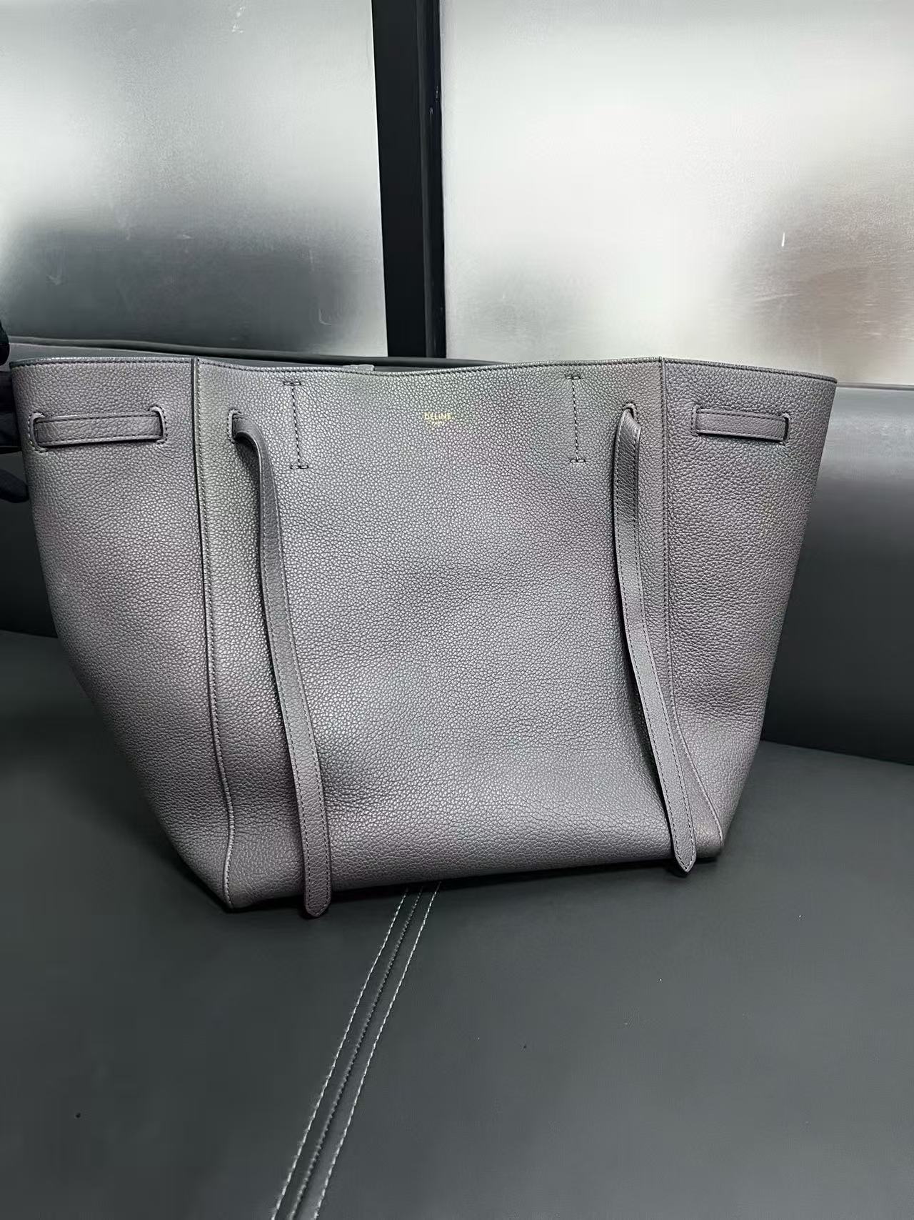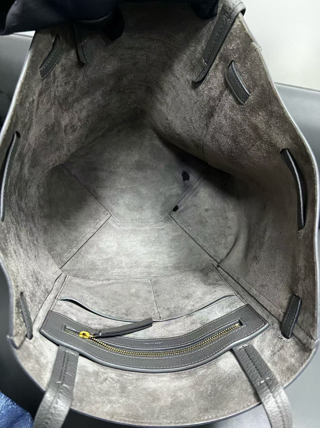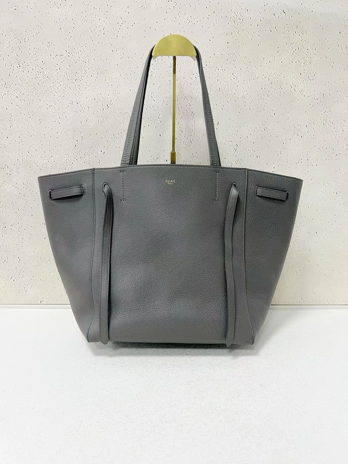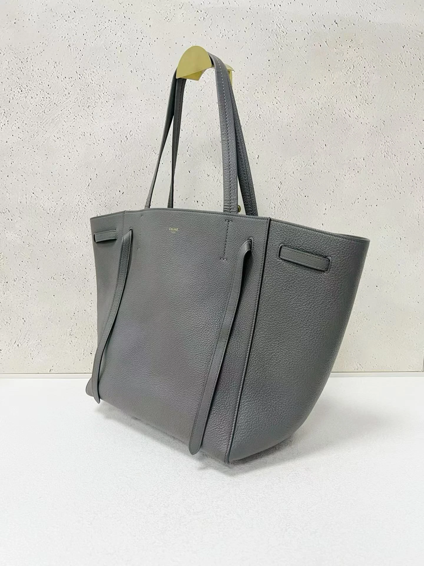 CELINE Cabas Tote Grey Grained Leather Shopper Bag is a minimalist and timeless design crafted in soft grained leather. Spacious and practical, perfect for everyday use and work essentials.