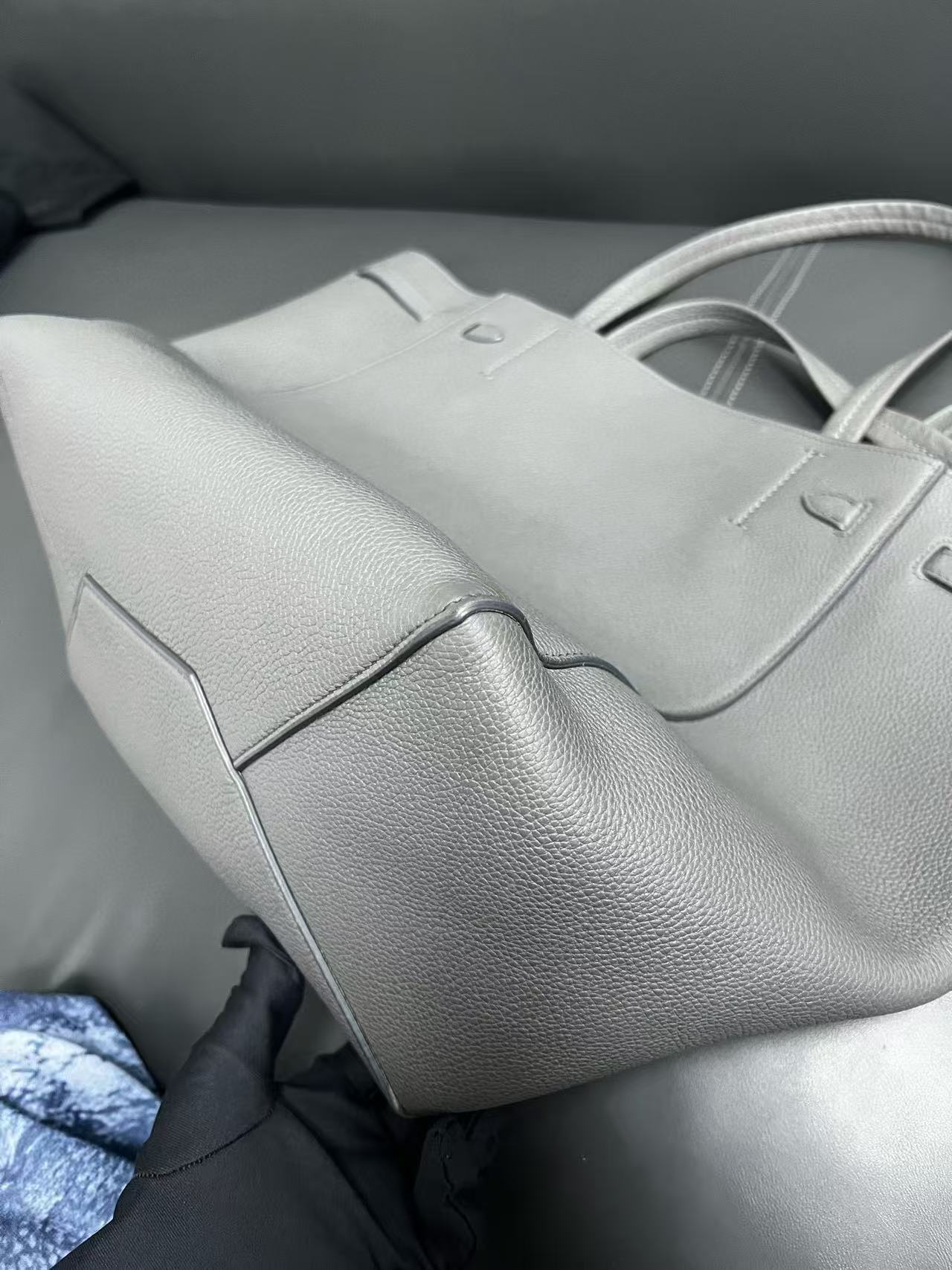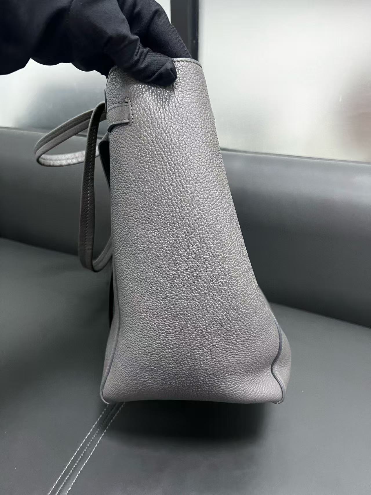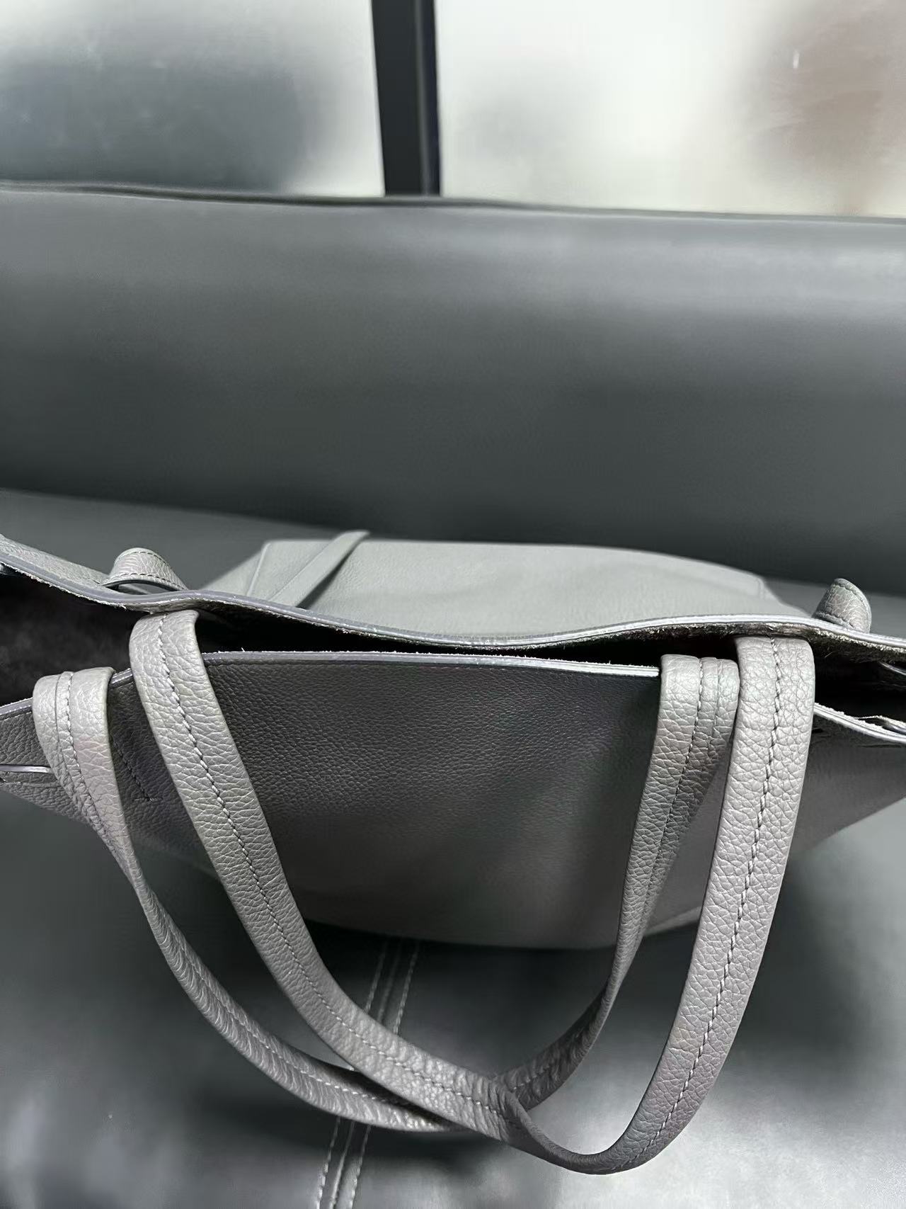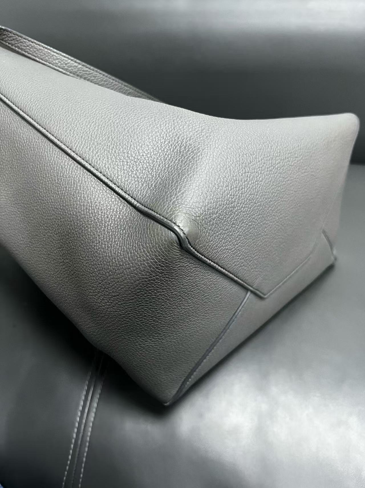 CELINE Cabas Tote Grey Grained Leather Shopper Bag is a minimalist and timeless design crafted in soft grained leather. Spacious and practical, perfect for everyday use and work essentials.
