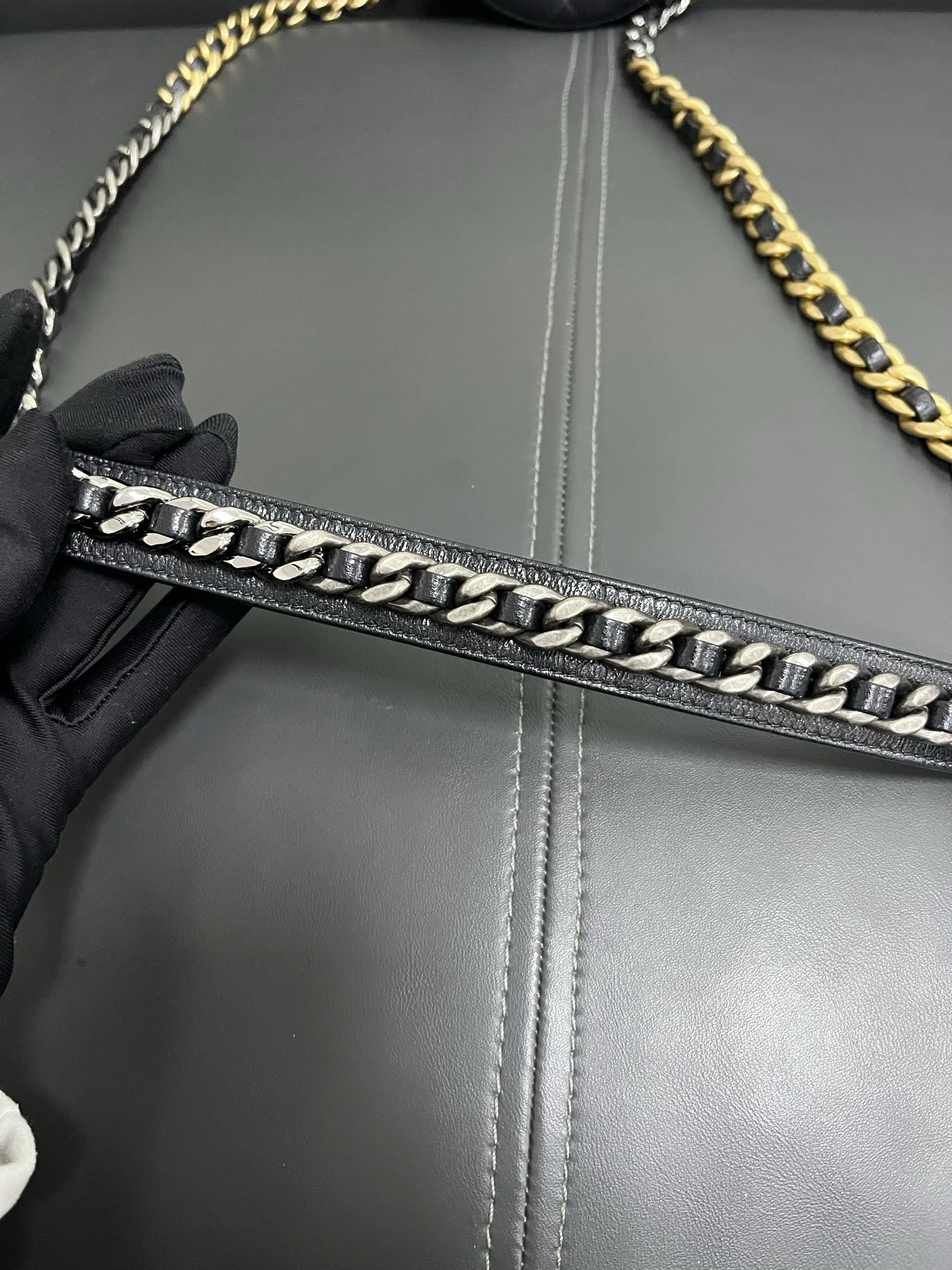 A Chic Chanel19 Round with Chain Bag Black Lambskin. Classic Colour ! Nearly New ! offered at an exceptional UK price of £1400.