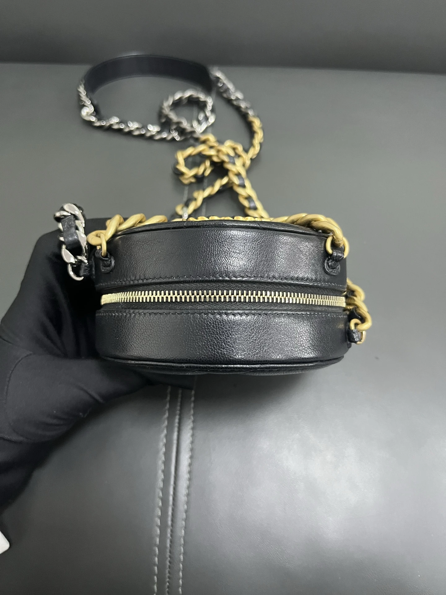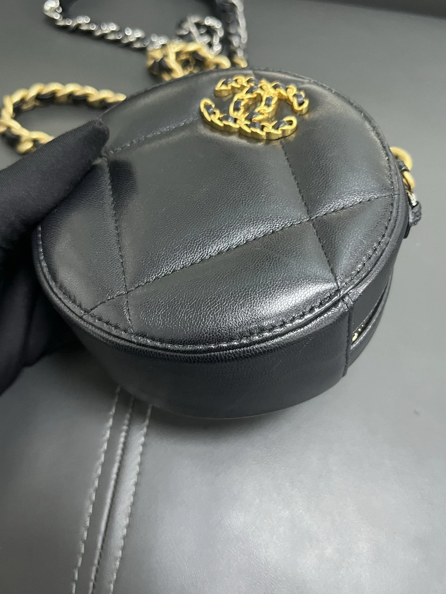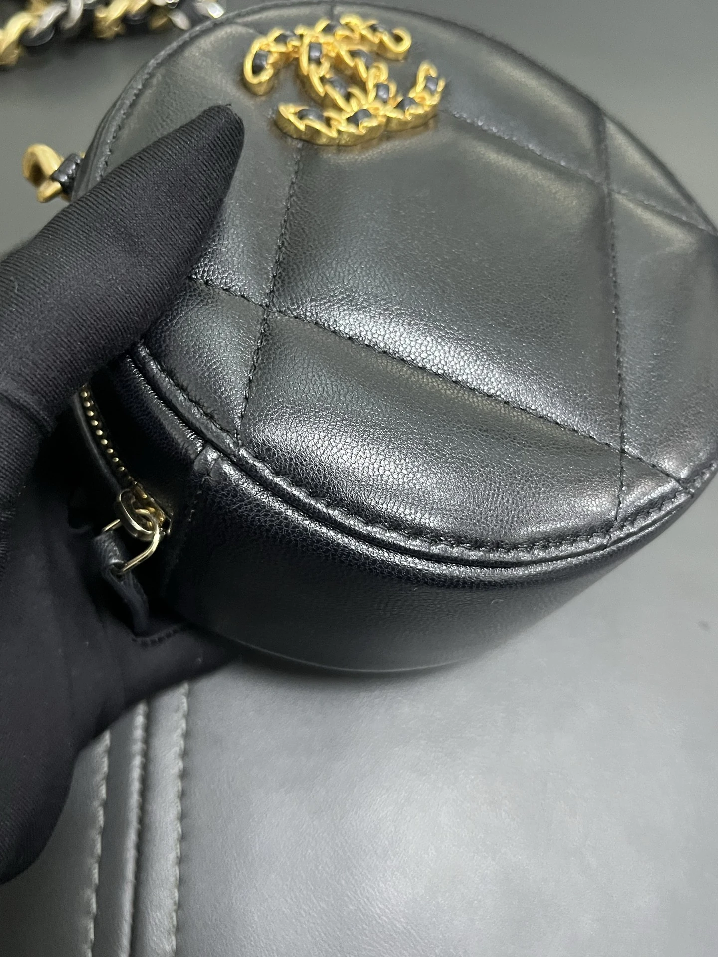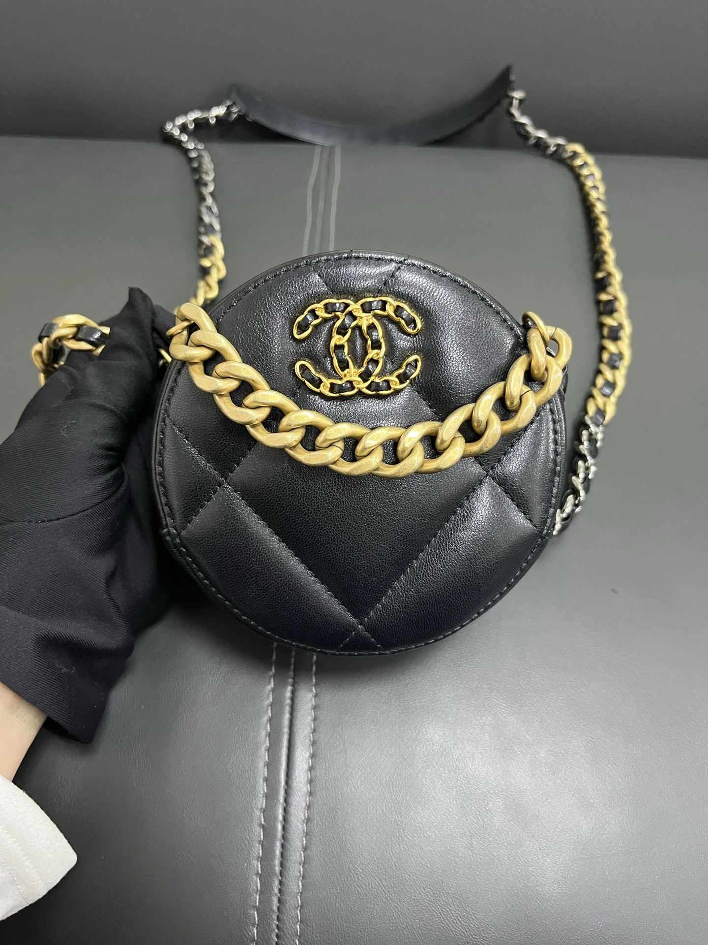CHANEL 19 Round Bag Black Lambskin Gold Hardware