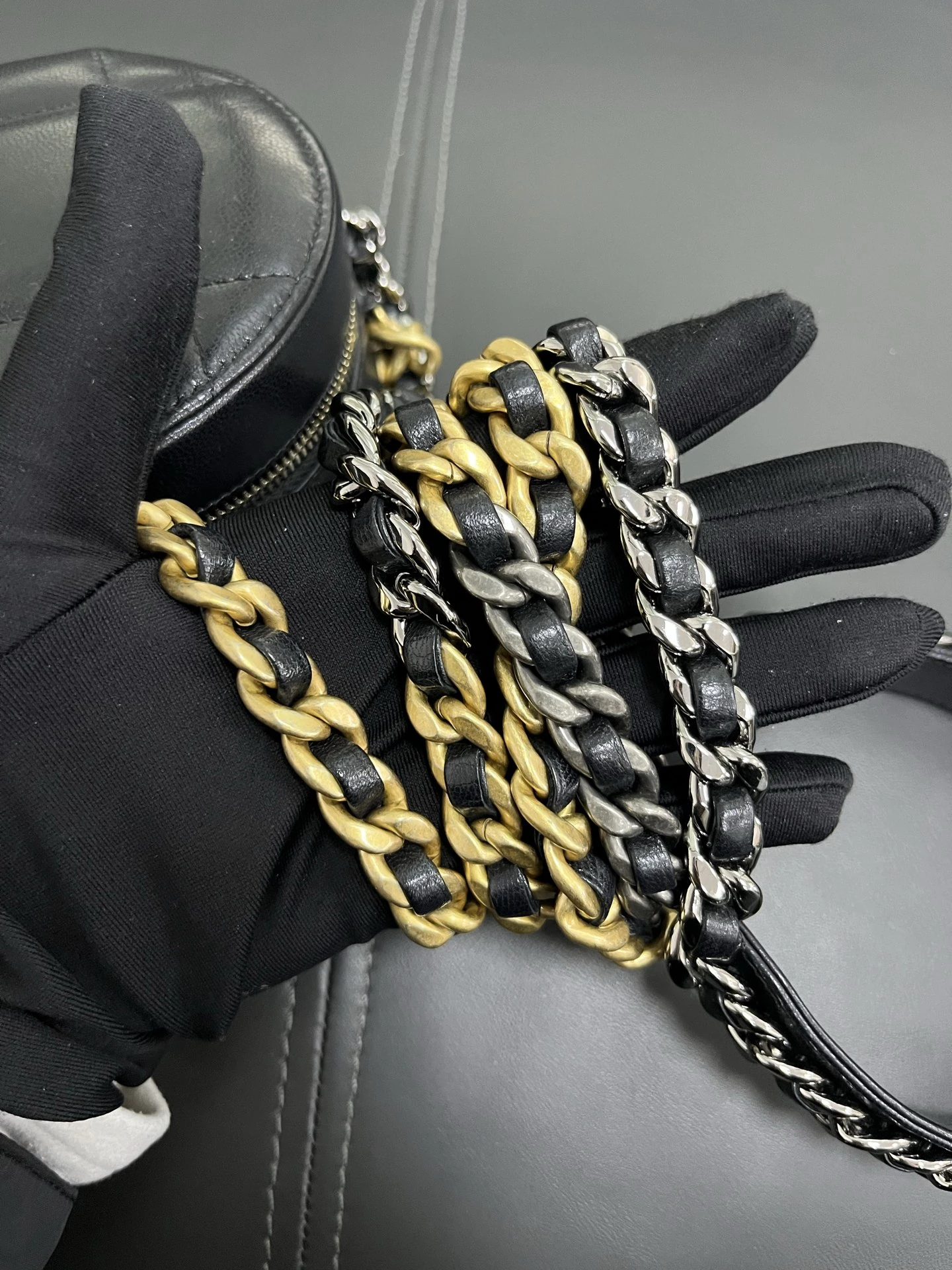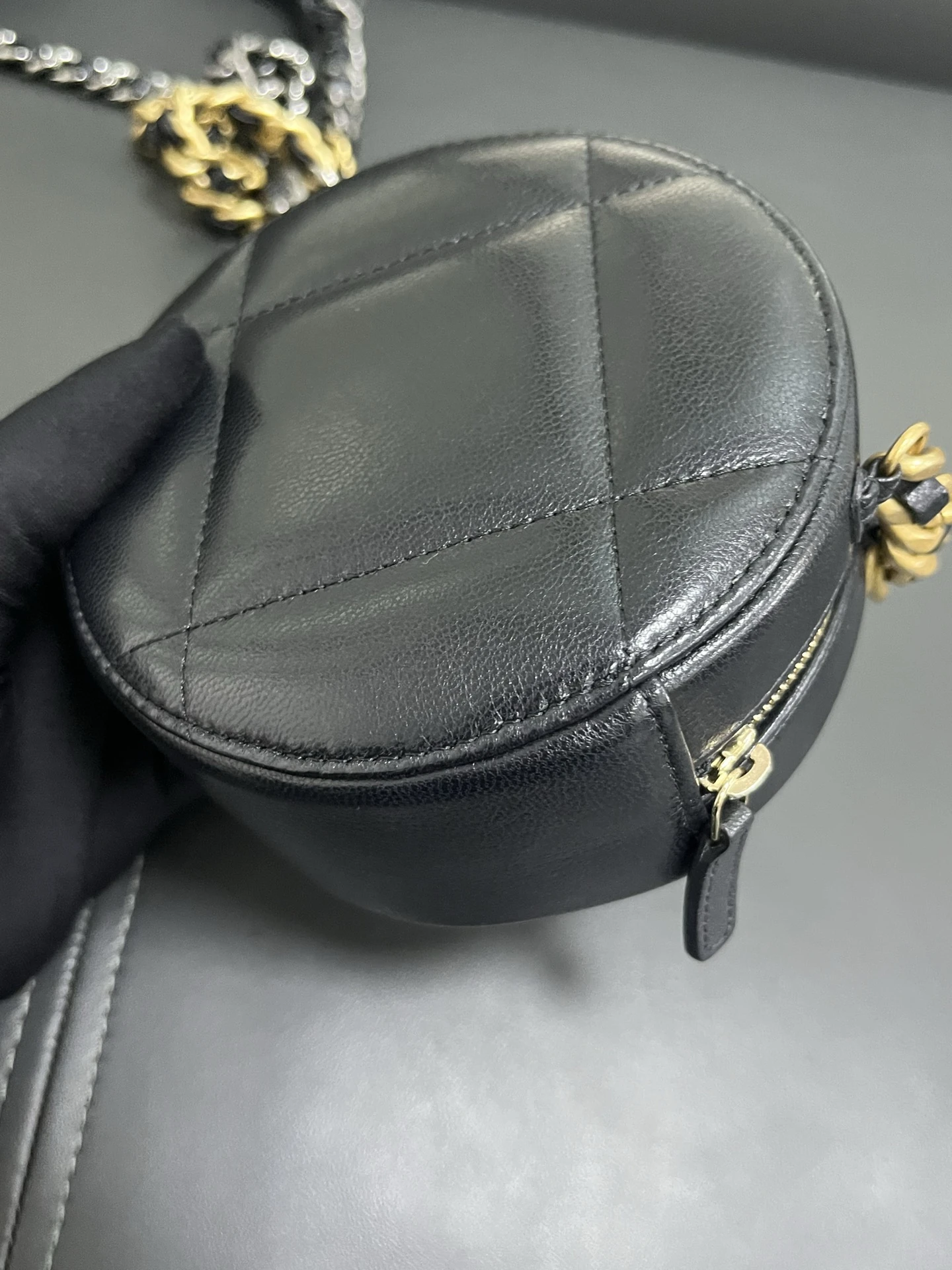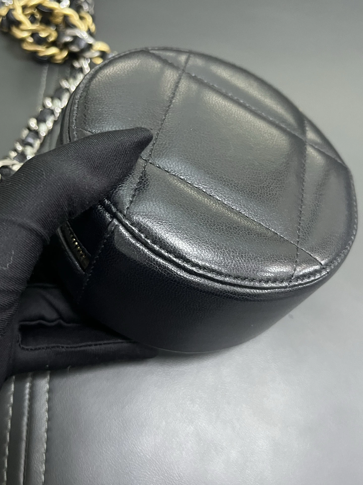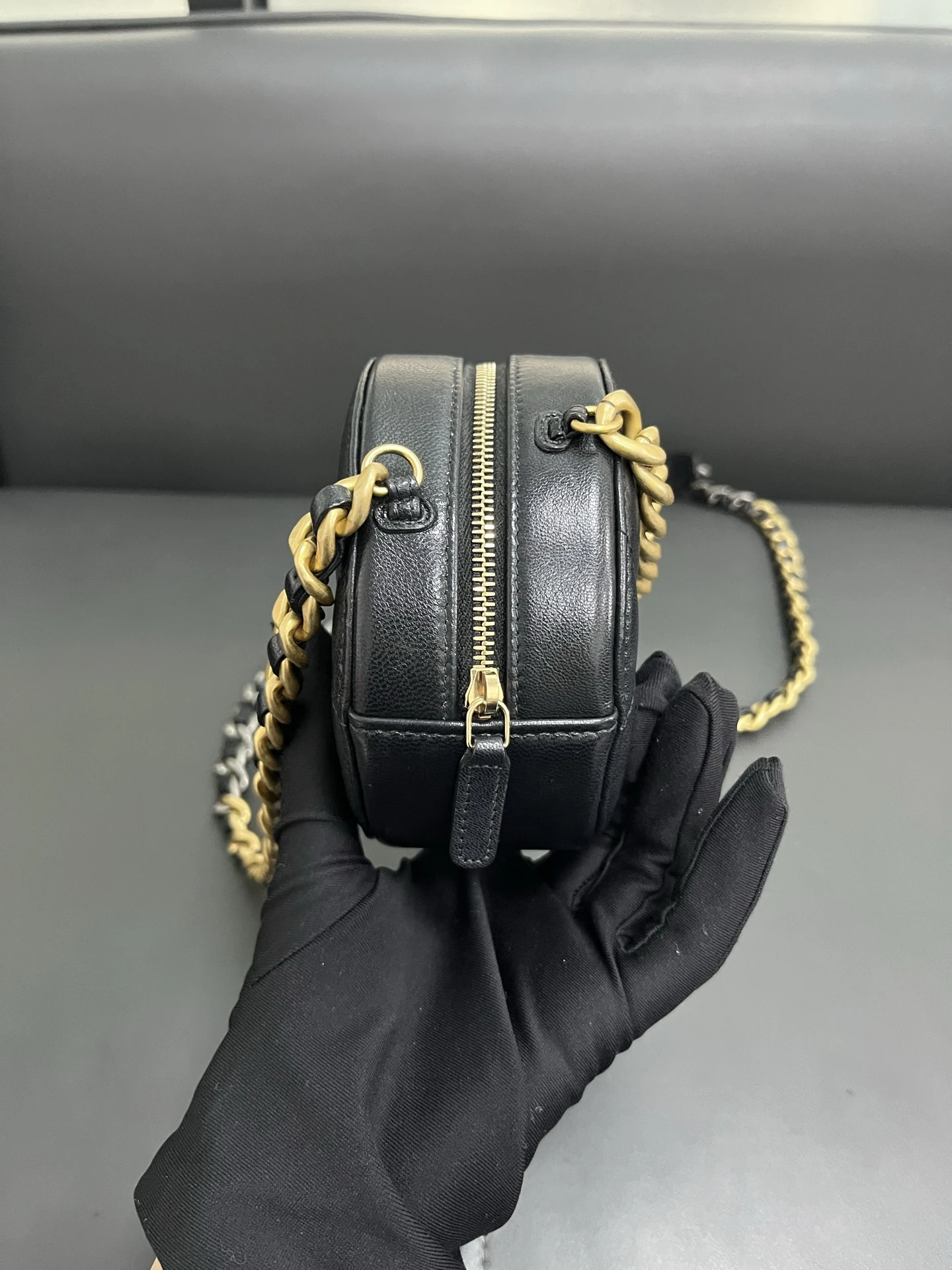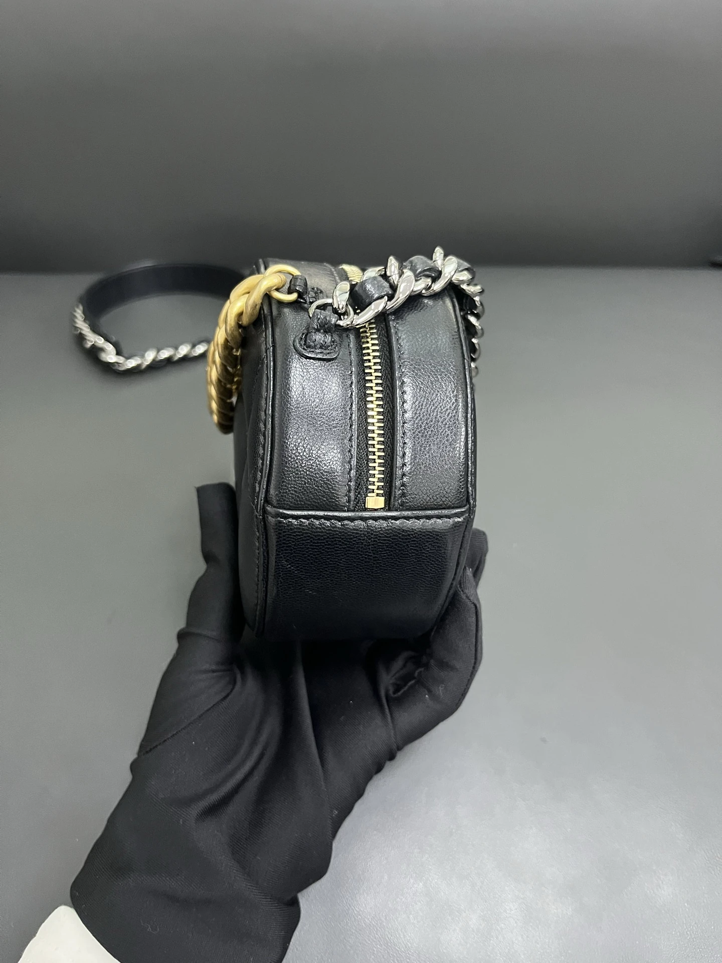 CHANEL 19 Round Bag Black Lambskin Gold Hardware
