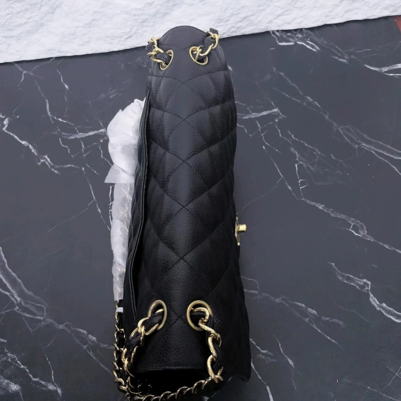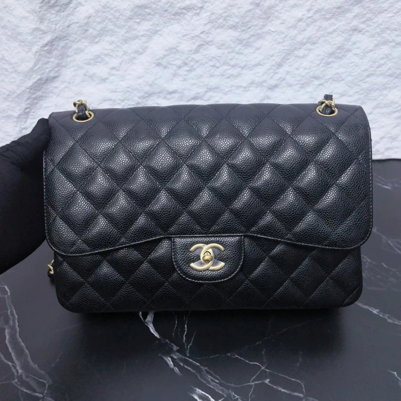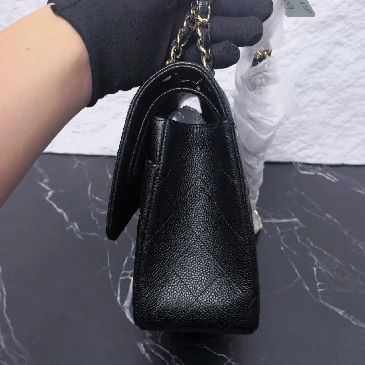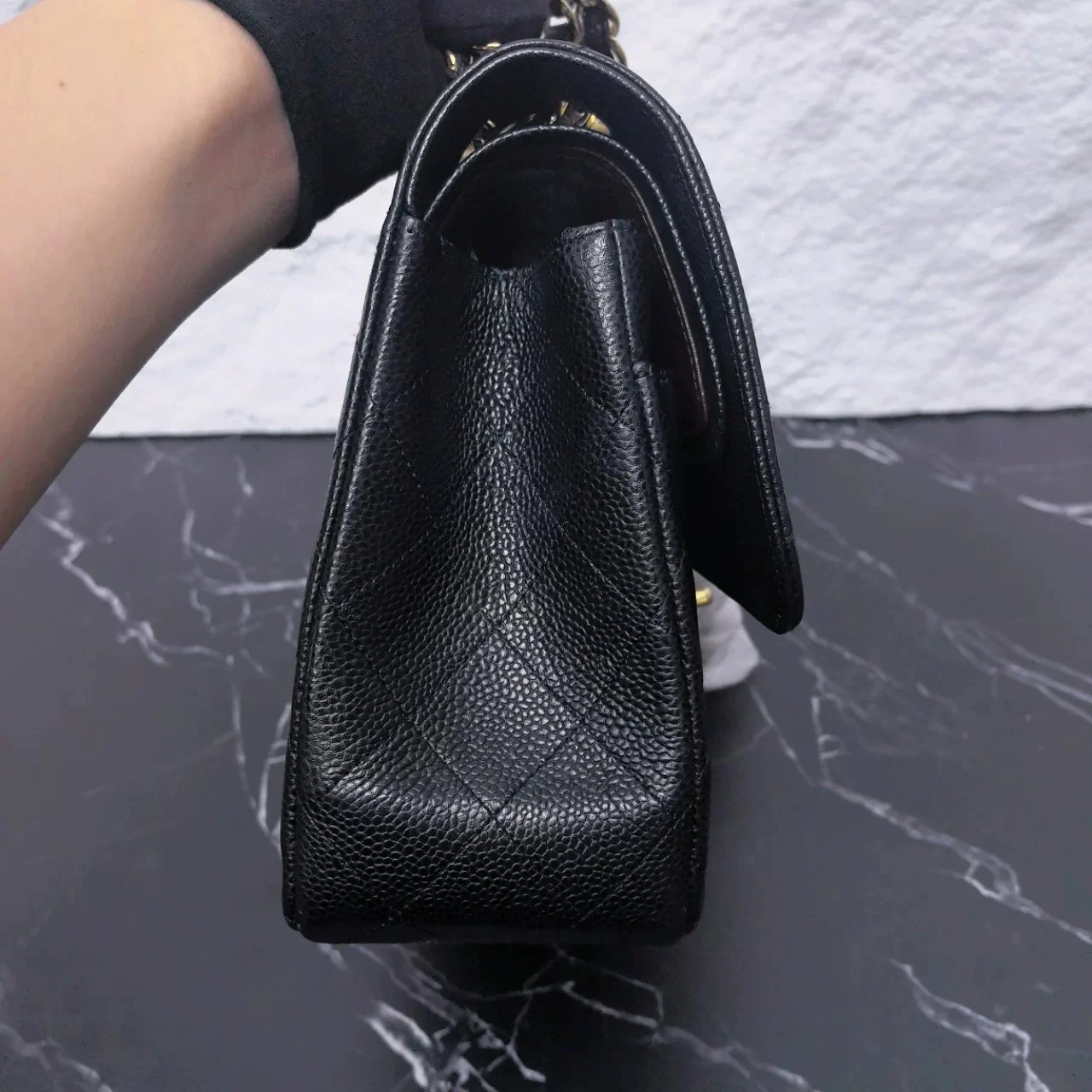• Material: Black Caviar Leather with Gold-Tone Metal