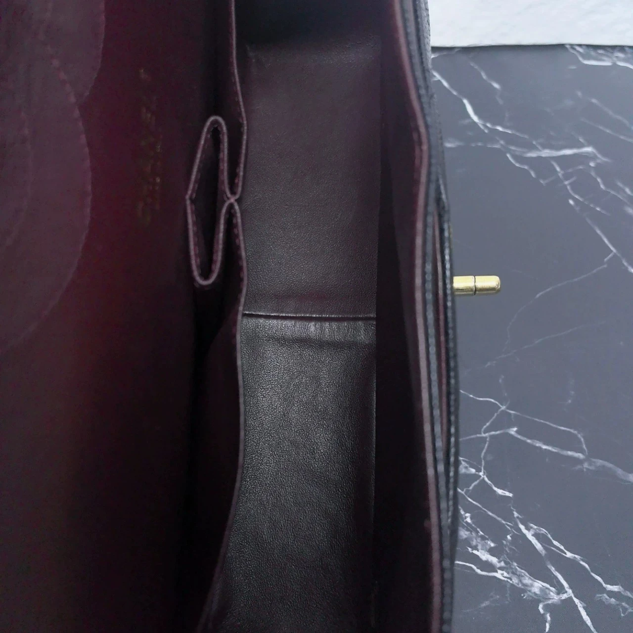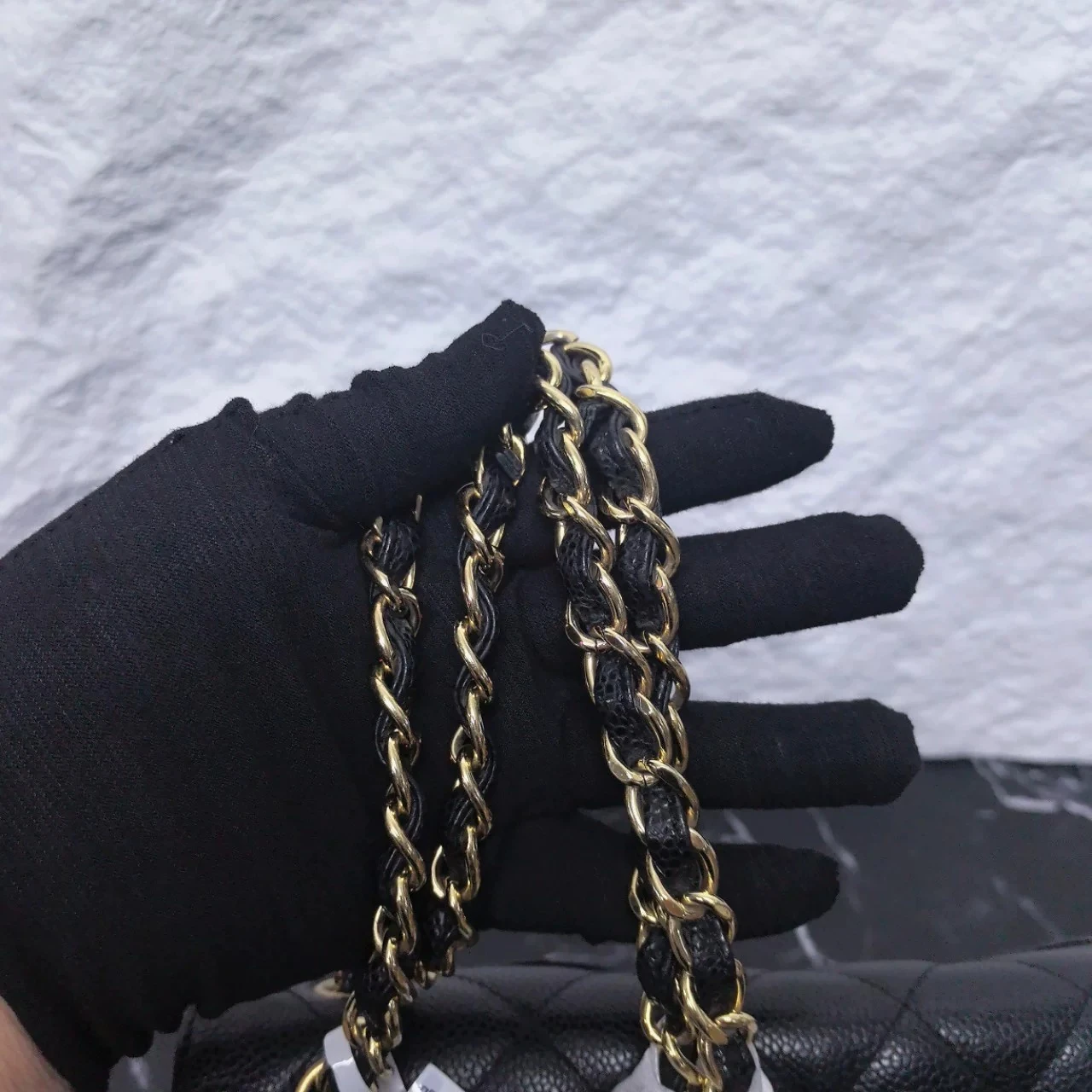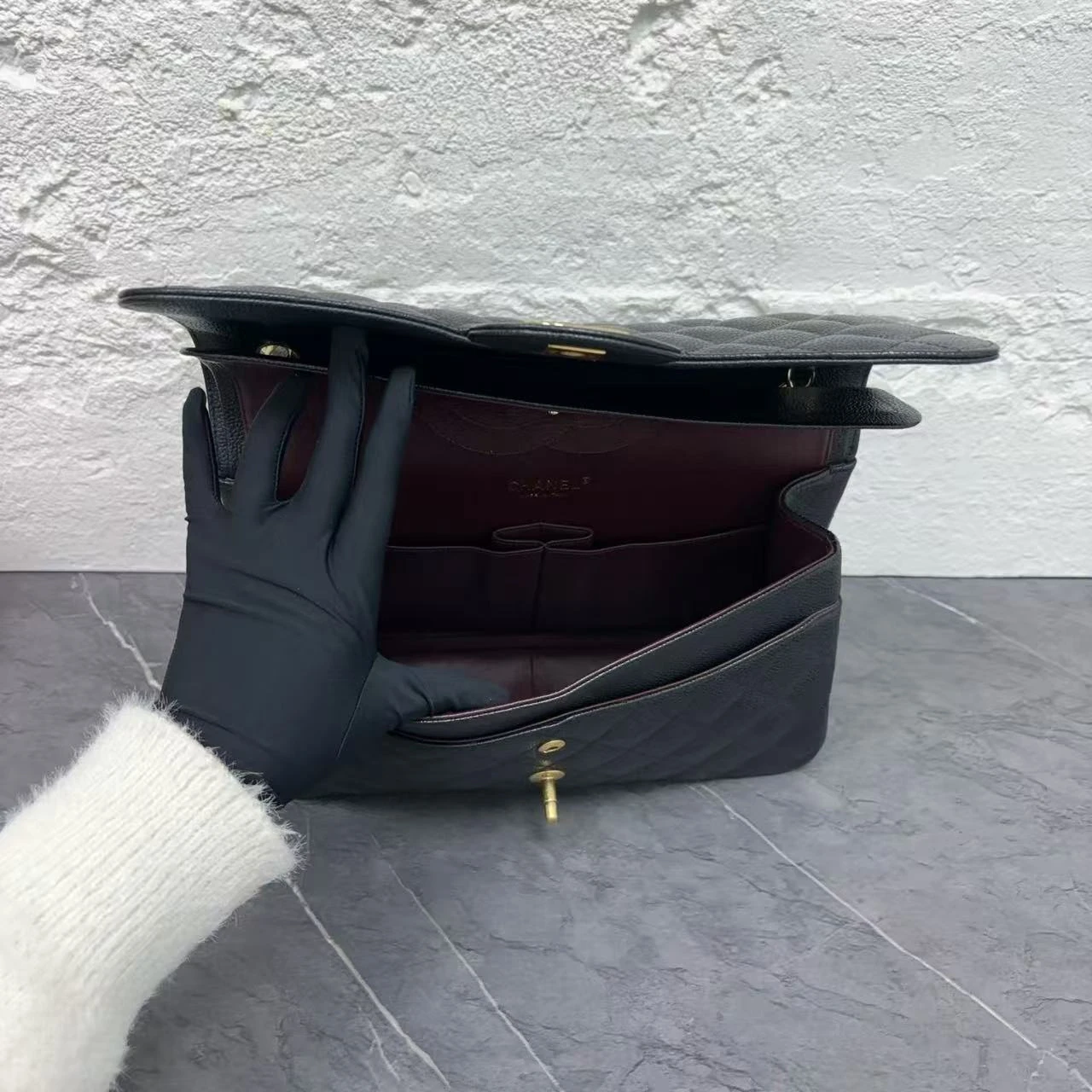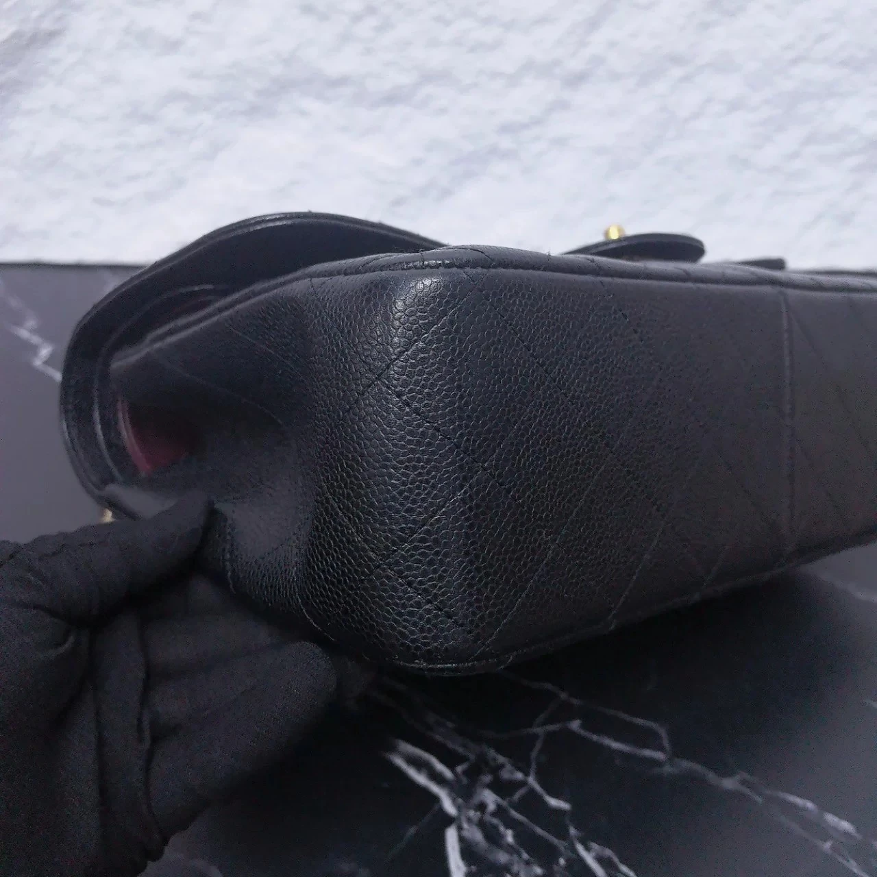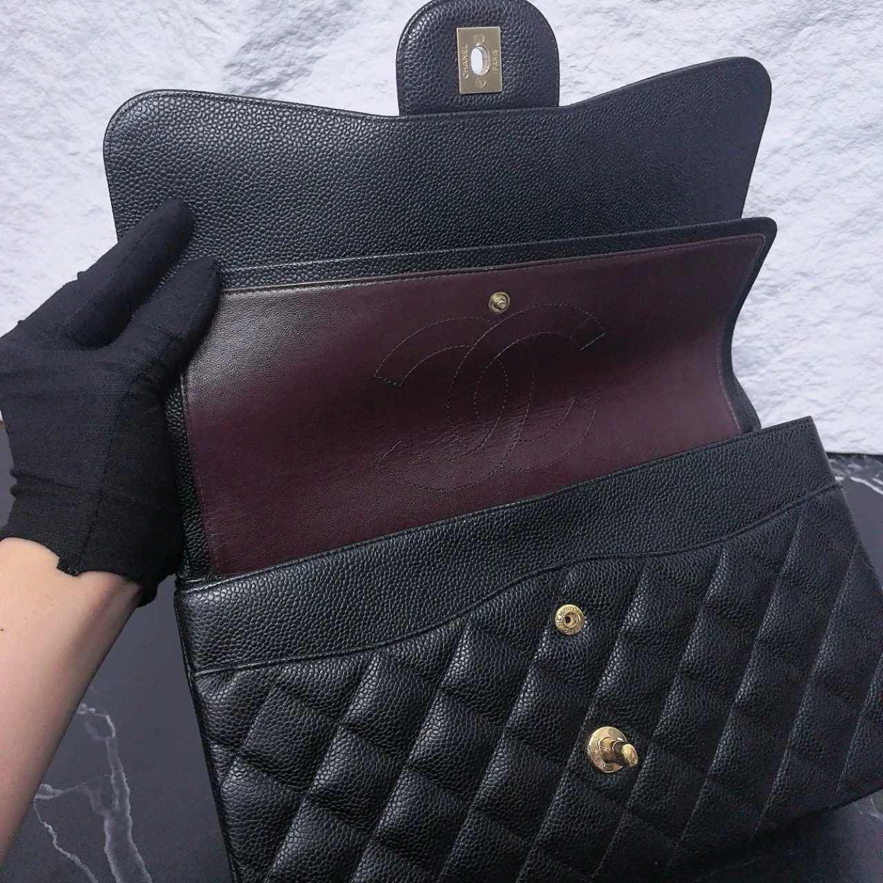 • Material: Black Caviar Leather with Gold-Tone Metal