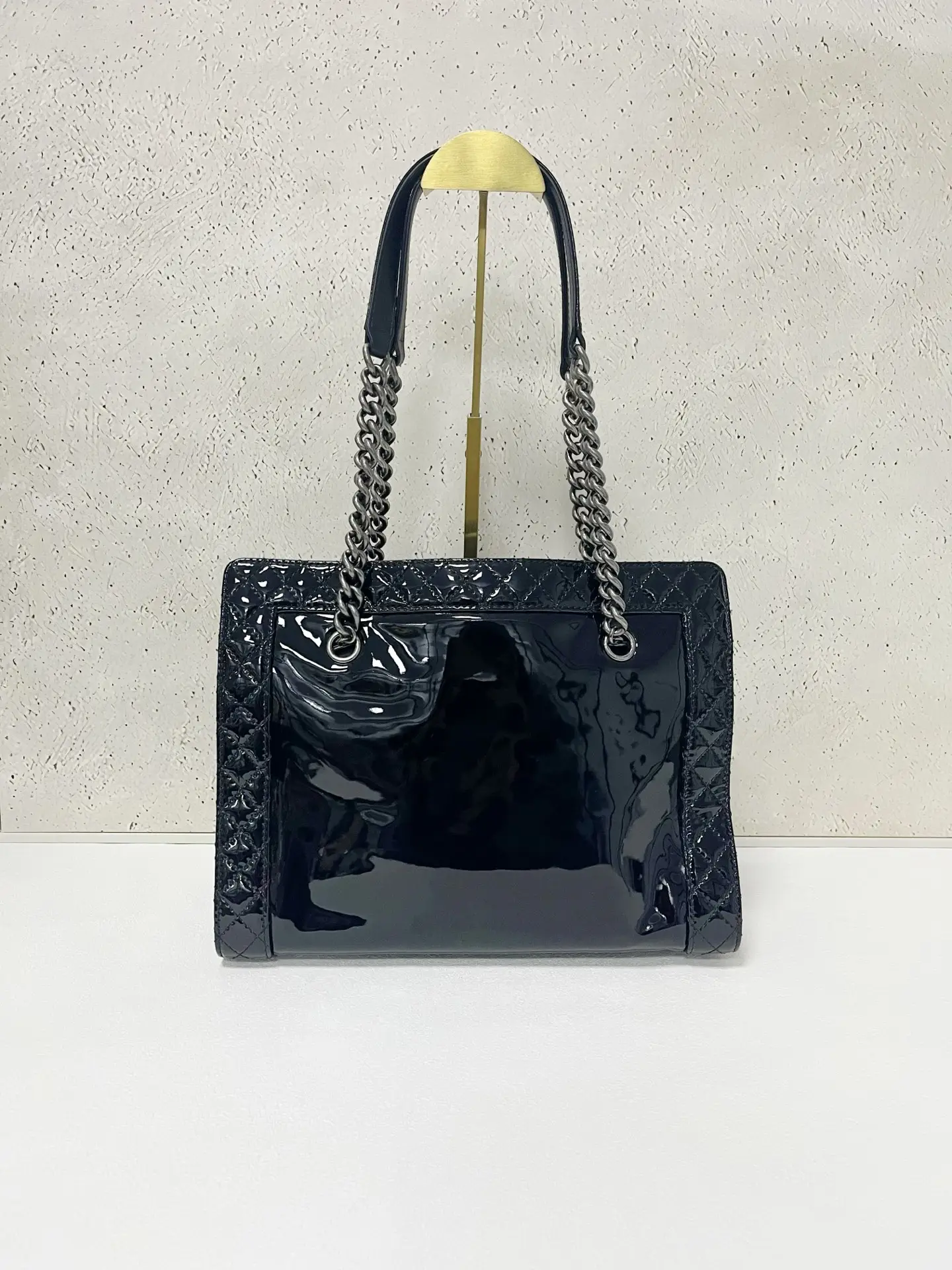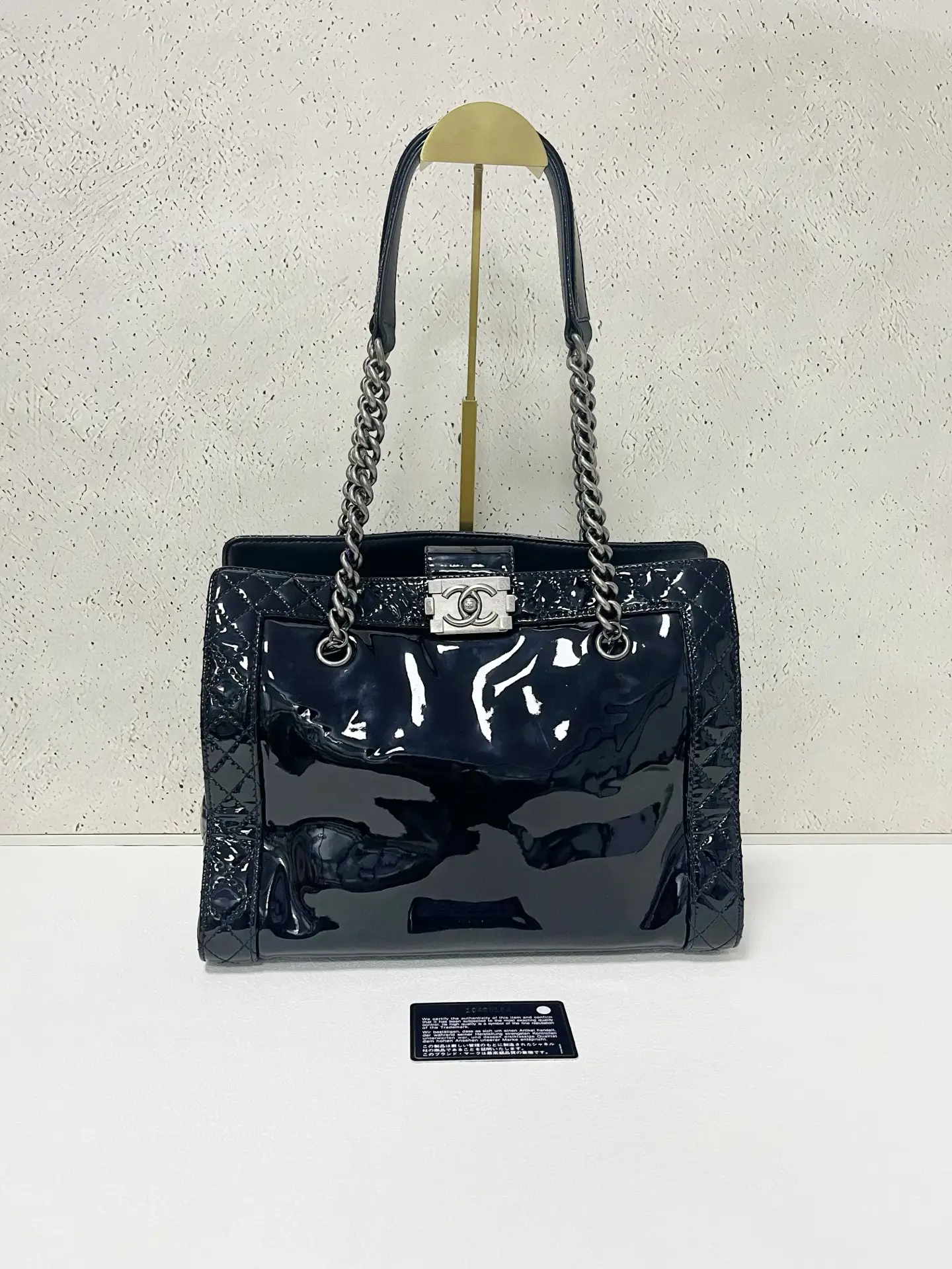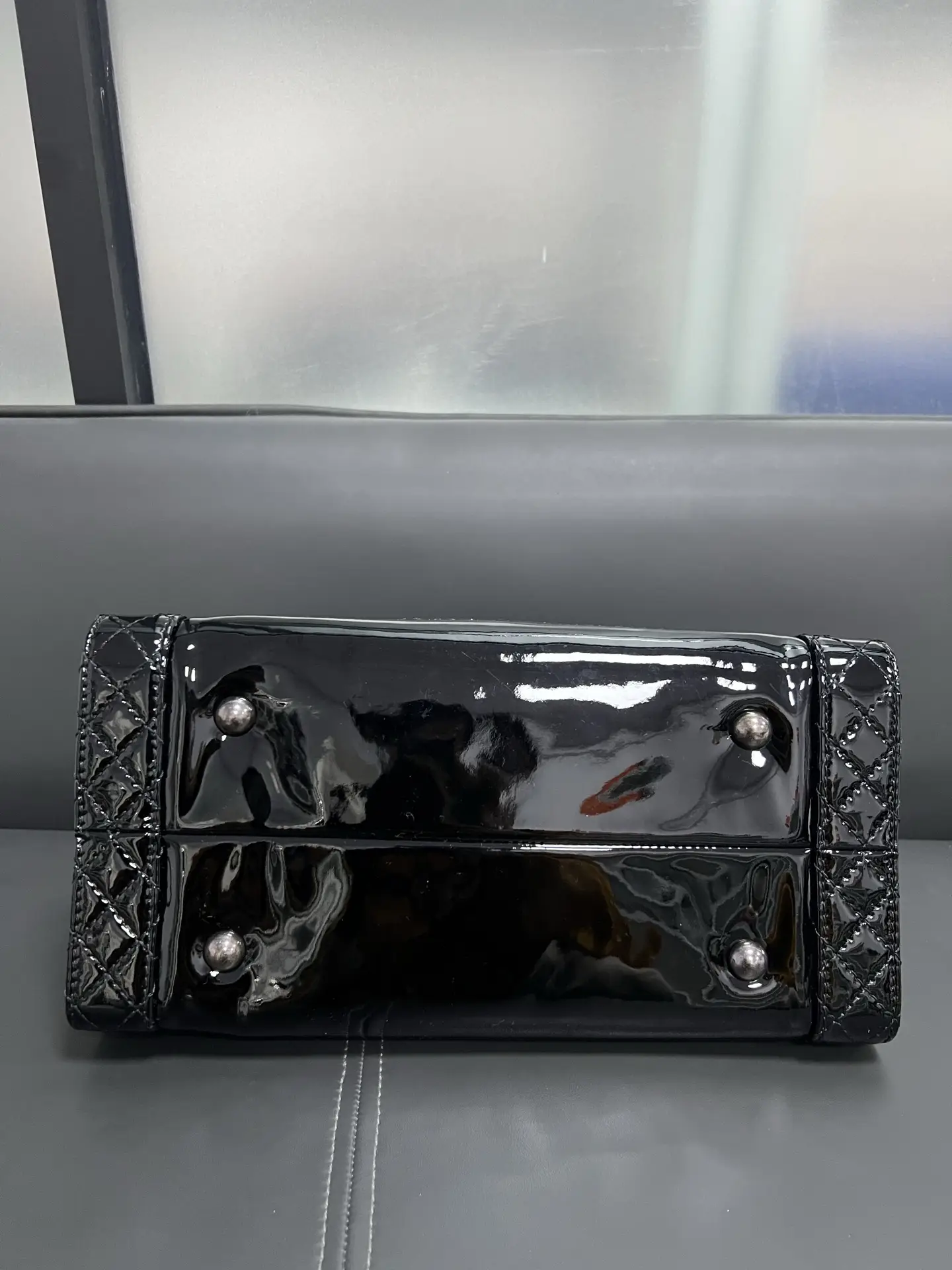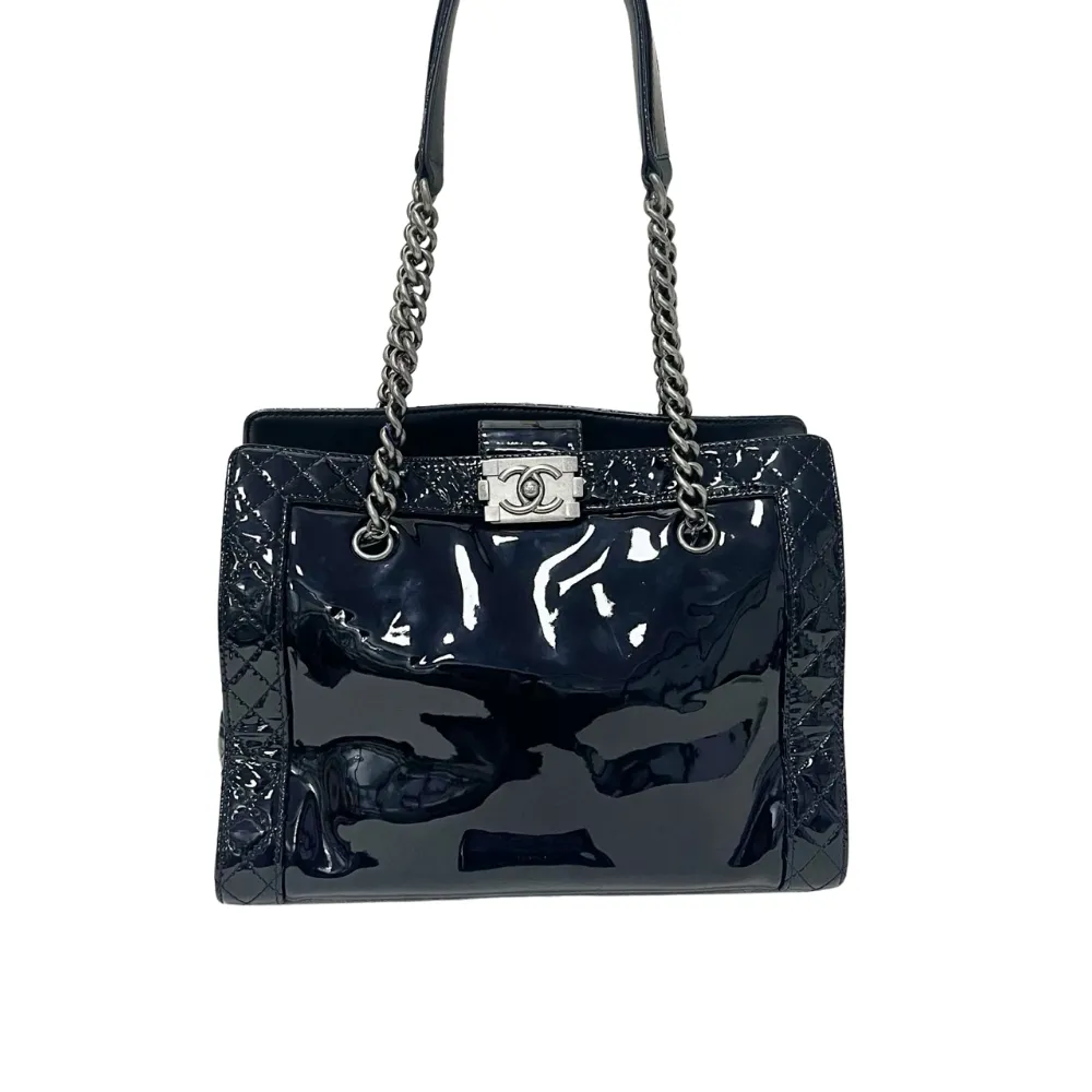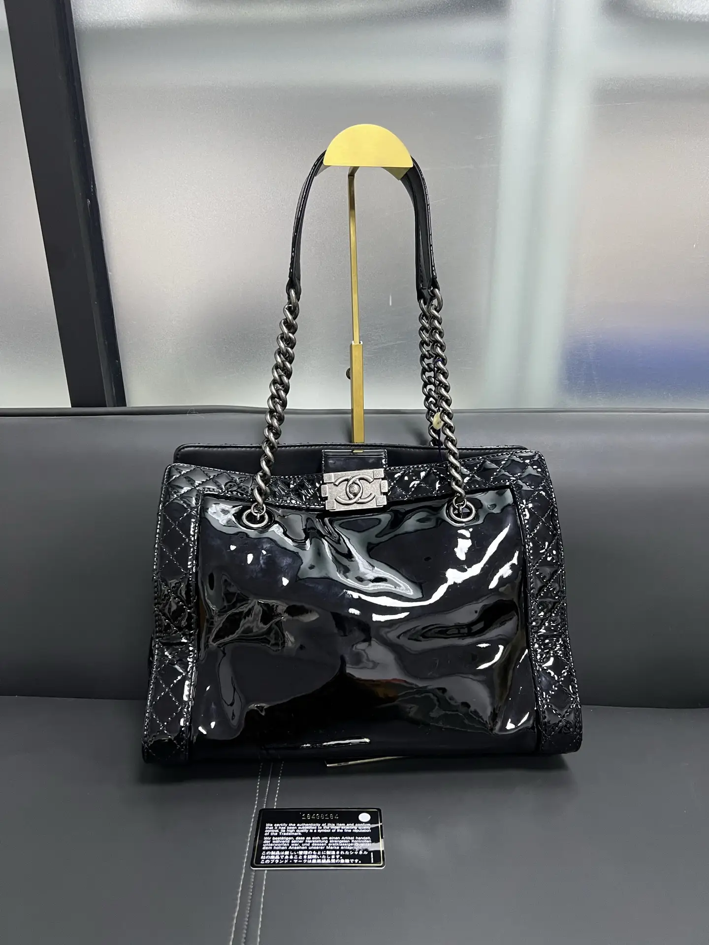 • Material: Grained Shiny Calfskin & Gold-Tone Metal