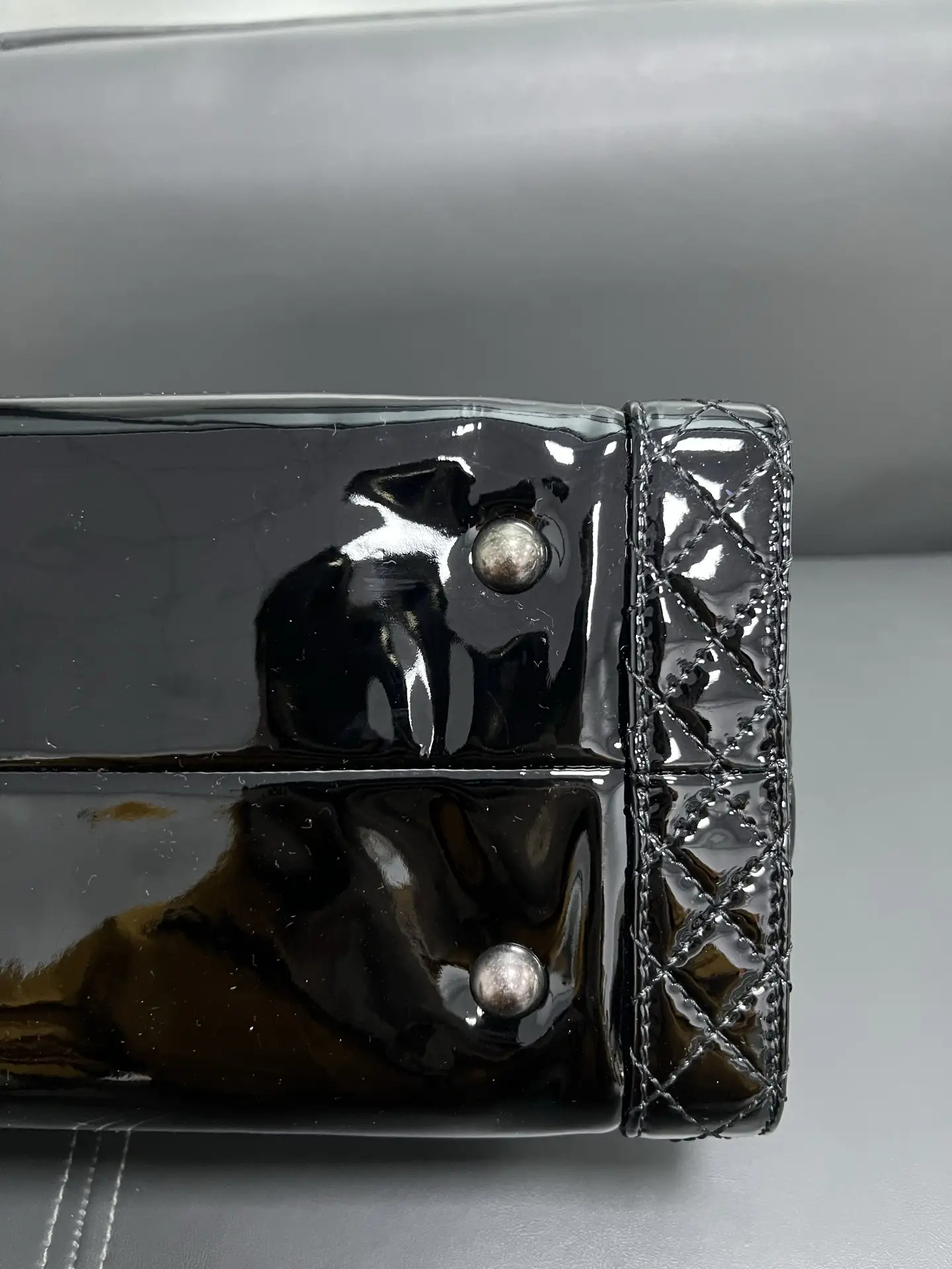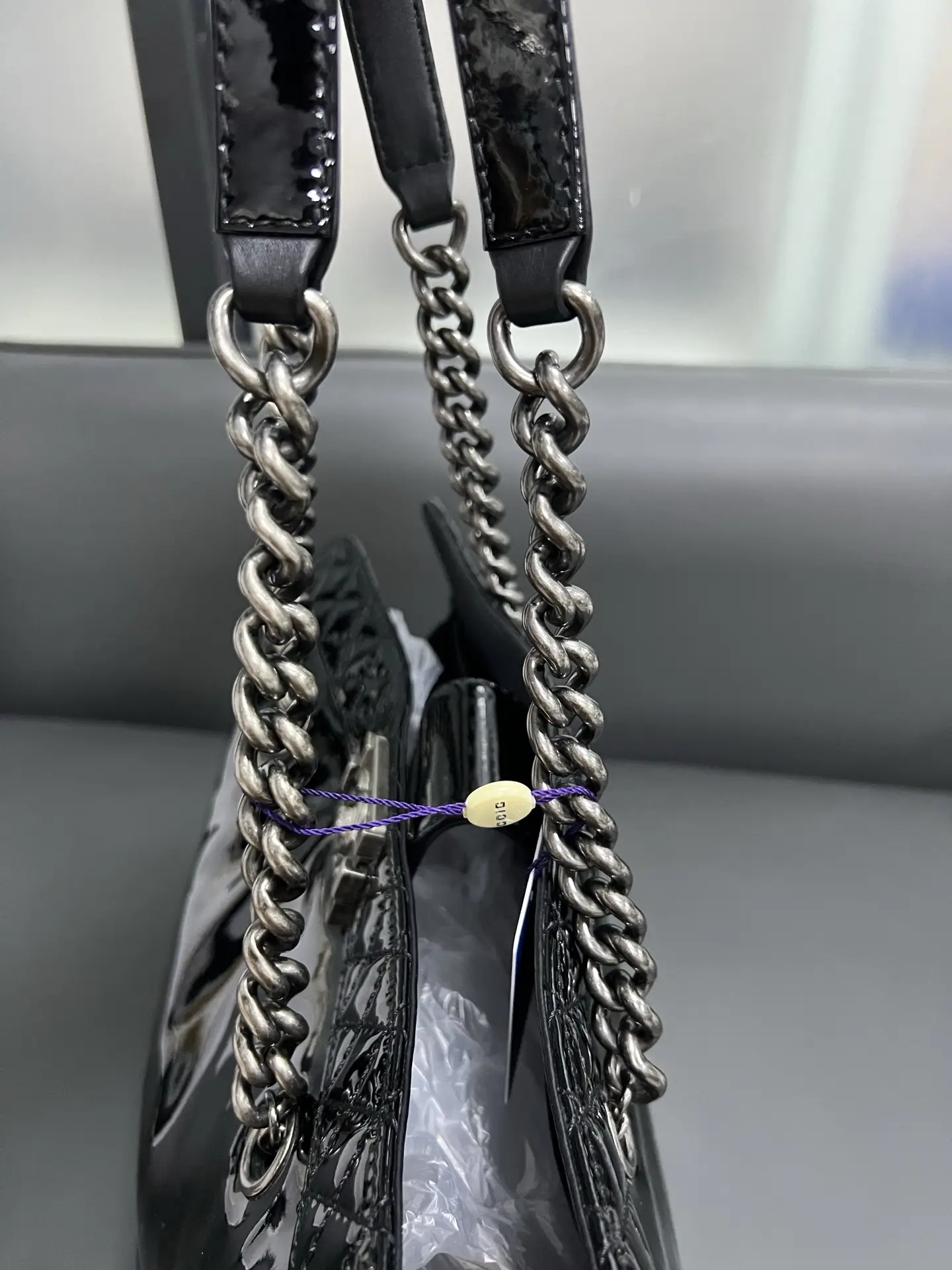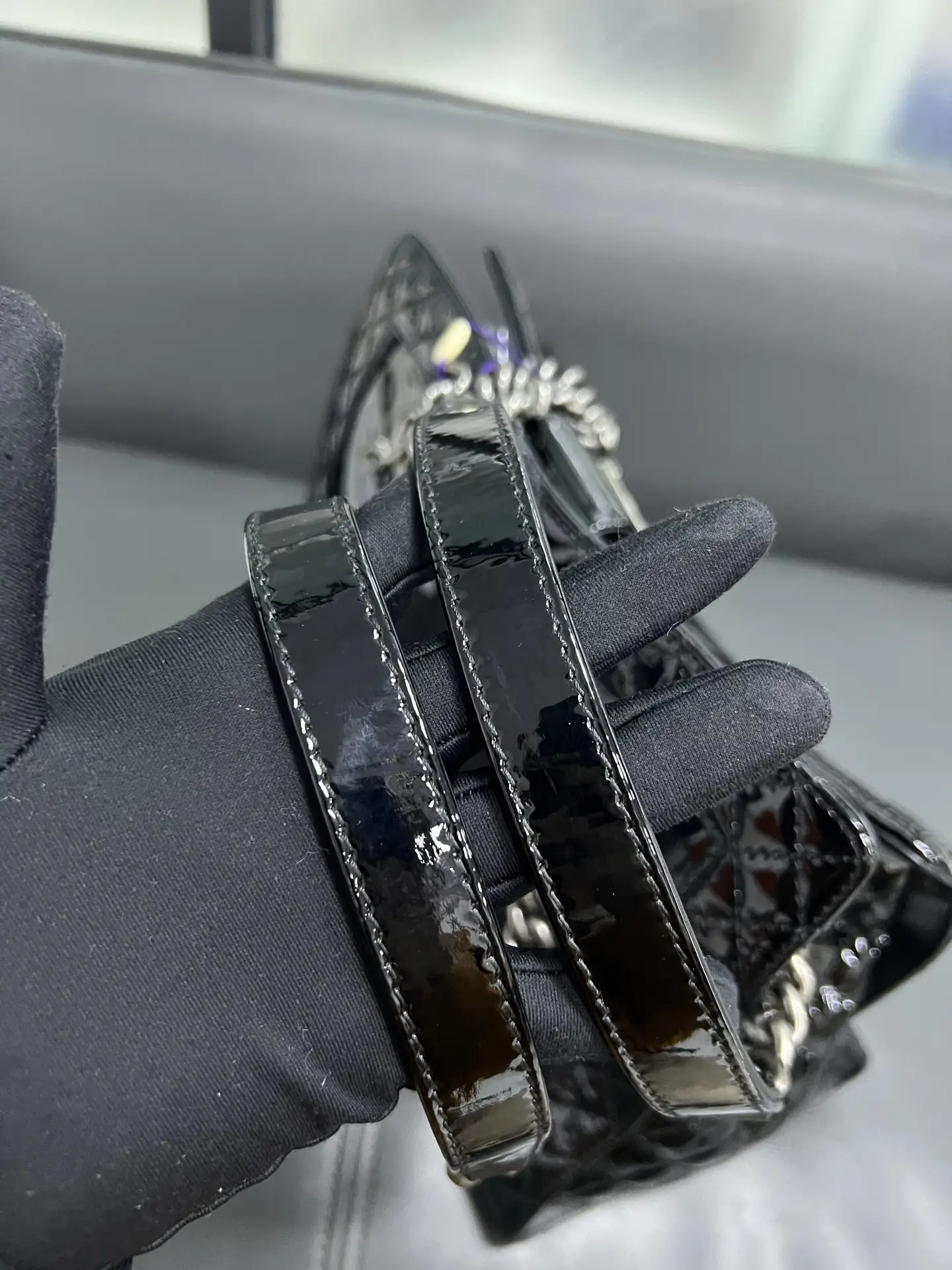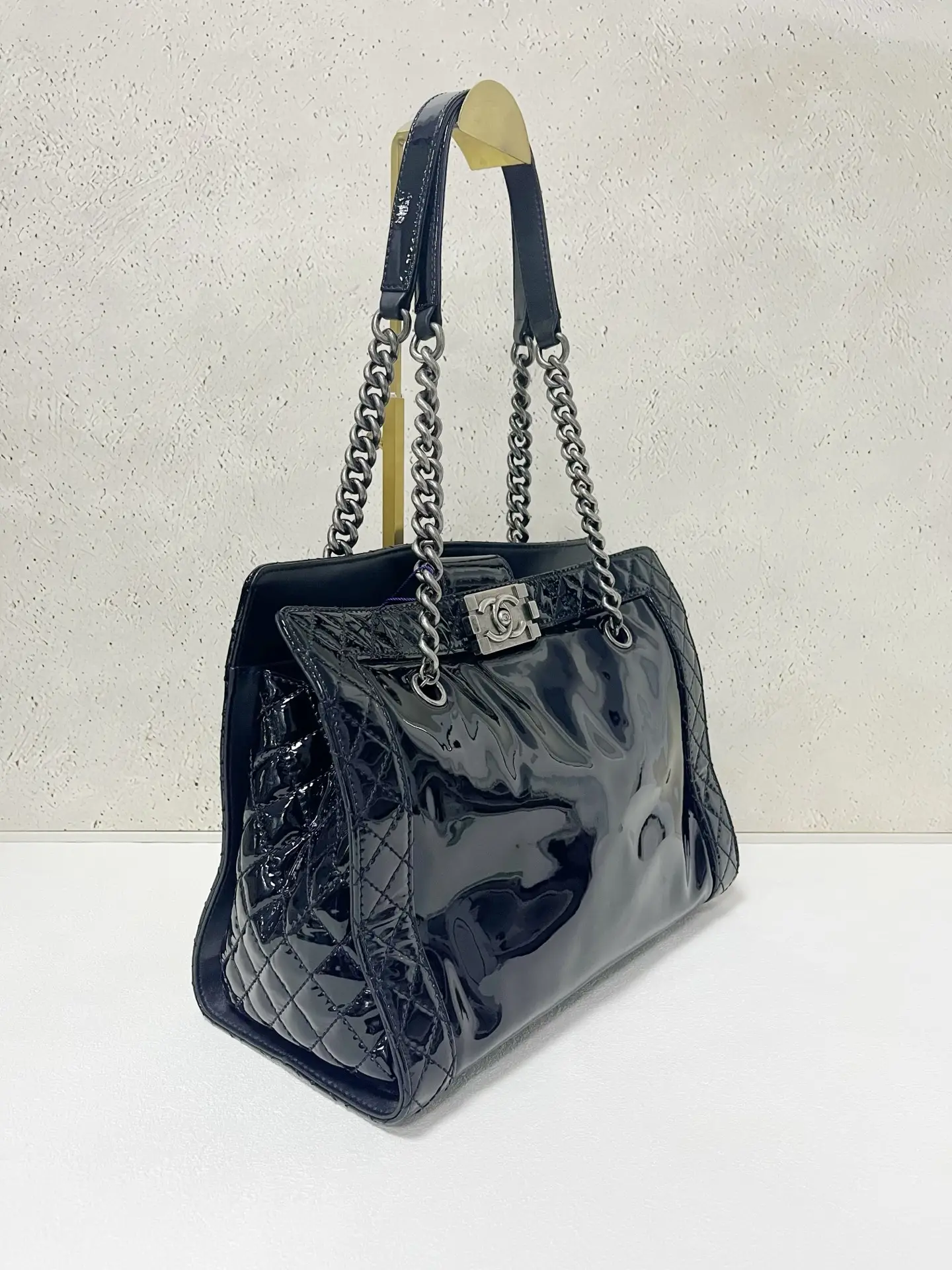 • Material: Grained Shiny Calfskin & Gold-Tone Metal