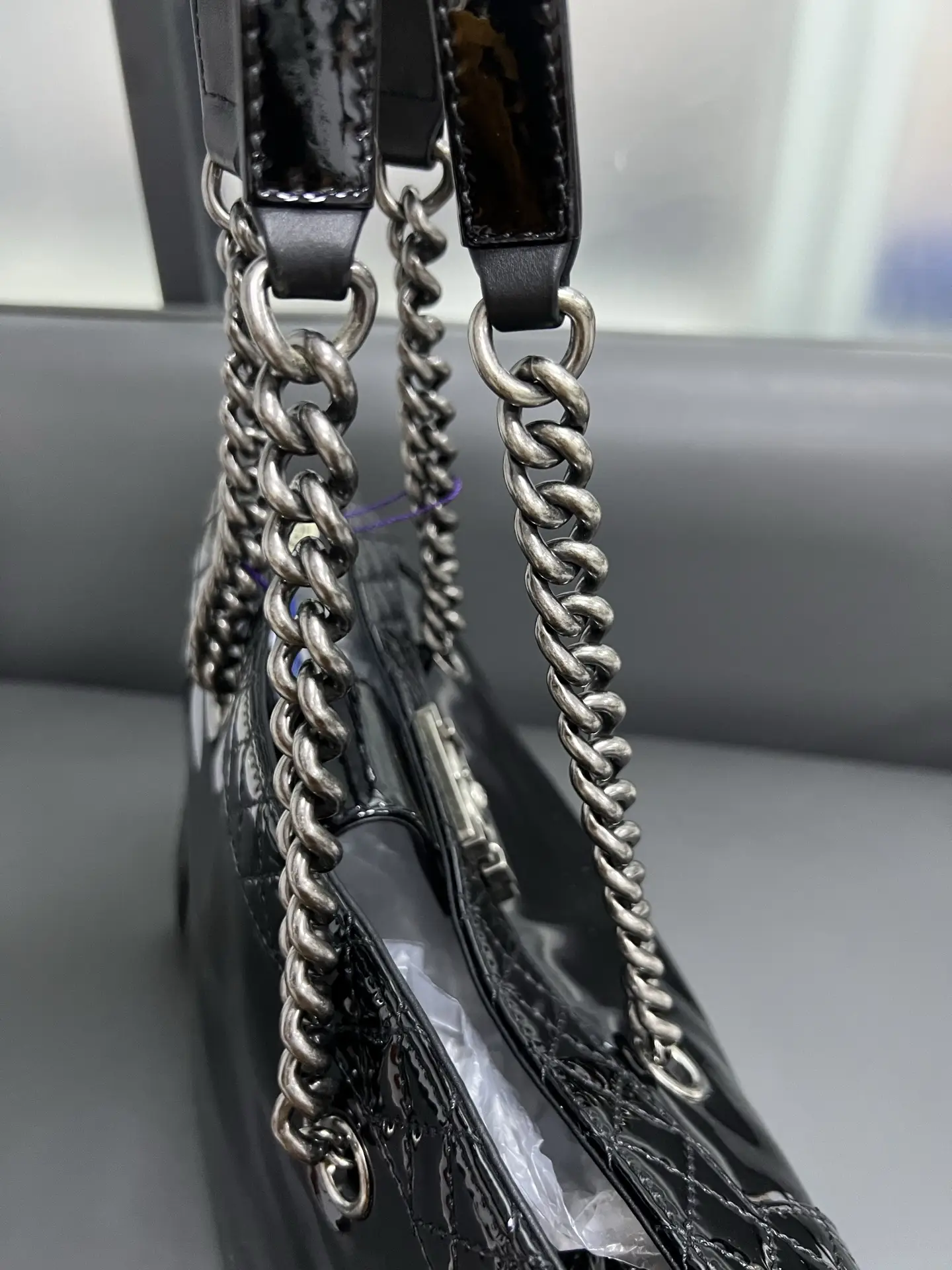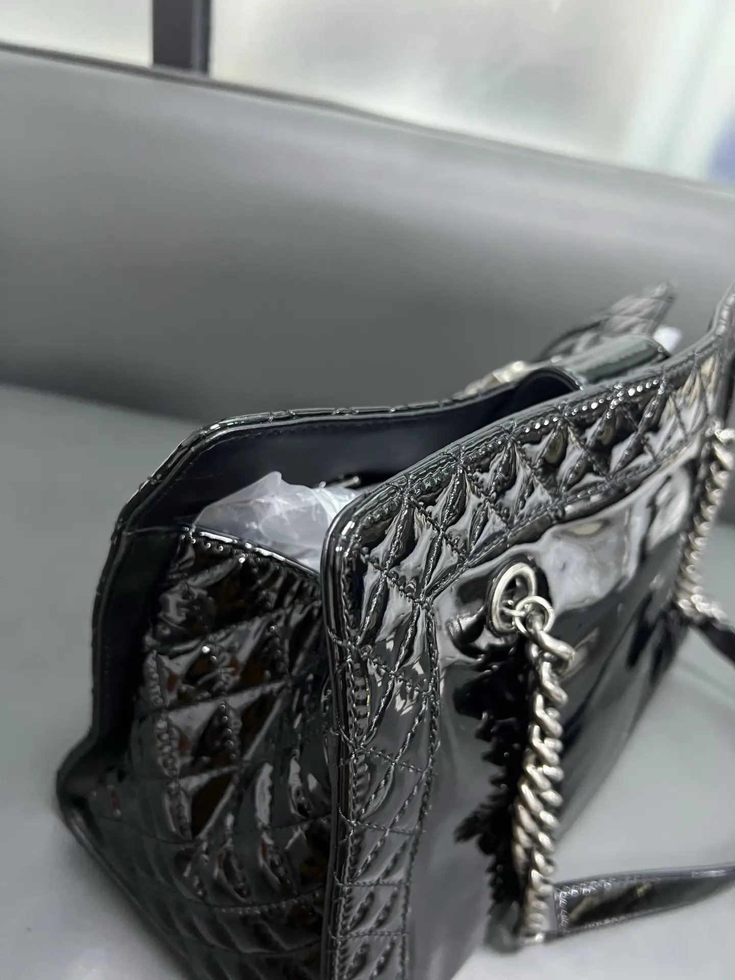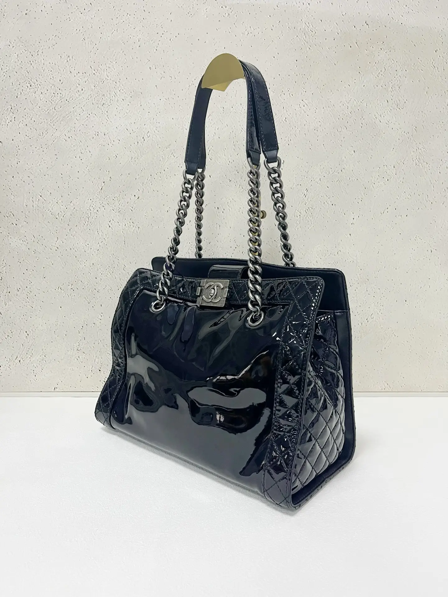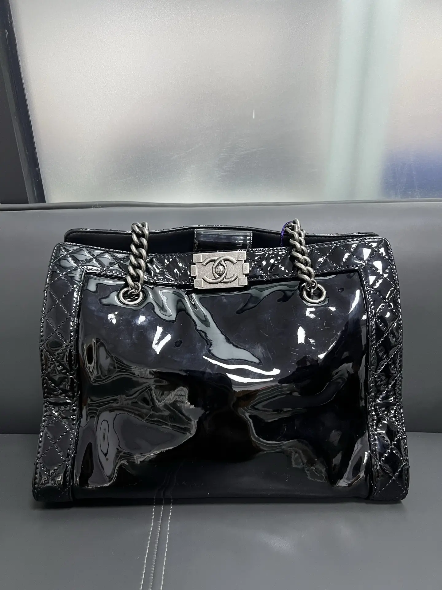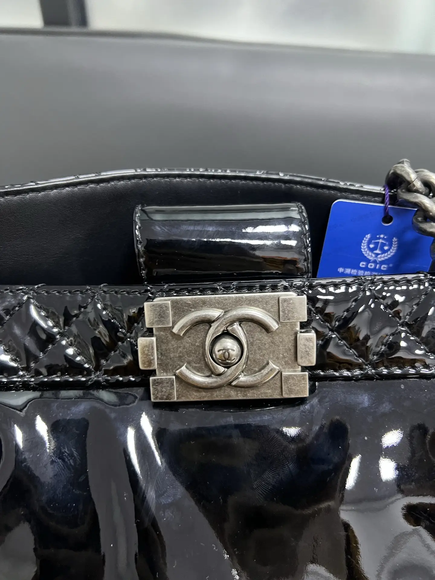 • Material: Grained Shiny Calfskin & Gold-Tone Metal