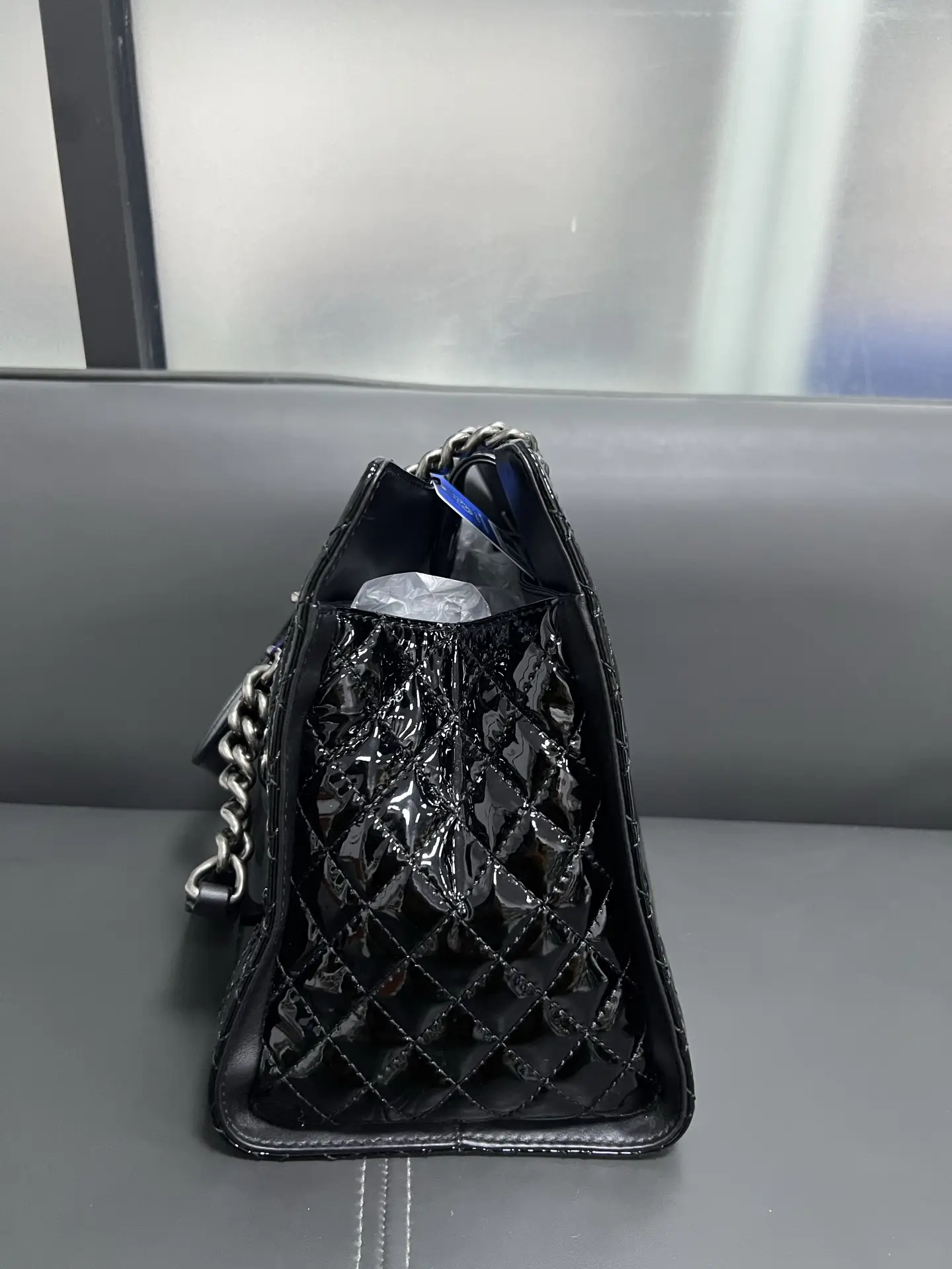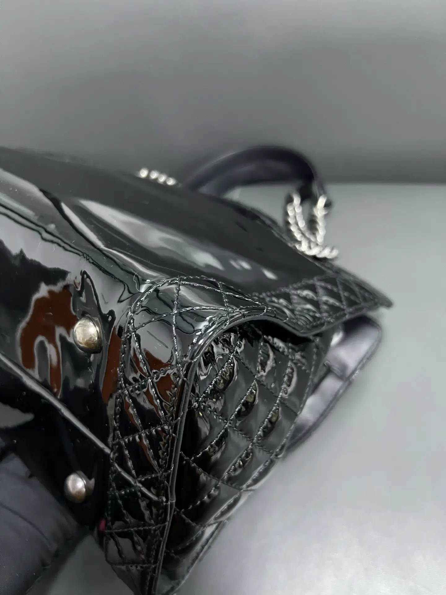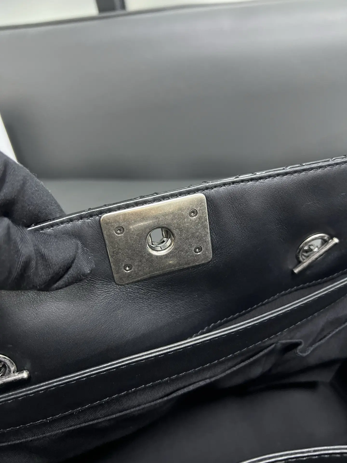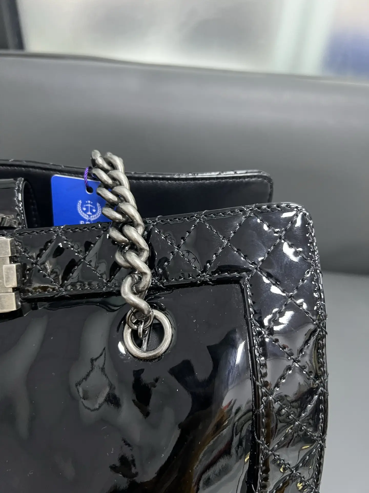 • Material: Grained Shiny Calfskin & Gold-Tone Metal