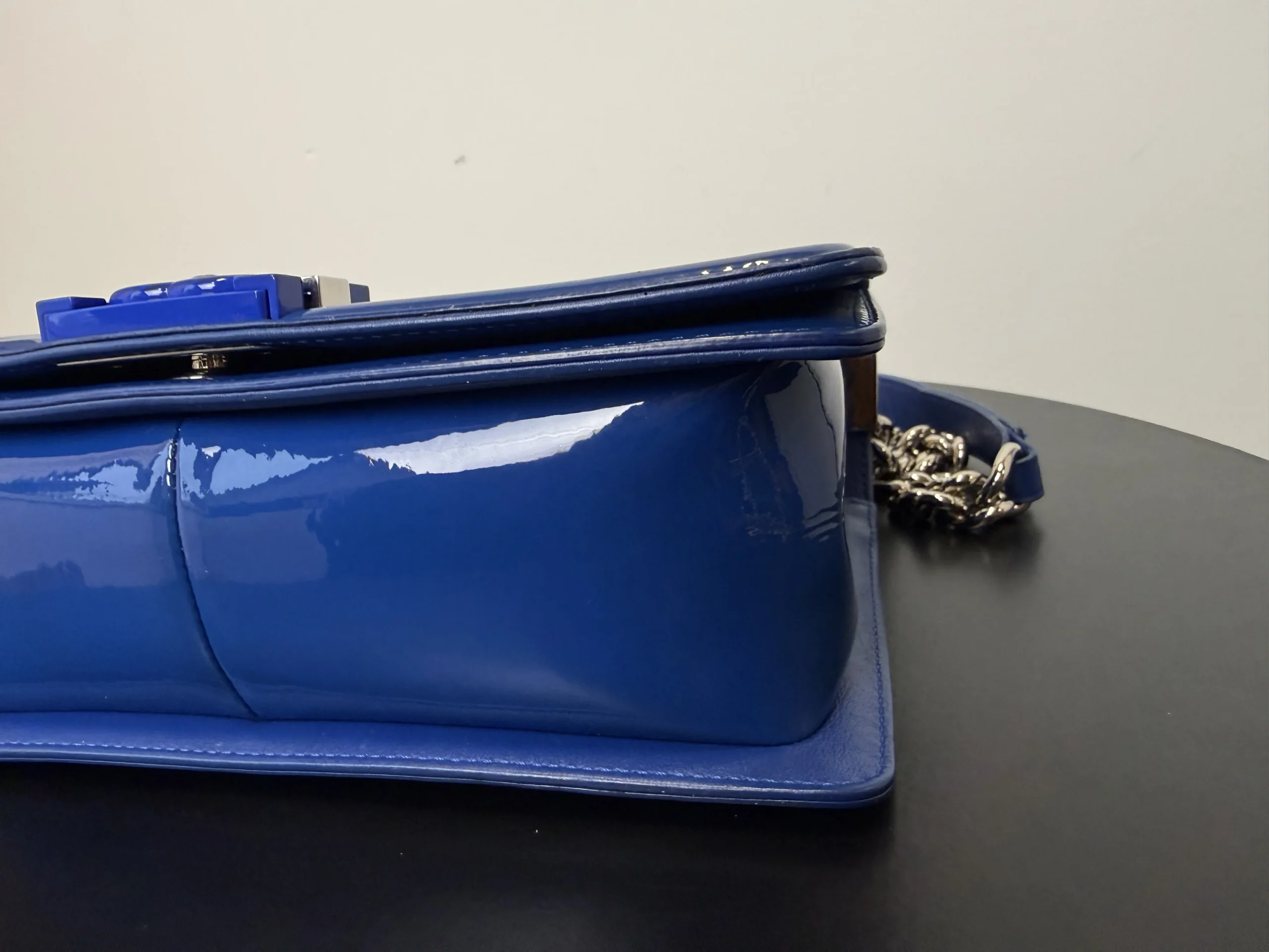• Material: Patent Leather & Gold-tone Hardware