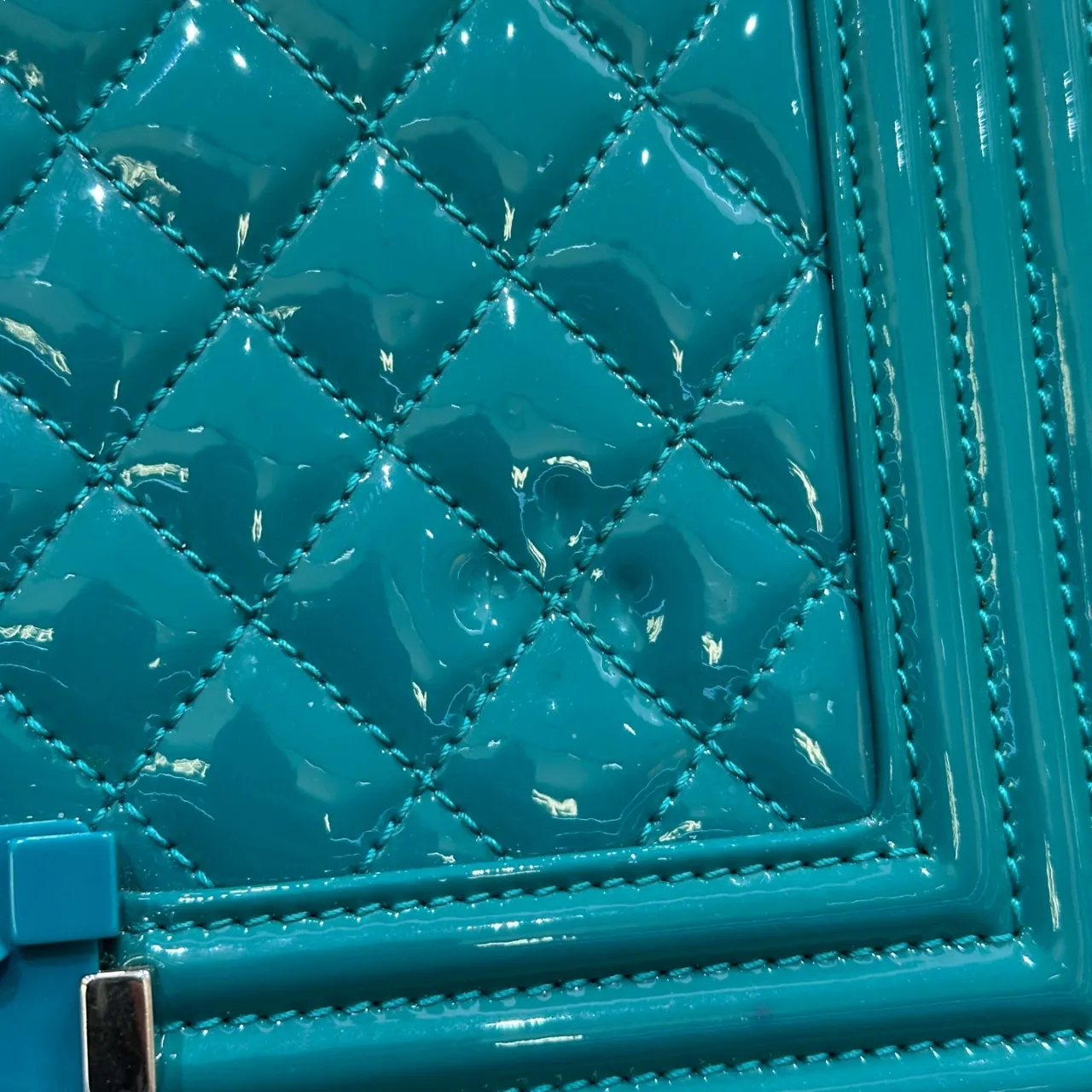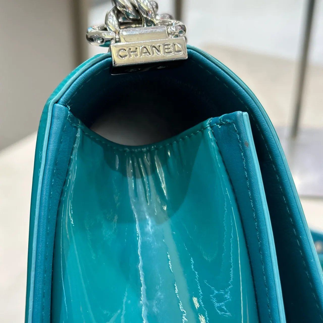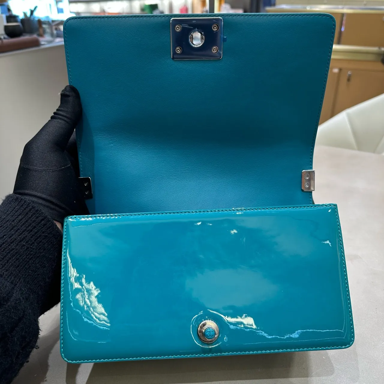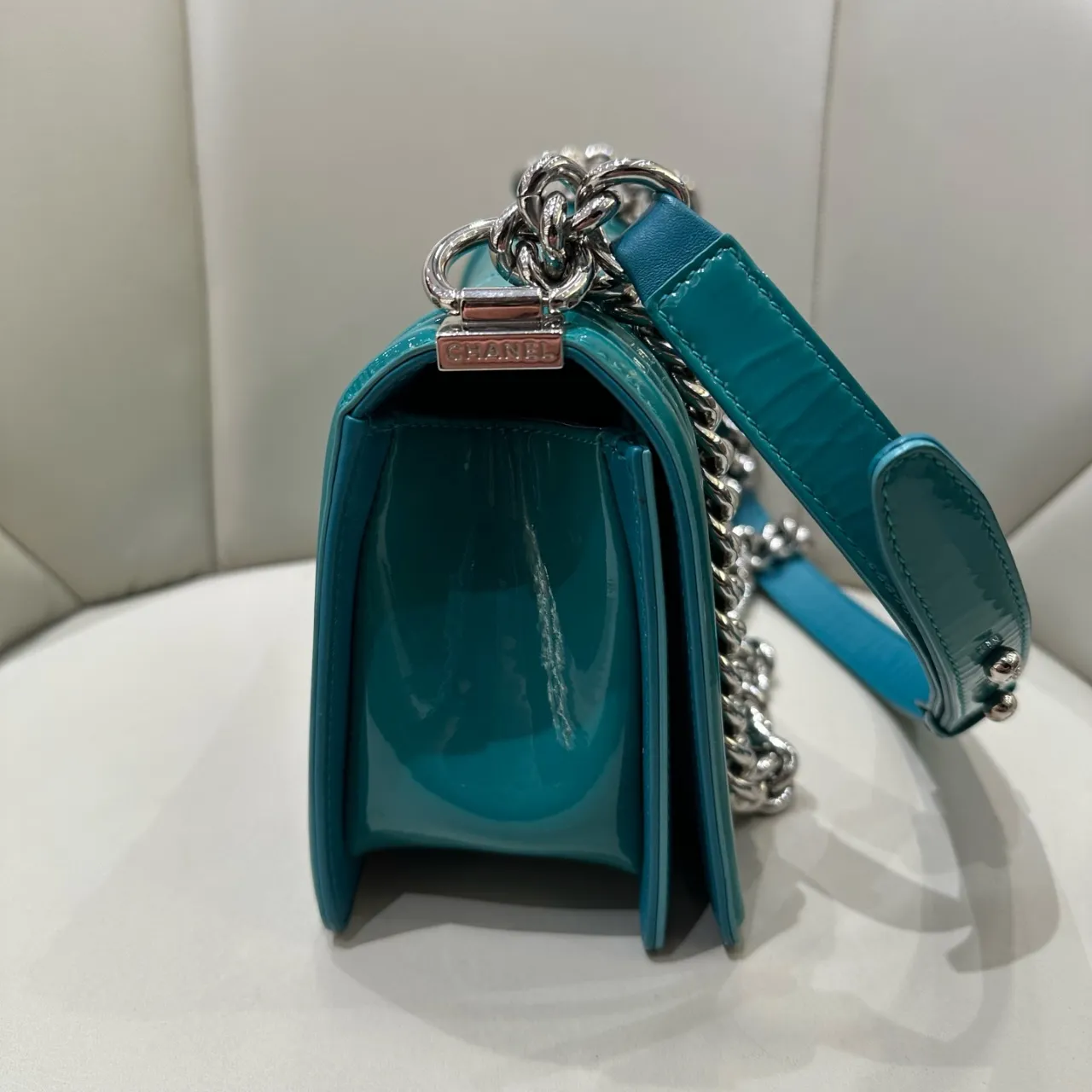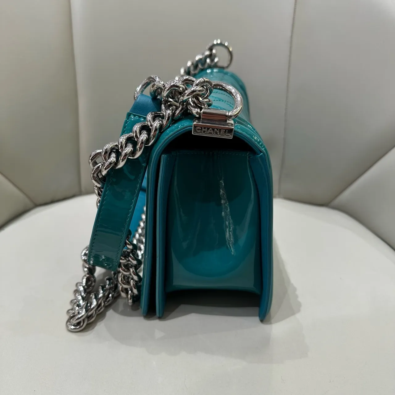 The iconic Chanel Boy Flap Medium Bag is crafted in lake blue eye-catching pink patent leather, offering a bold yet timeless statement. This medium-sized Boy Bag combines a structured silhouette with a modern edge, perfect for both day and evening wear. The glossy patent finish enhances its luxurious appeal, while the classic Boy design remains endlessly desirable. A highly sought-after Chanel style, this piece is known for its durability, versatility, and strong long-term value.