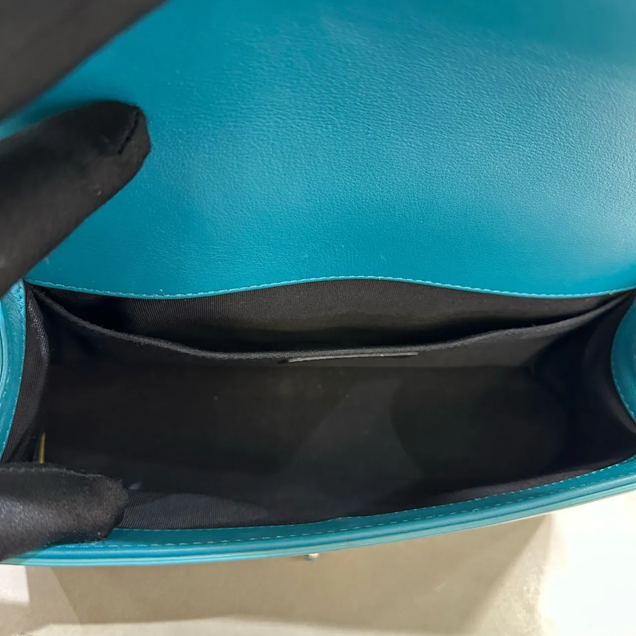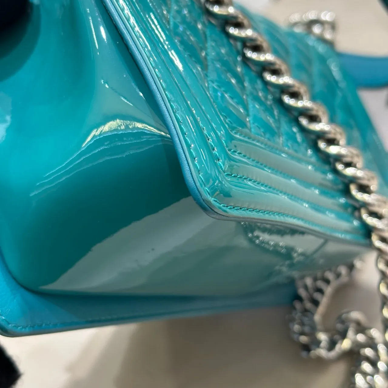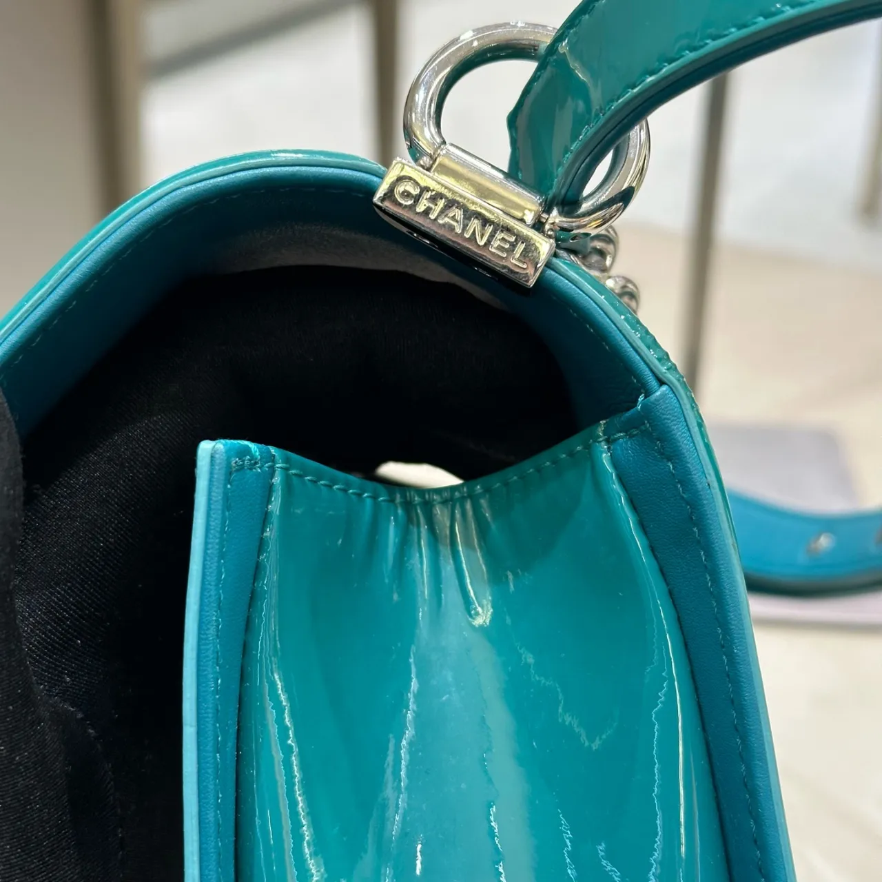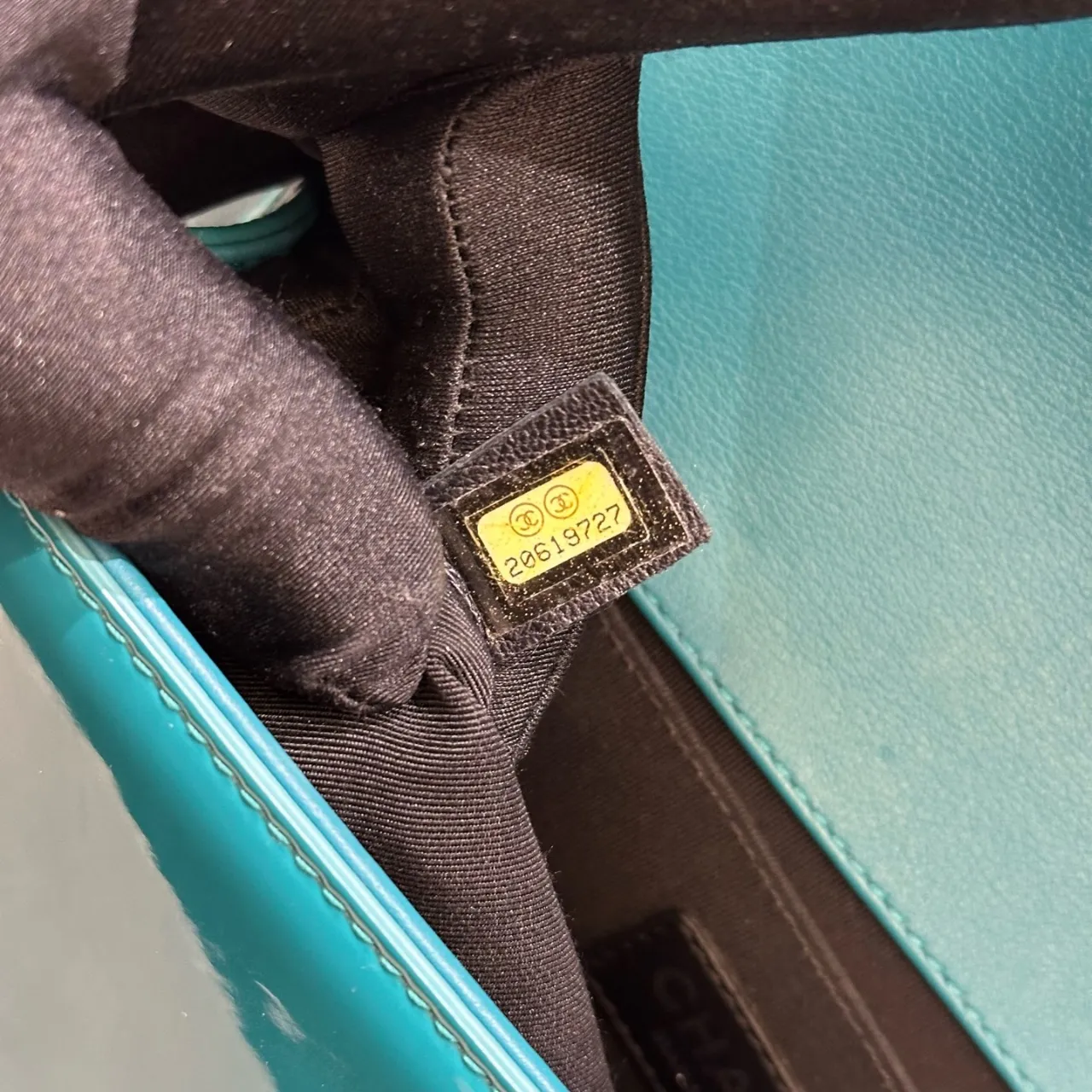 The iconic Chanel Boy Flap Medium Bag is crafted in lake blue eye-catching pink patent leather, offering a bold yet timeless statement. This medium-sized Boy Bag combines a structured silhouette with a modern edge, perfect for both day and evening wear. The glossy patent finish enhances its luxurious appeal, while the classic Boy design remains endlessly desirable. A highly sought-after Chanel style, this piece is known for its durability, versatility, and strong long-term value.