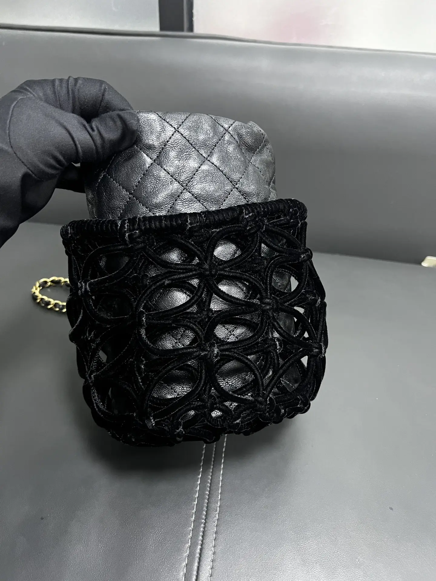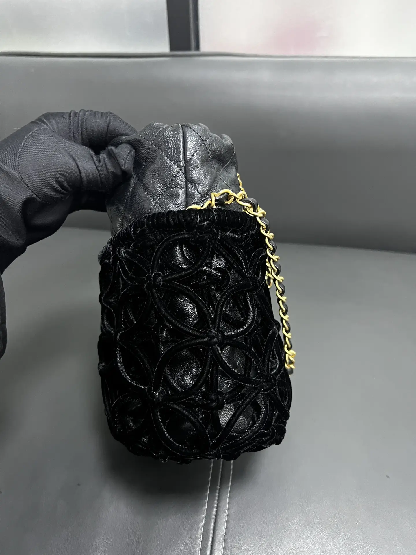 Be the first to review “CHANEL Braided Velvet Goatskin Drawstring Bucket Bag”