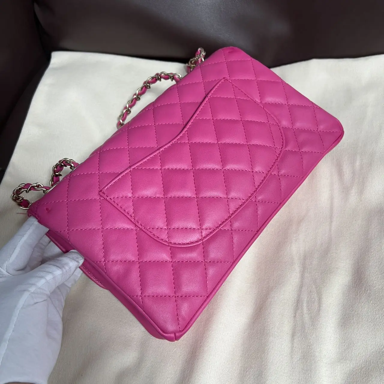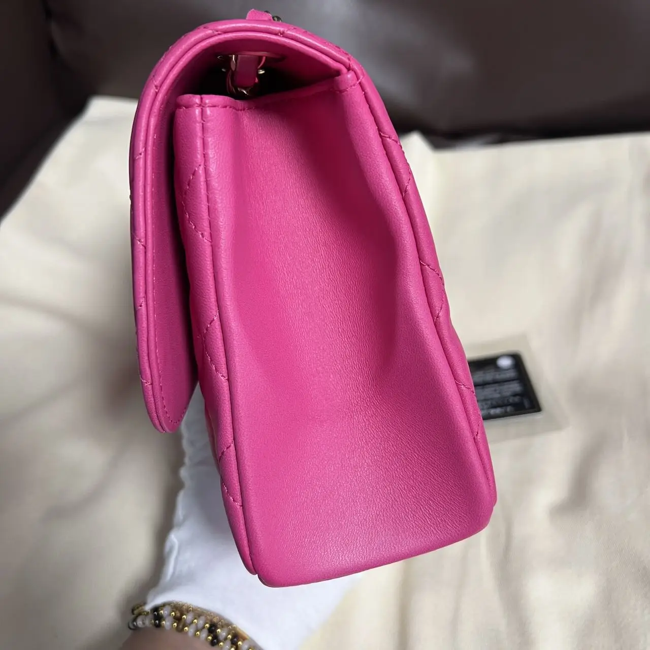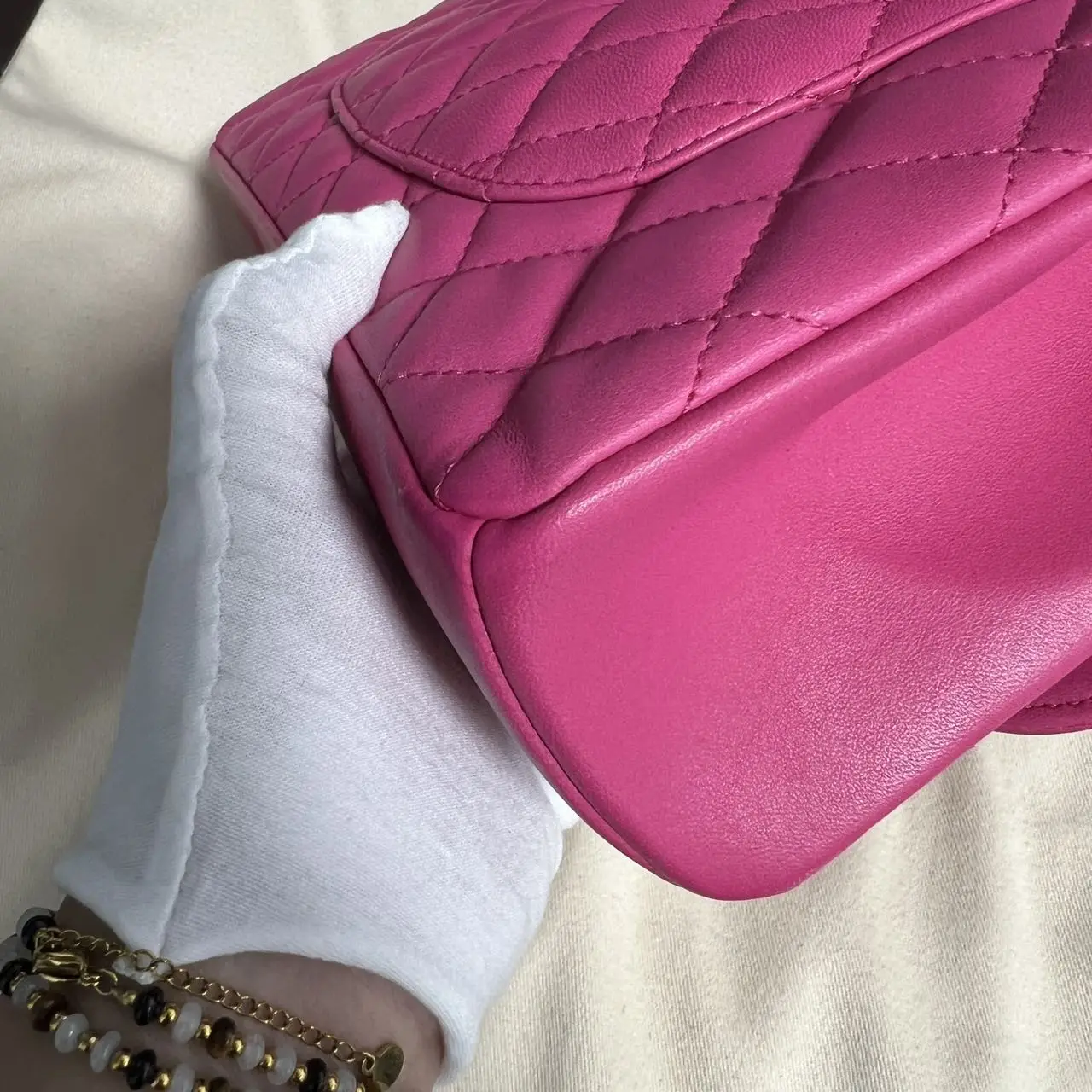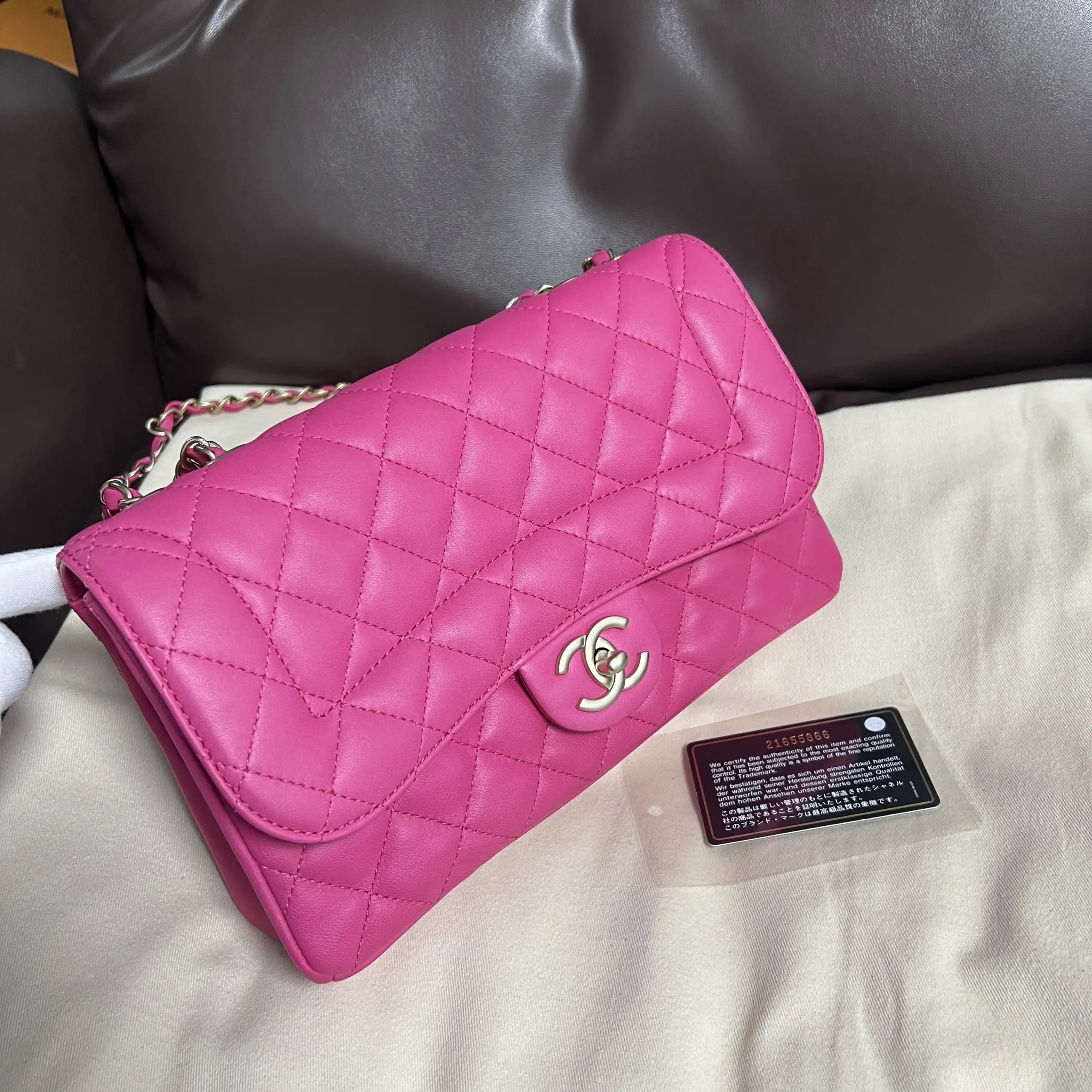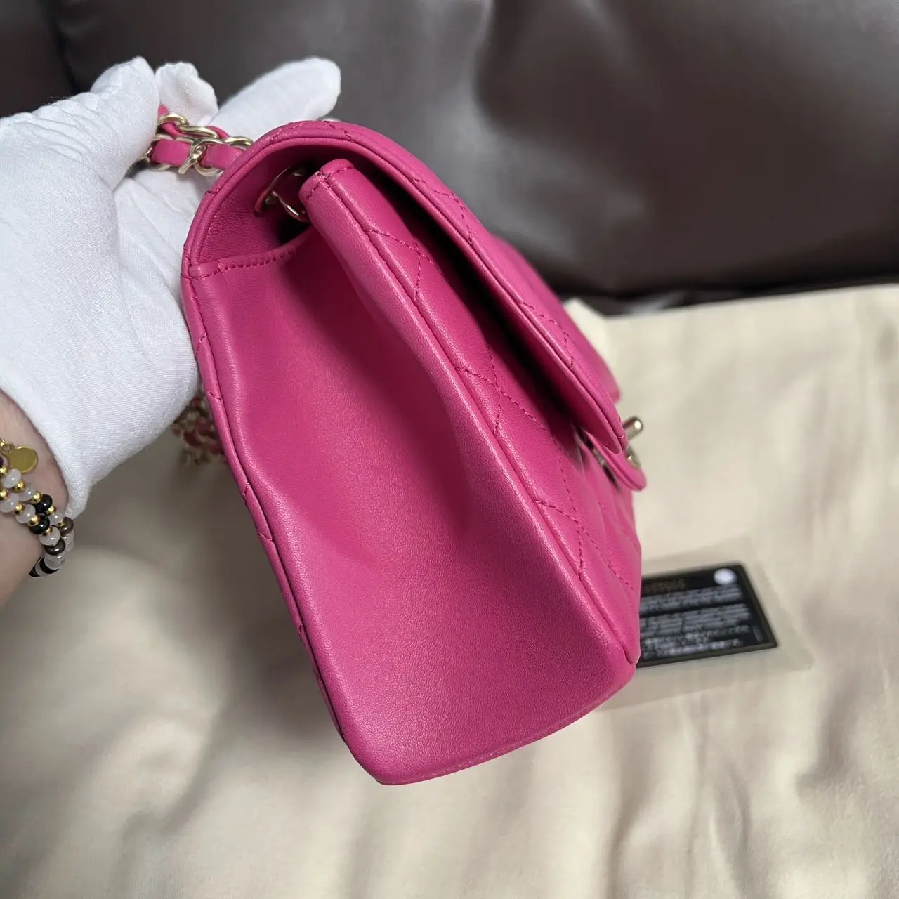 • Material: Pink Lambskin with Gold-Tone Metal