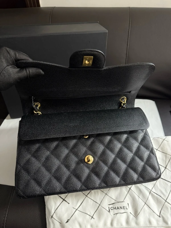 CHANEL Large / Jumbo Classic Flap Handbag Black Caviar Leather is Chanel’s most iconic, best-selling and strongest value-retaining handbag of all time. Crafted in classic black caviar leather with signature gold hardware, this timeless Chanel Classic Flap is renowned for its exceptional durability, scratch resistance and structured silhouette. The large / jumbo size makes it one of the most practical luxury handbags for everyday use, while remaining perfectly suited to formal occasions, business wear and evening events. Universally versatile and endlessly elegant, this black caviar Chanel bag is considered a true wardrobe essential and long-term investment piece. Offered in near-new condition at the lowest UK price of just £5,799, this represents an exceptional opportunity to own a Chanel Jumbo Classic Flap at almost half the price of buying brand new.