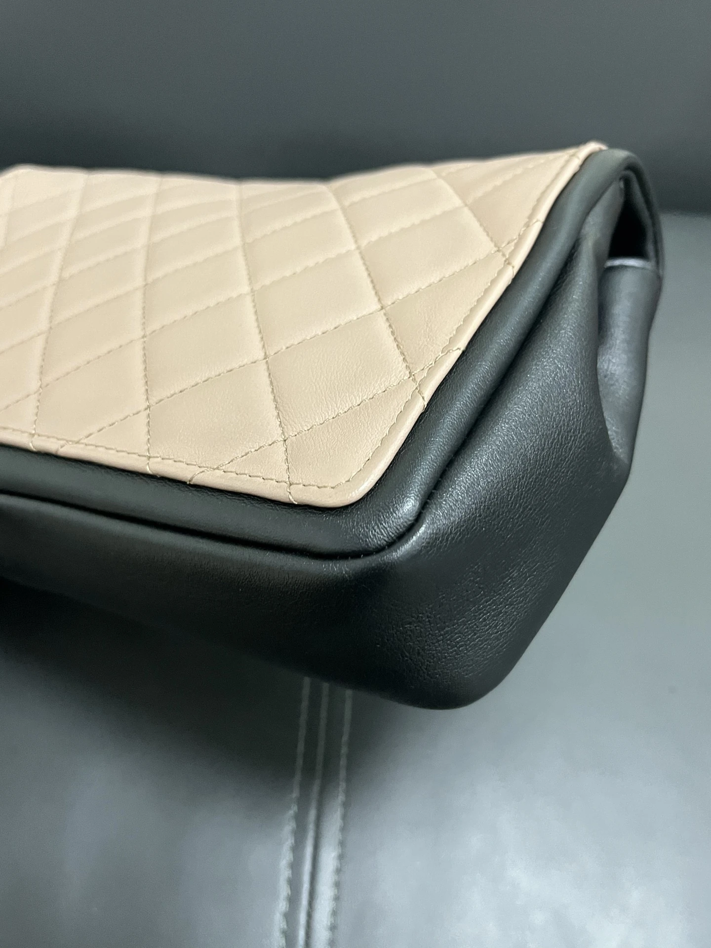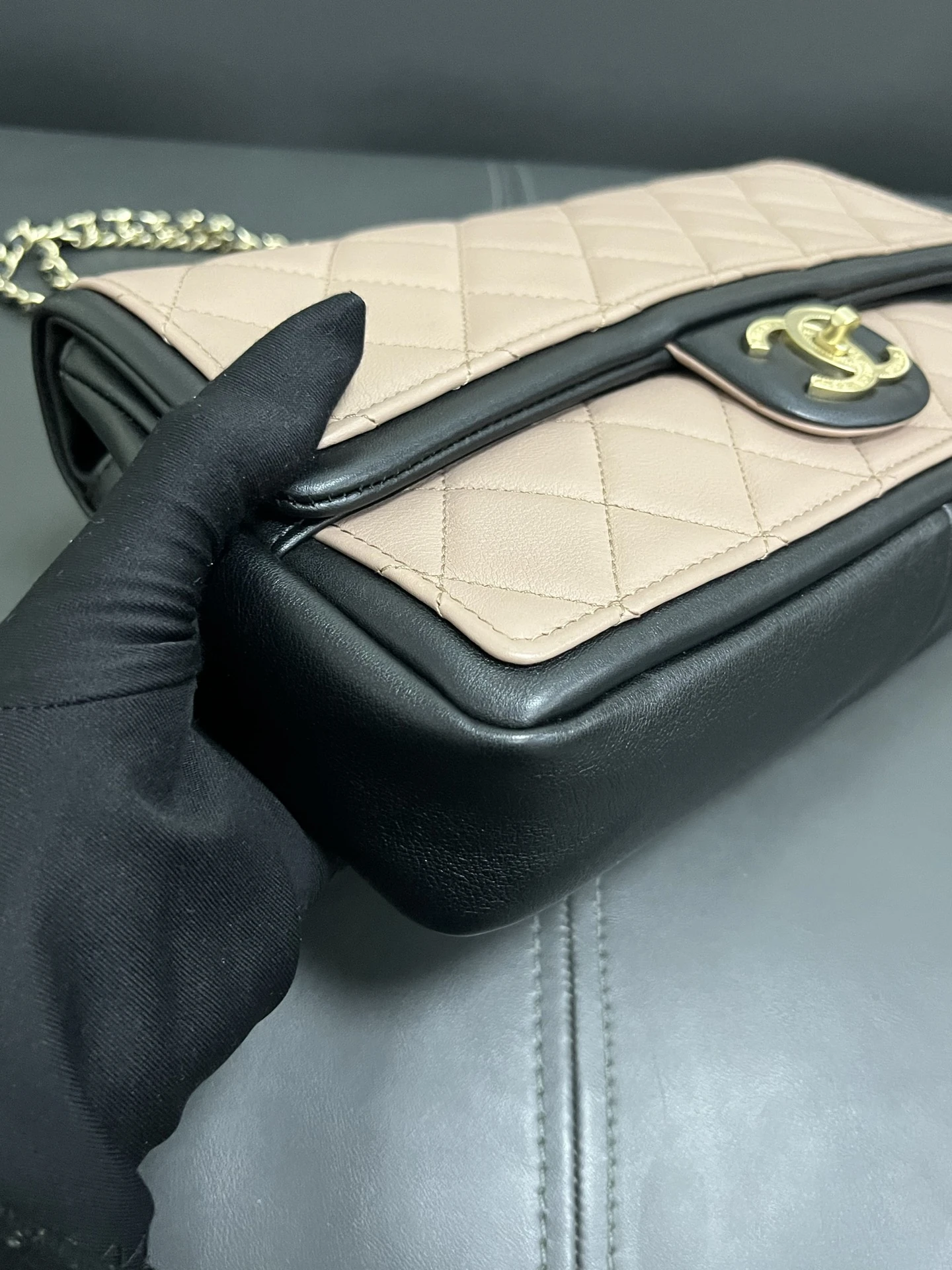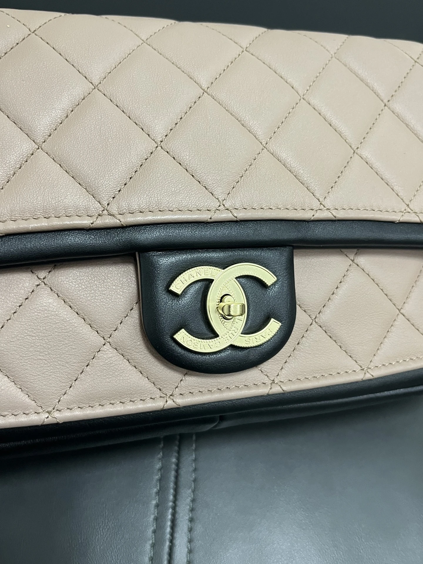 CHANEL Graphic Flap Medium Bag Beige Lambskin Leather With Black Trim