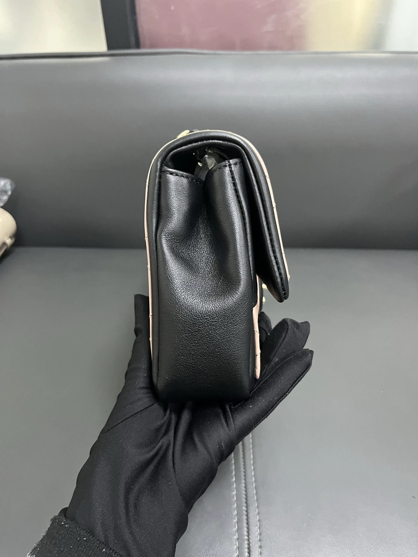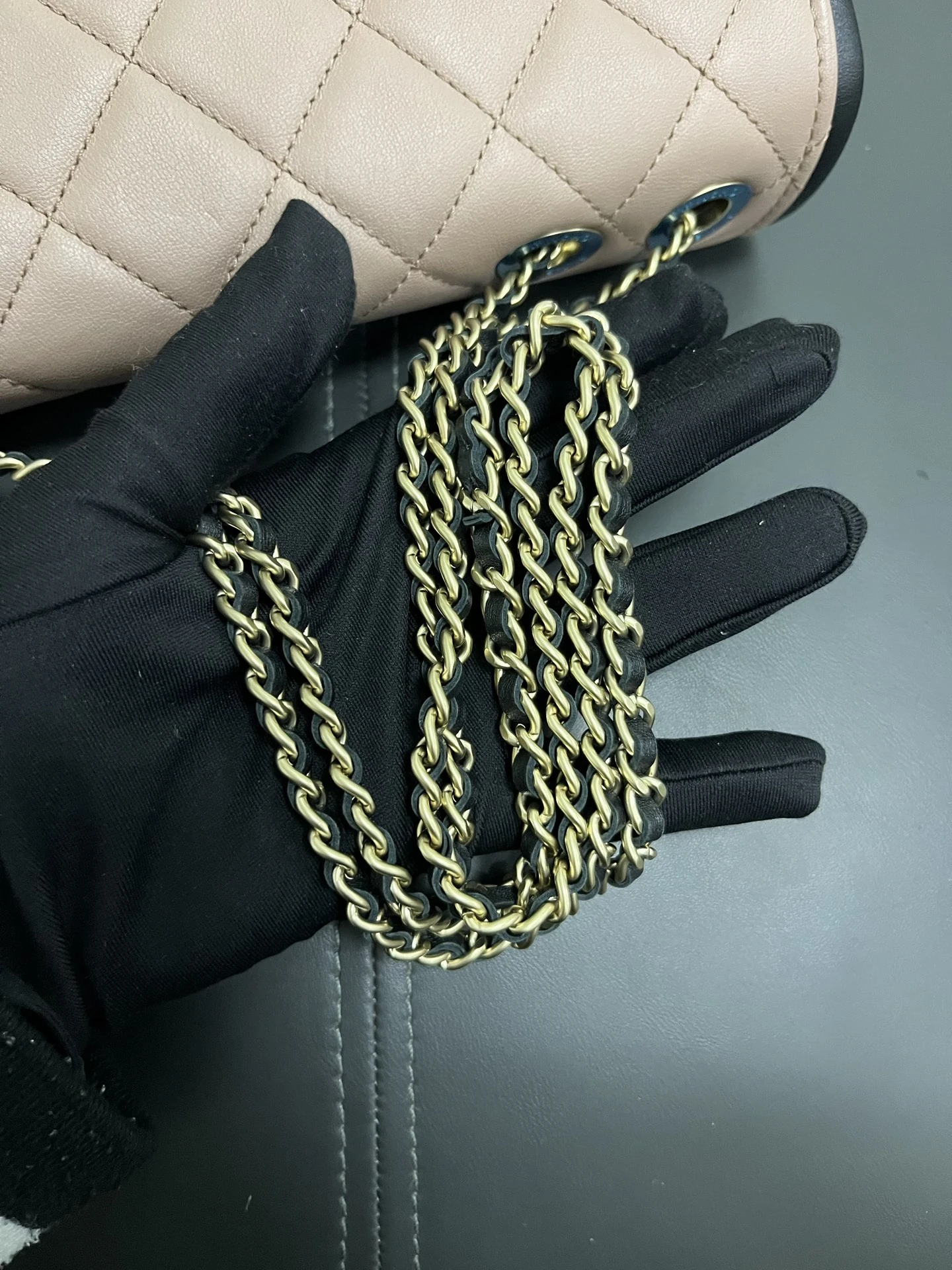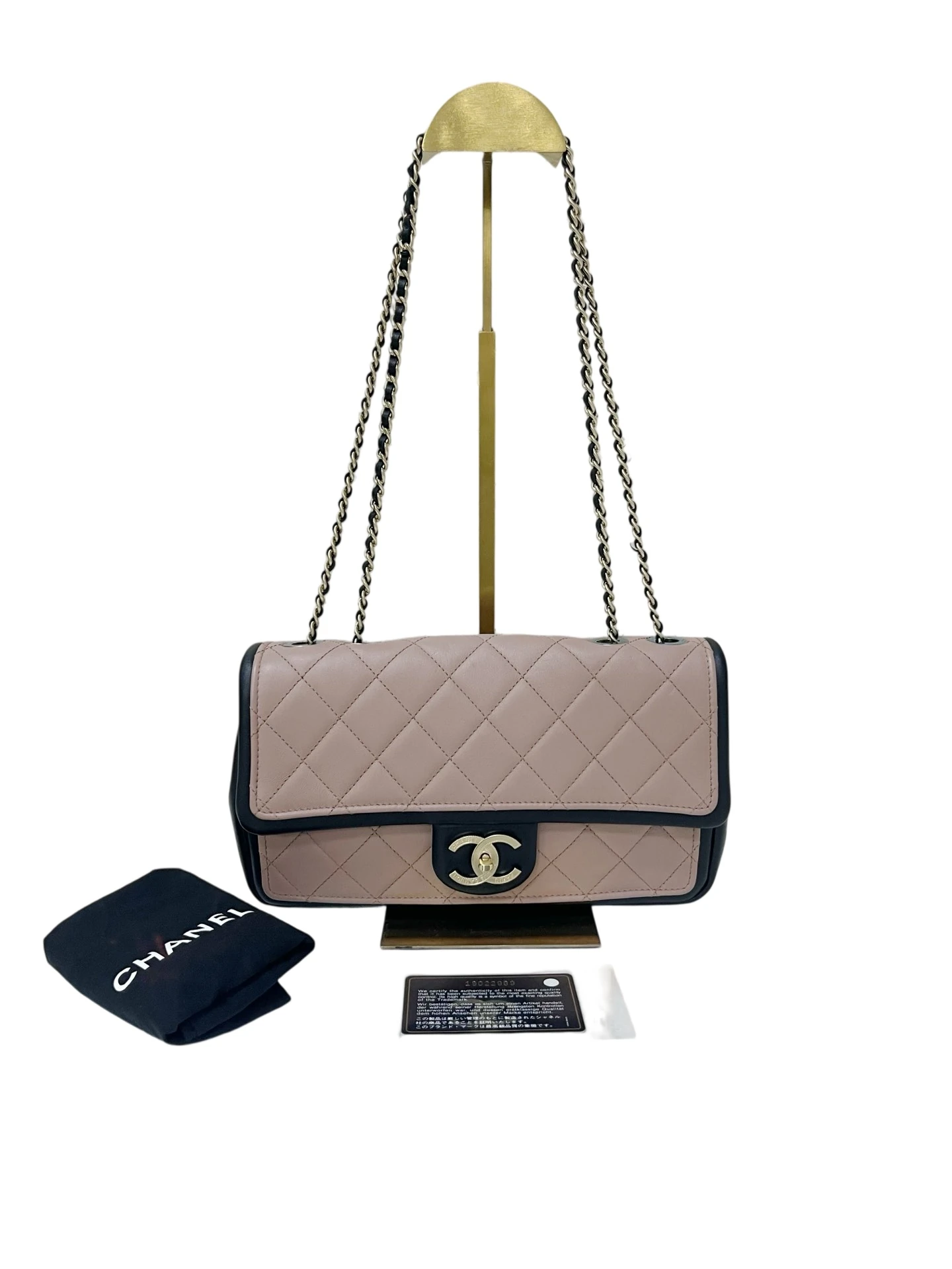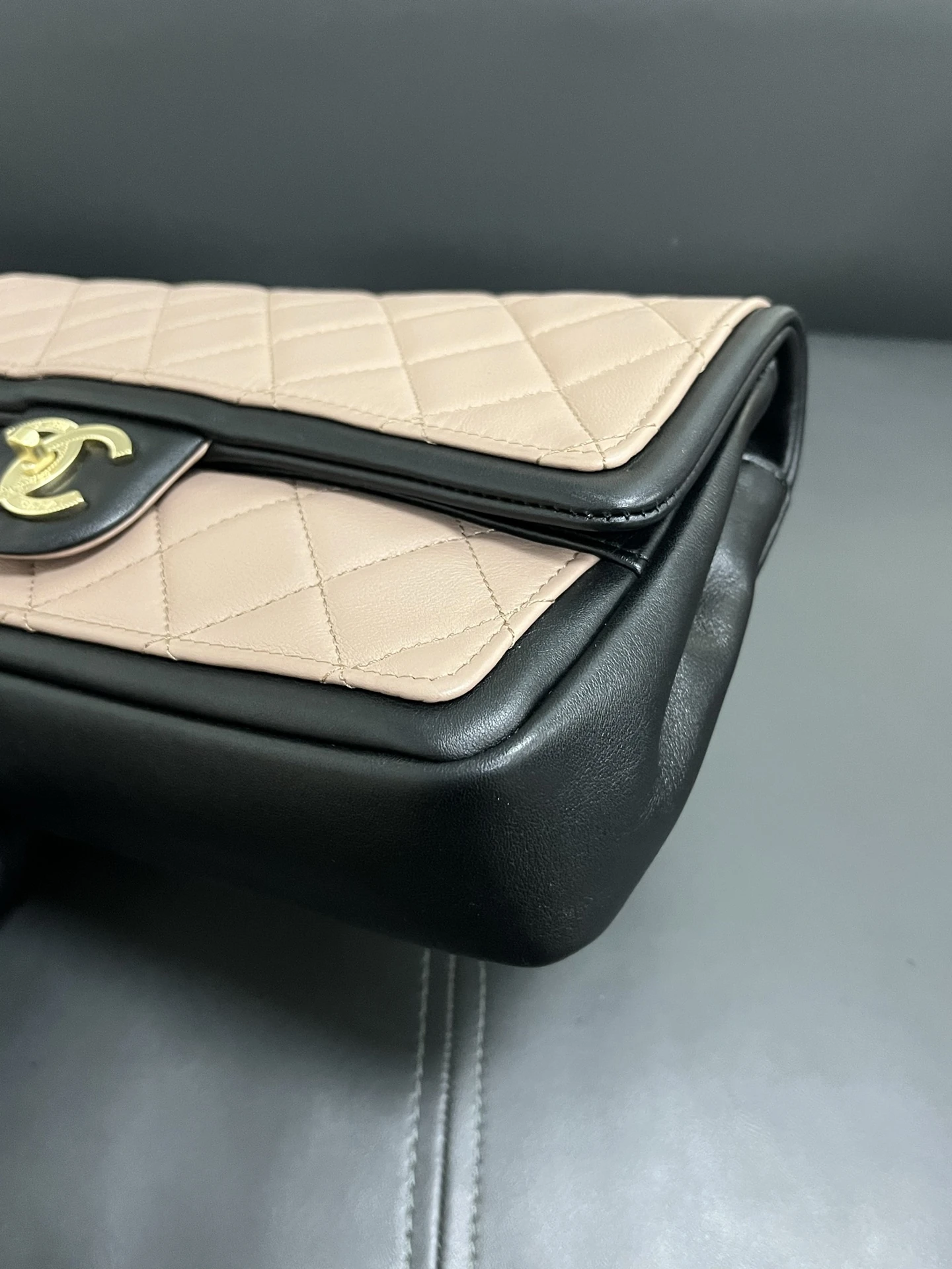 CHANEL Graphic Flap Medium Bag Beige Lambskin Leather With Black Trim
