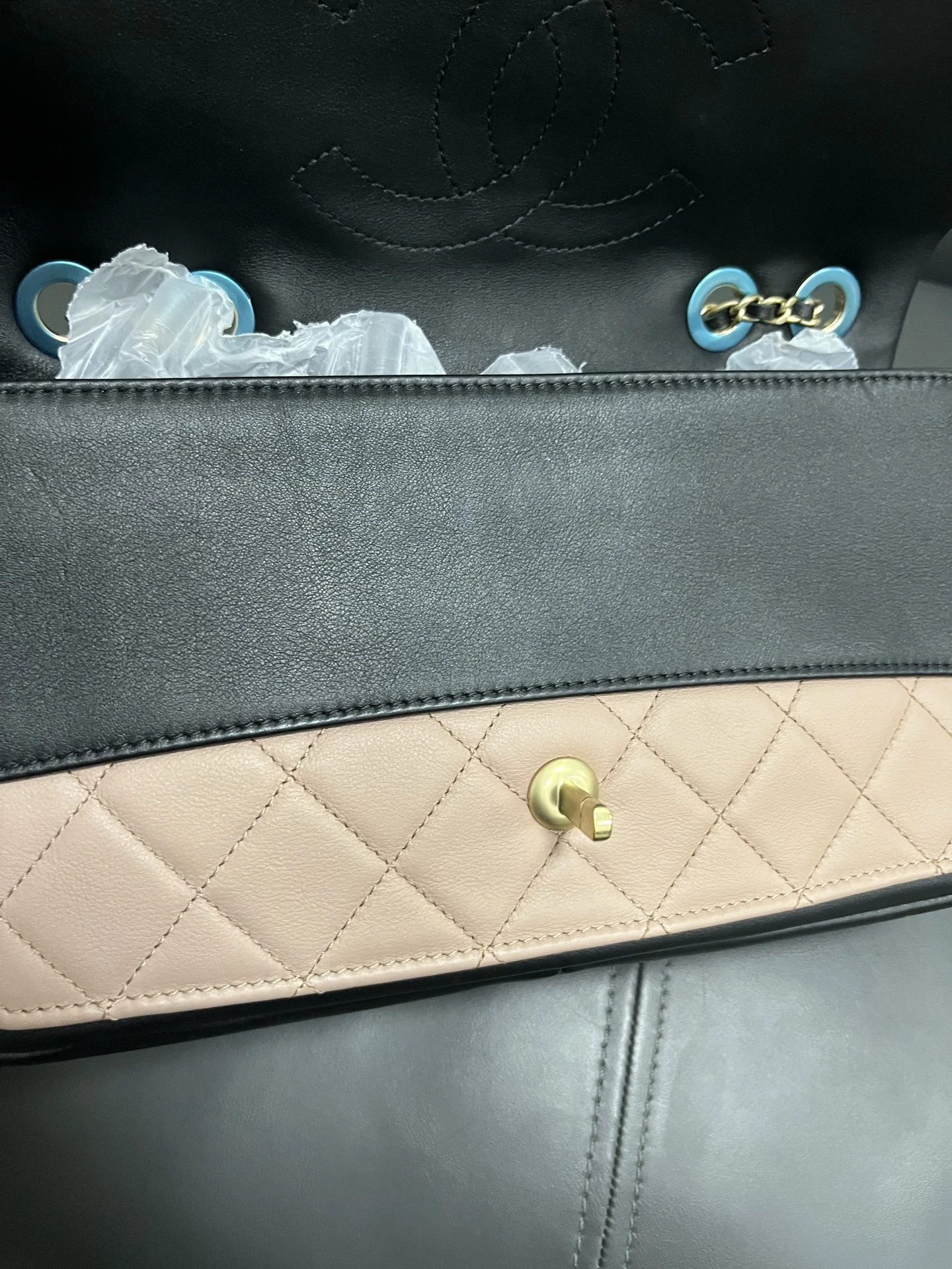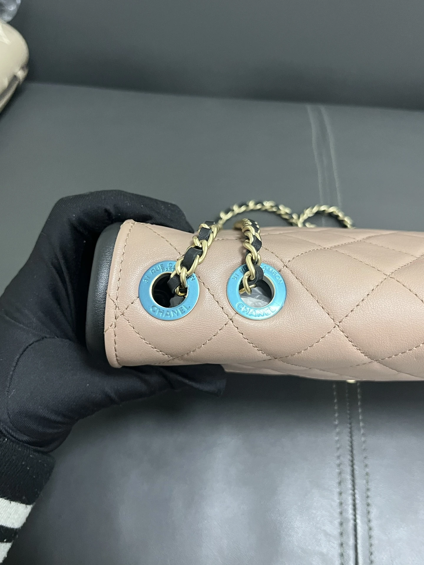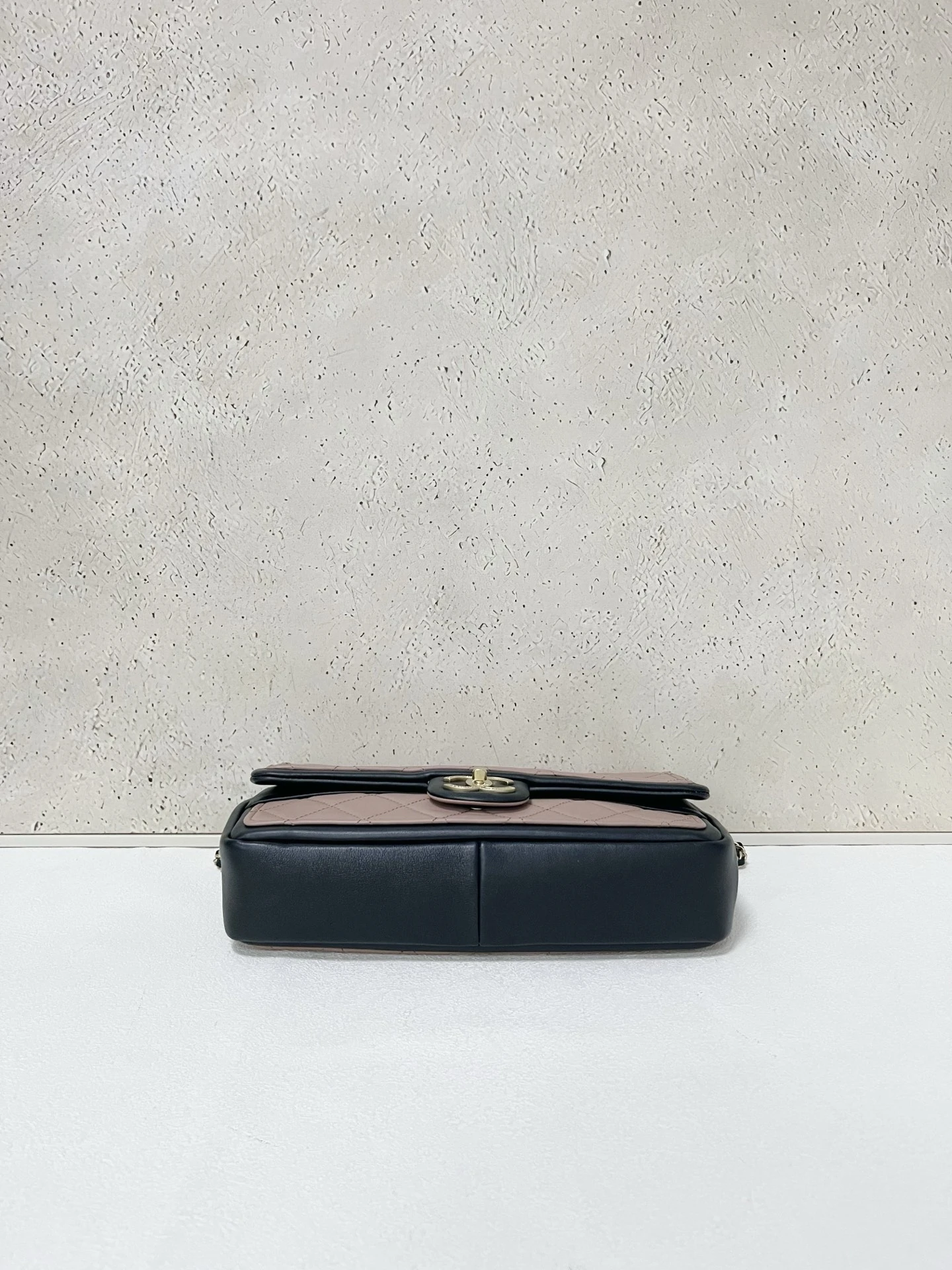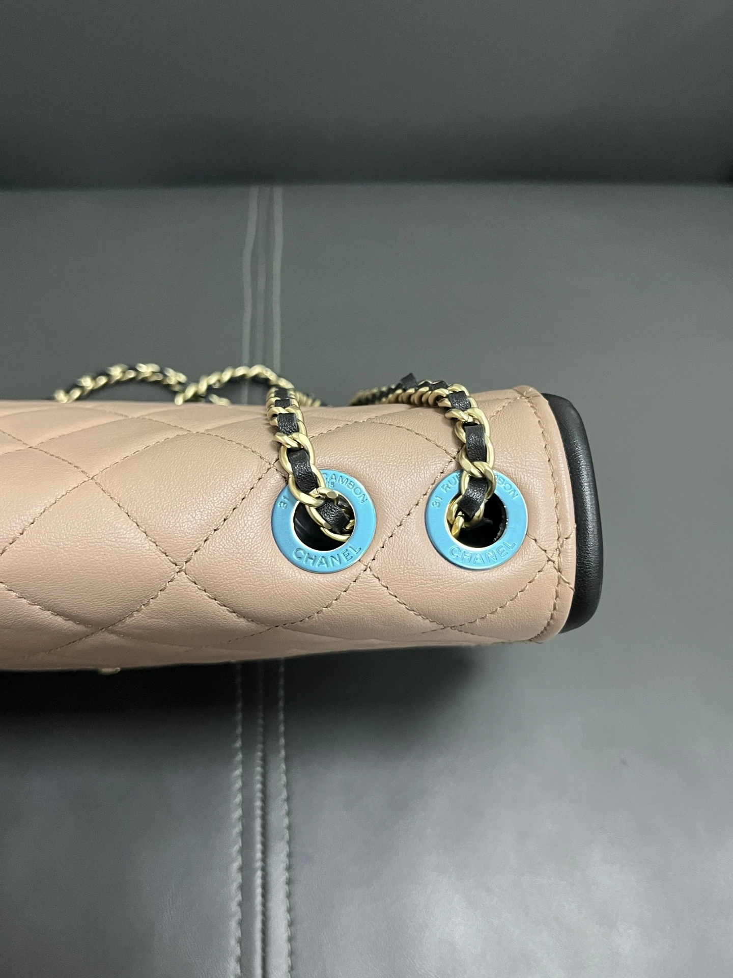 Home/WOMENS/ALL BAGS/CHANEL Graphic Flap Medium Bag Beige Lambskin Leather With Black Trim