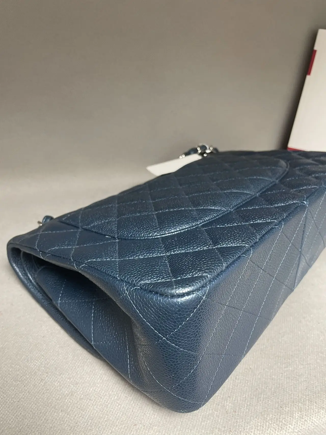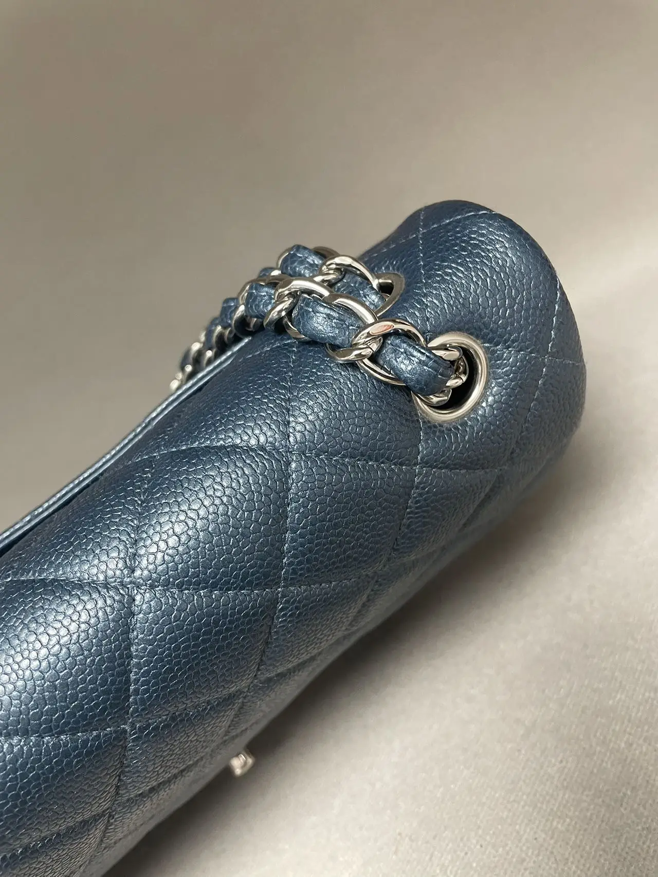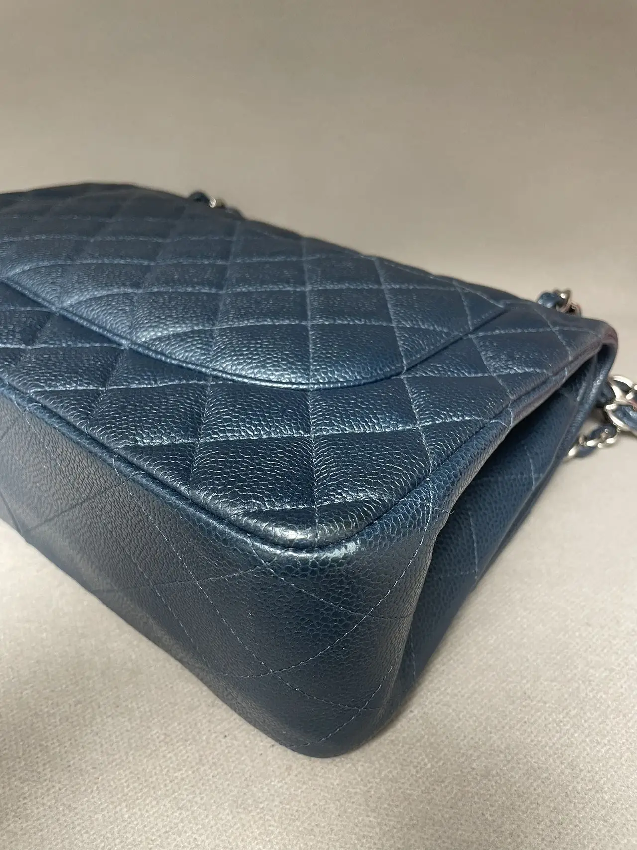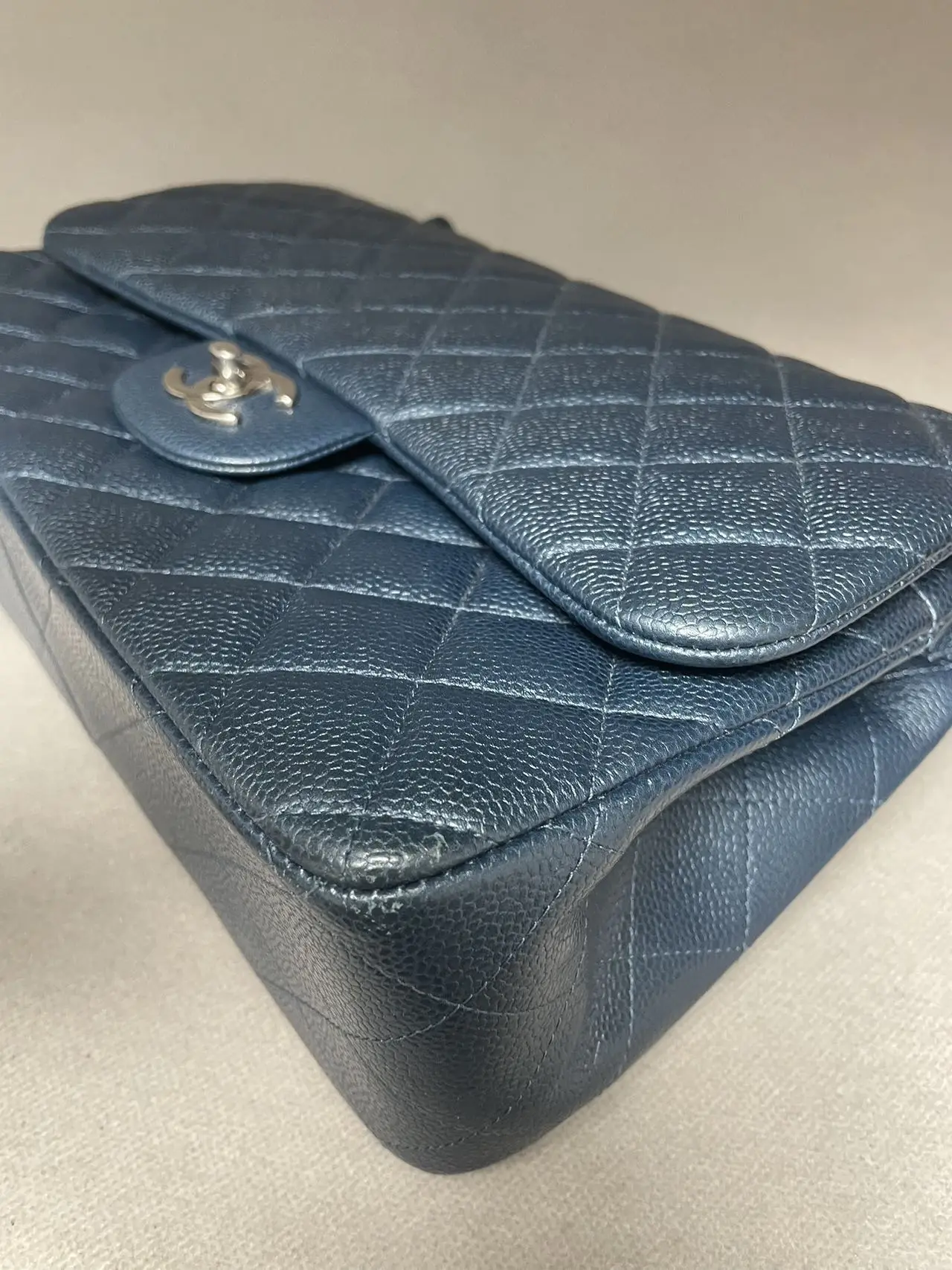 The CHANEL Jumbo Classic Double Flap Bag in blue caviar leather with silver-tone hardware is the ultimate statement of spacious elegance, combining the iconic dual-flap structure, durable diamond-quilted texture, and cool-toned hardware for a bold and timeless presence.