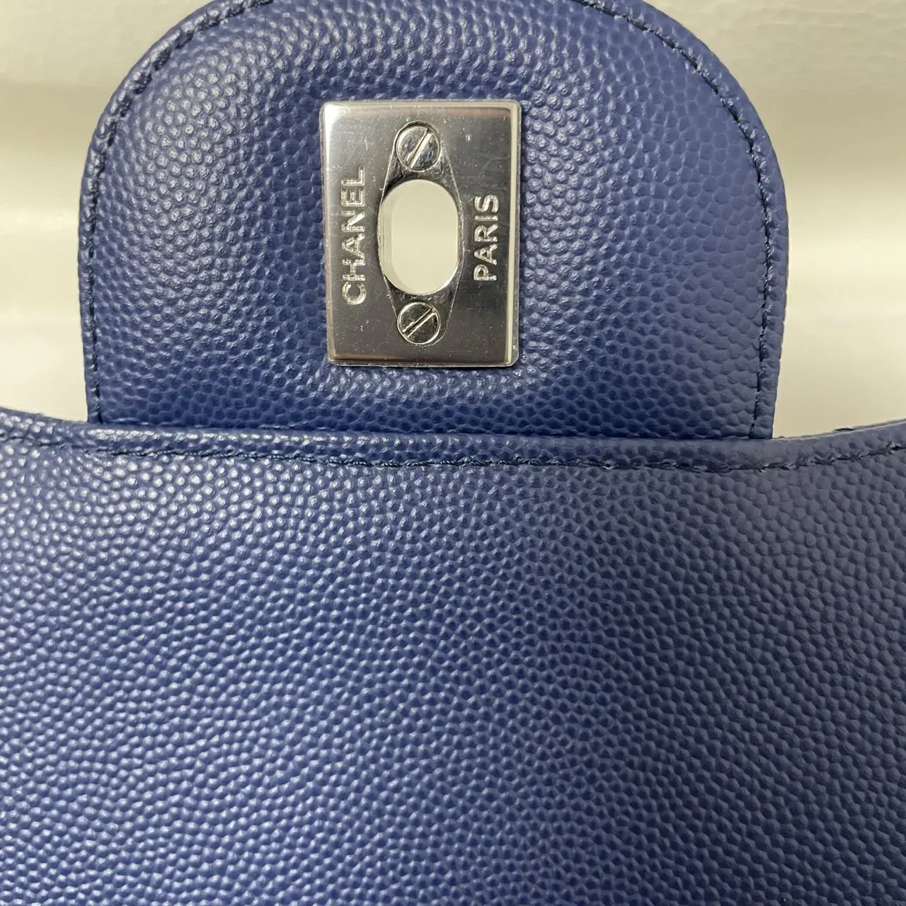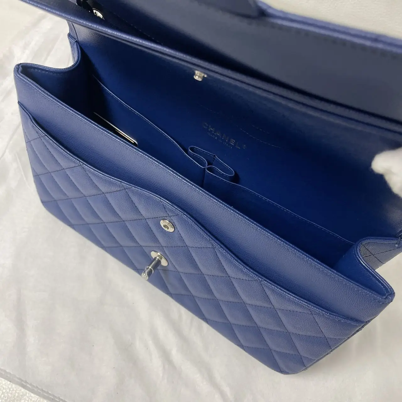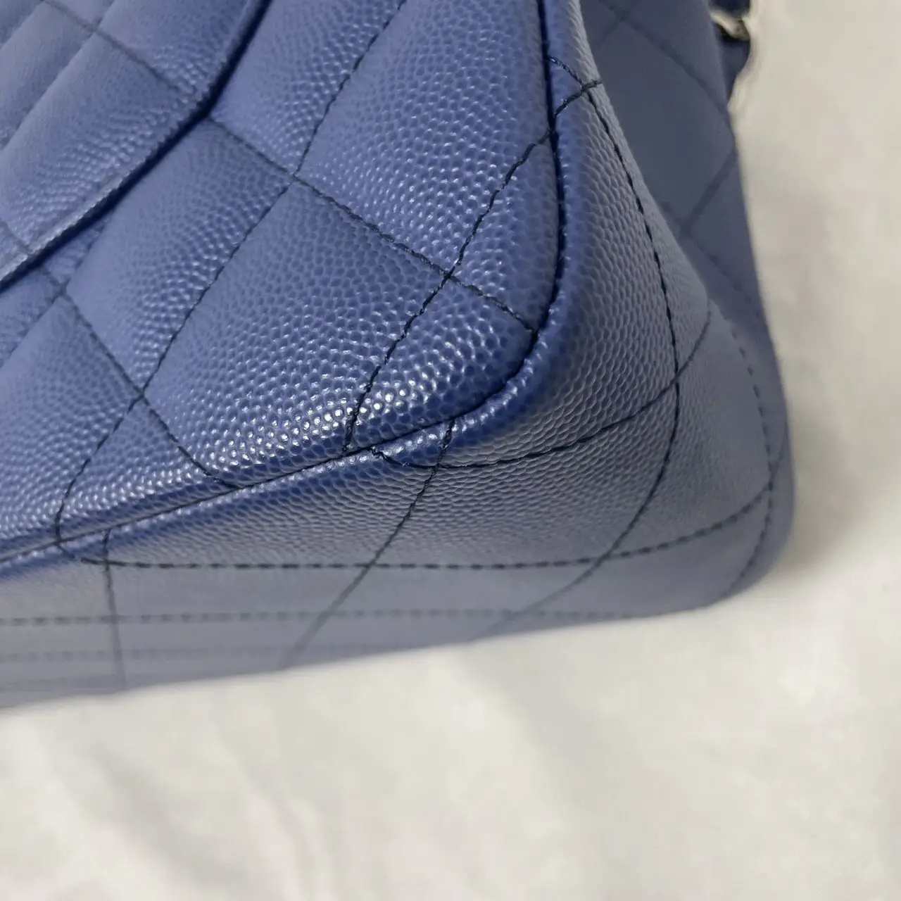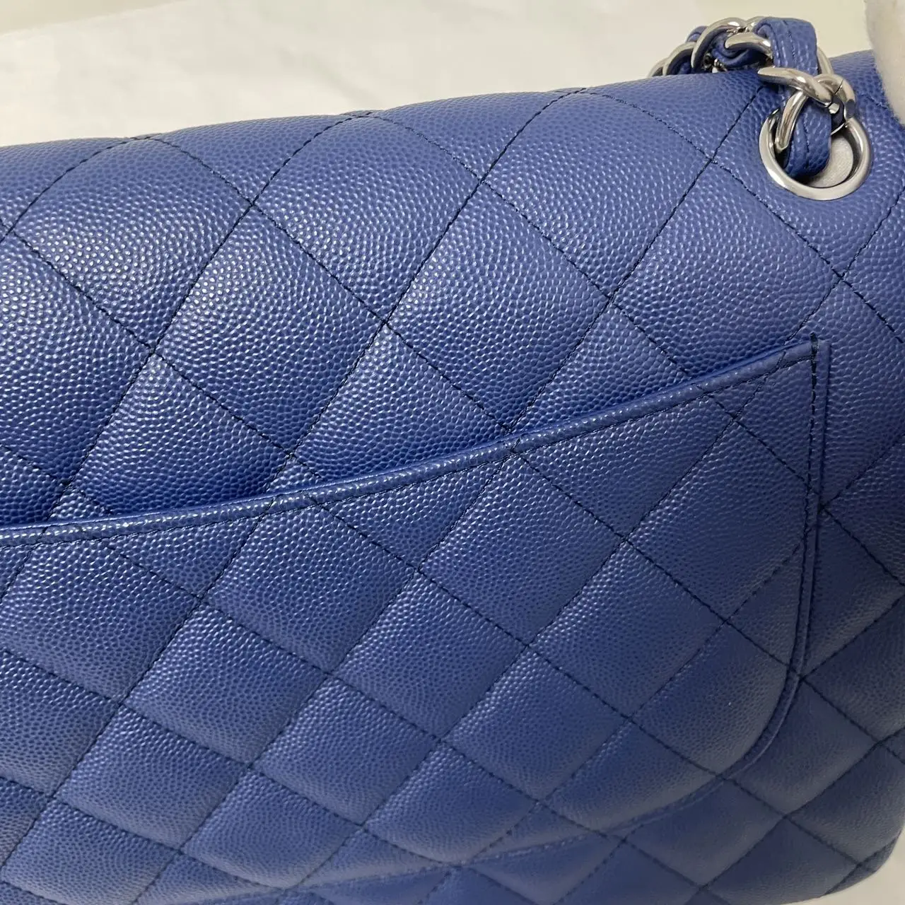 CHANEL Jumbo Classic Flap Navy Caviar is one of the most iconic and timeless handbags in the world of luxury fashion. Crafted from durable caviar leather in an elegant navy shade, this classic flap bag offers the perfect balance between sophistication and everyday practicality. The jumbo size provides generous space while maintaining the structured silhouette Chanel is renowned for. Finished with the signature CC turn-lock and interwoven leather chain strap, it is both instantly recognisable and endlessly versatile. Highly sought after and increasingly rare, this bag remains a strong investment piece that never goes out of style. A true wardrobe icon for collectors and Chanel lovers alike.
