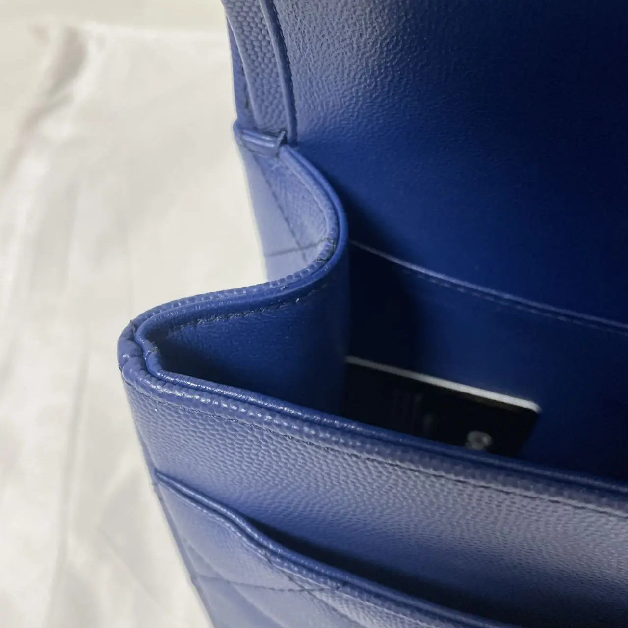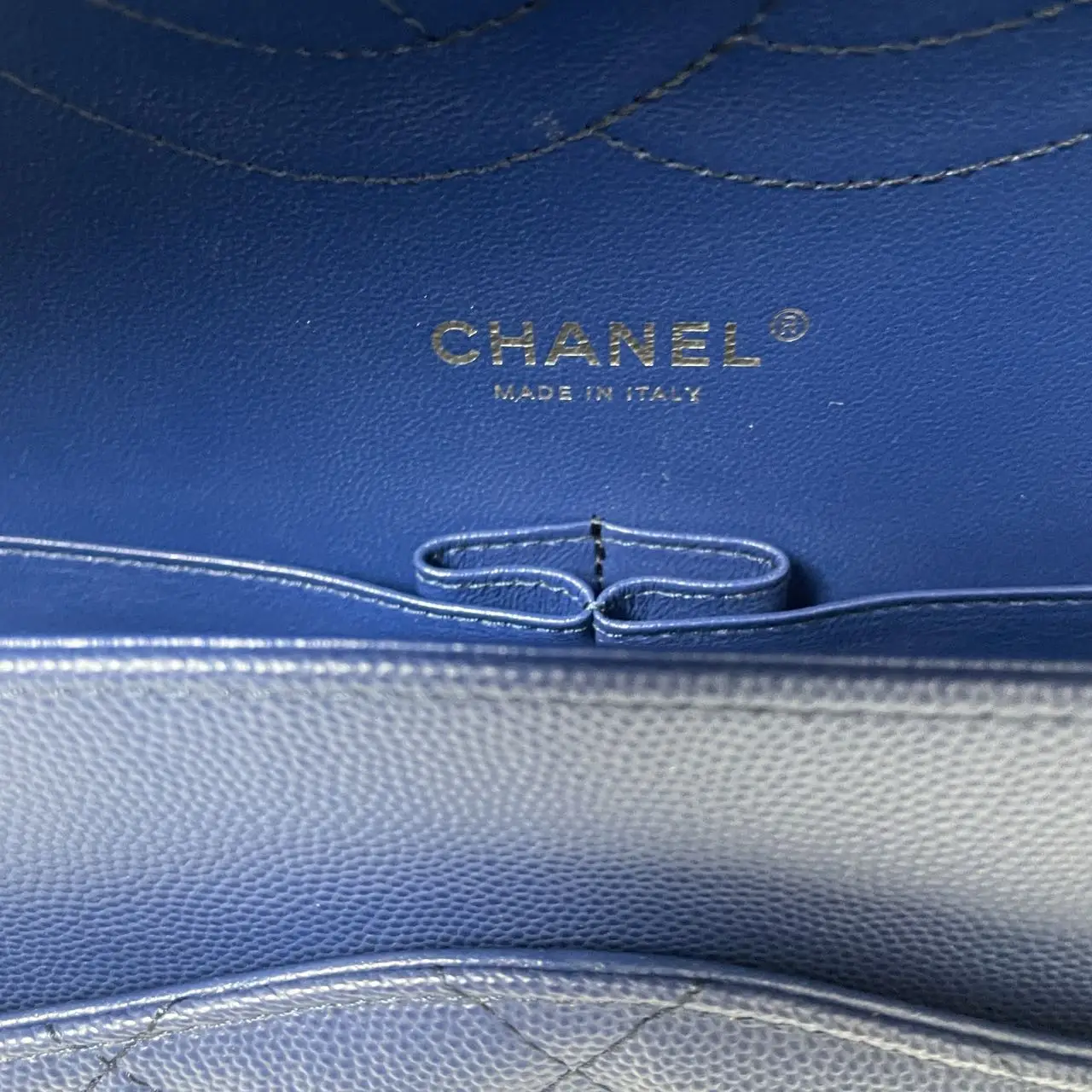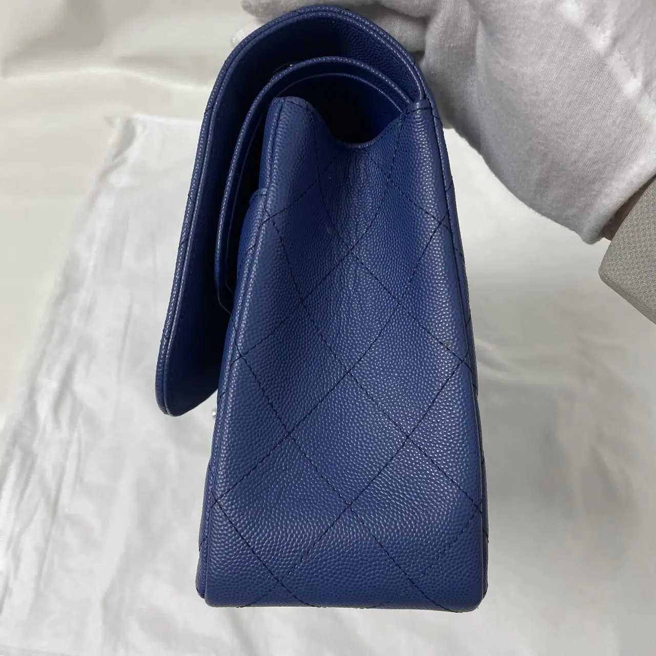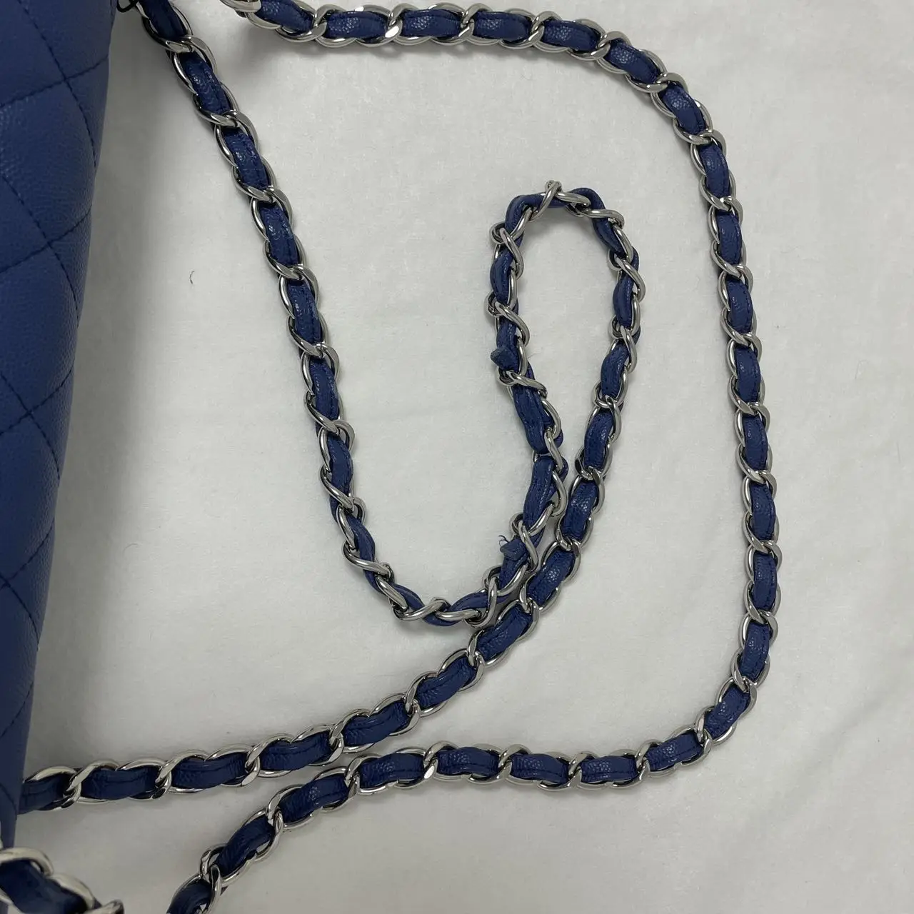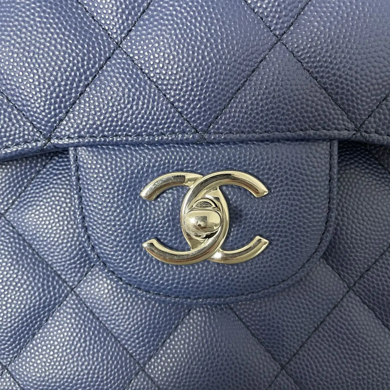 CHANEL Jumbo Classic Flap Navy Caviar is one of the most iconic and timeless handbags in the world of luxury fashion. Crafted from durable caviar leather in an elegant navy shade, this classic flap bag offers the perfect balance between sophistication and everyday practicality. The jumbo size provides generous space while maintaining the structured silhouette Chanel is renowned for. Finished with the signature CC turn-lock and interwoven leather chain strap, it is both instantly recognisable and endlessly versatile. Highly sought after and increasingly rare, this bag remains a strong investment piece that never goes out of style. A true wardrobe icon for collectors and Chanel lovers alike.