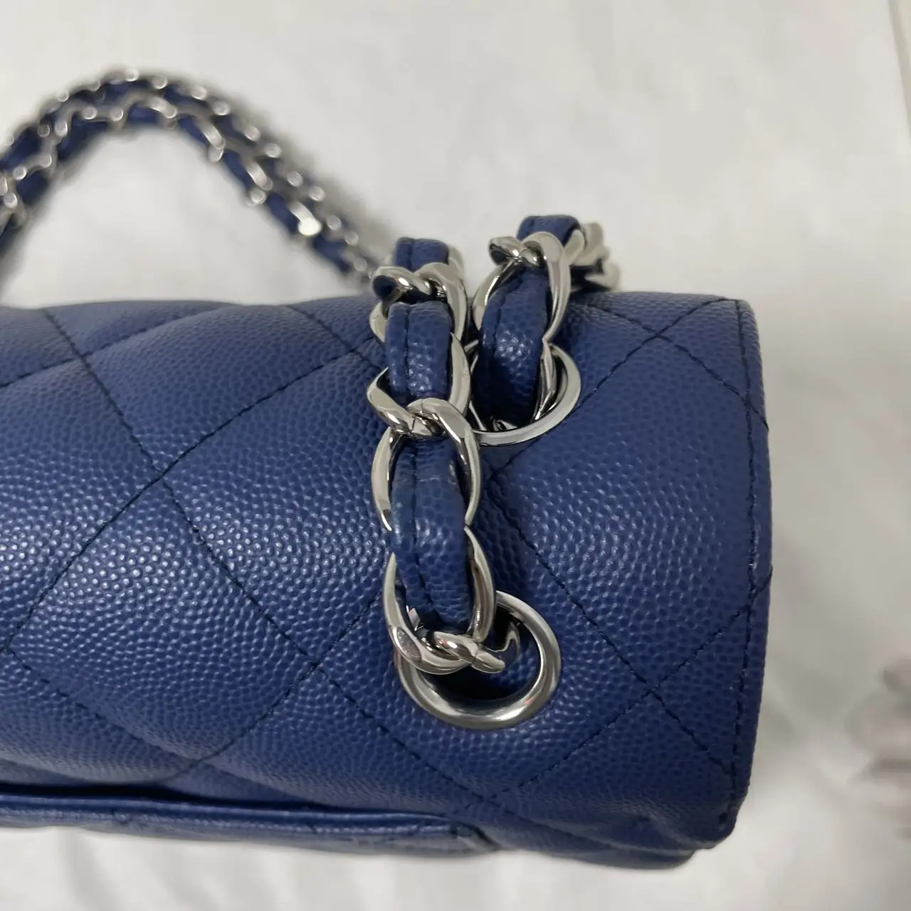 CHANEL Mini Classic Top Handle Flap Bag Blue Quilted Lambskin