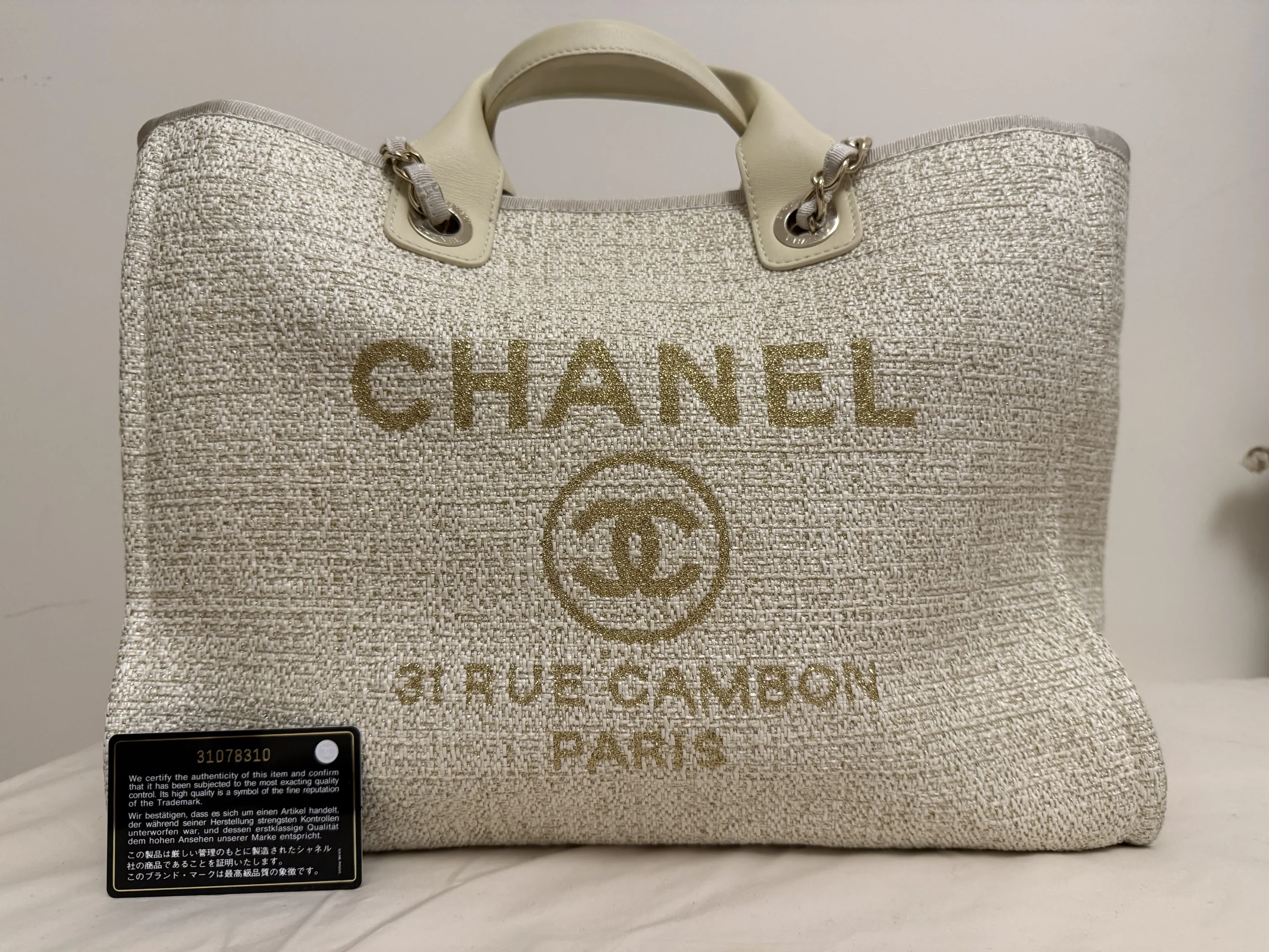 The CHANEL Large Deauville Tote Bag blends timeless Chanel style with everyday practicality, perfect for travel, work, or daily essentials. Crafted with premium materials and iconic design details, this spacious tote is both luxurious and versatile. Available brand new at an unbeatable UK low price, this large Chanel tote offers exceptional value. Now priced at just £2,799, it’s one of the best deals on a genuine Chanel Deauville in the UK.