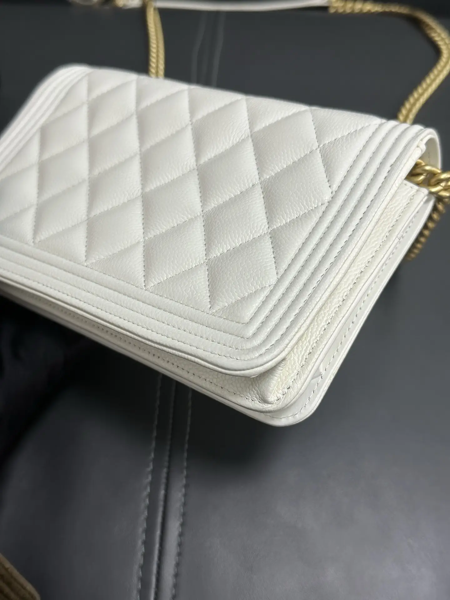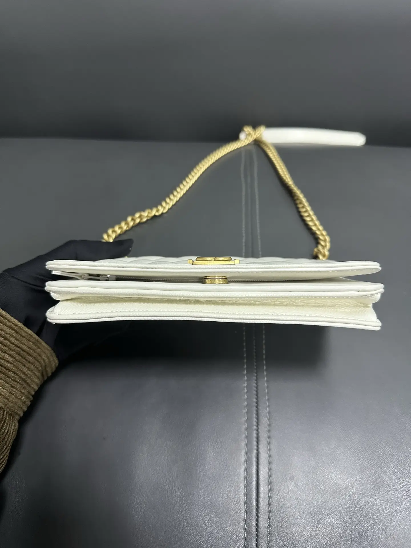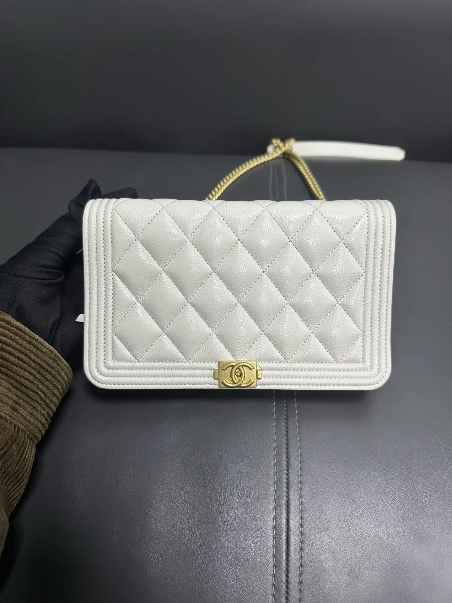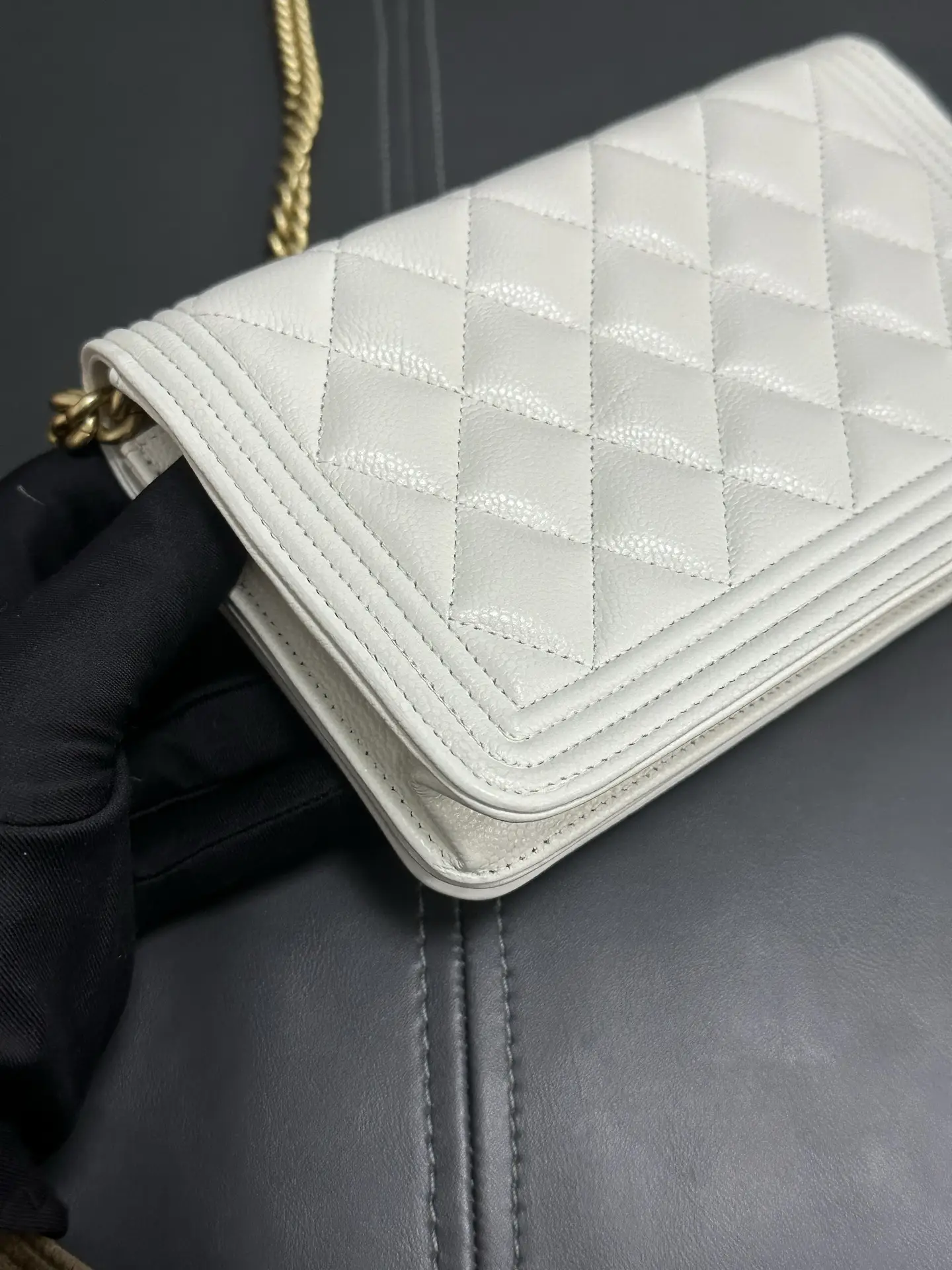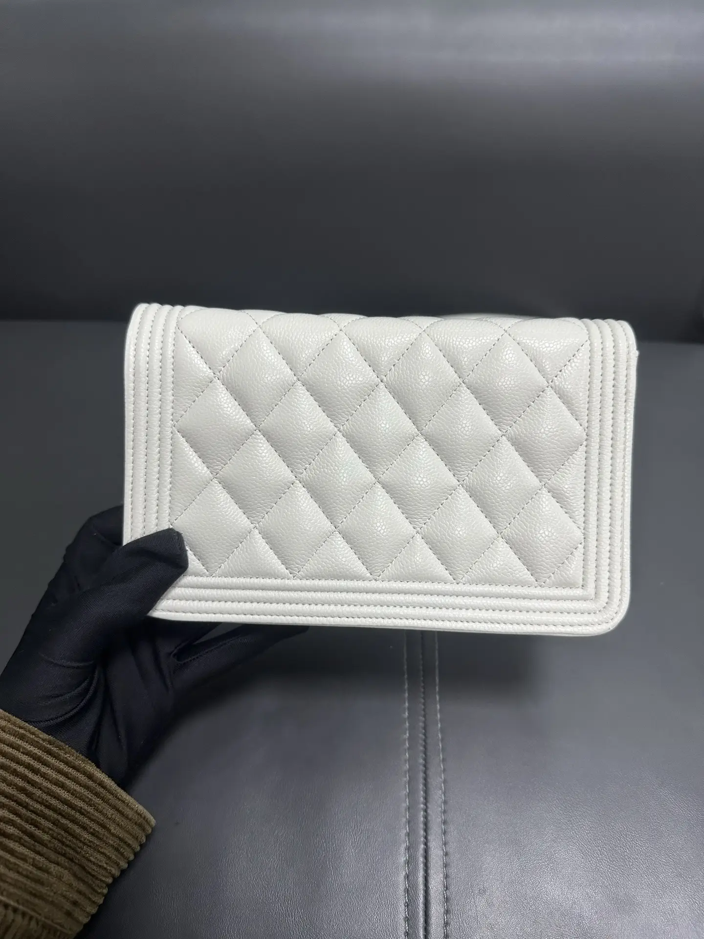 CHANEL Boy Wallet on Chain White Caviar Leather