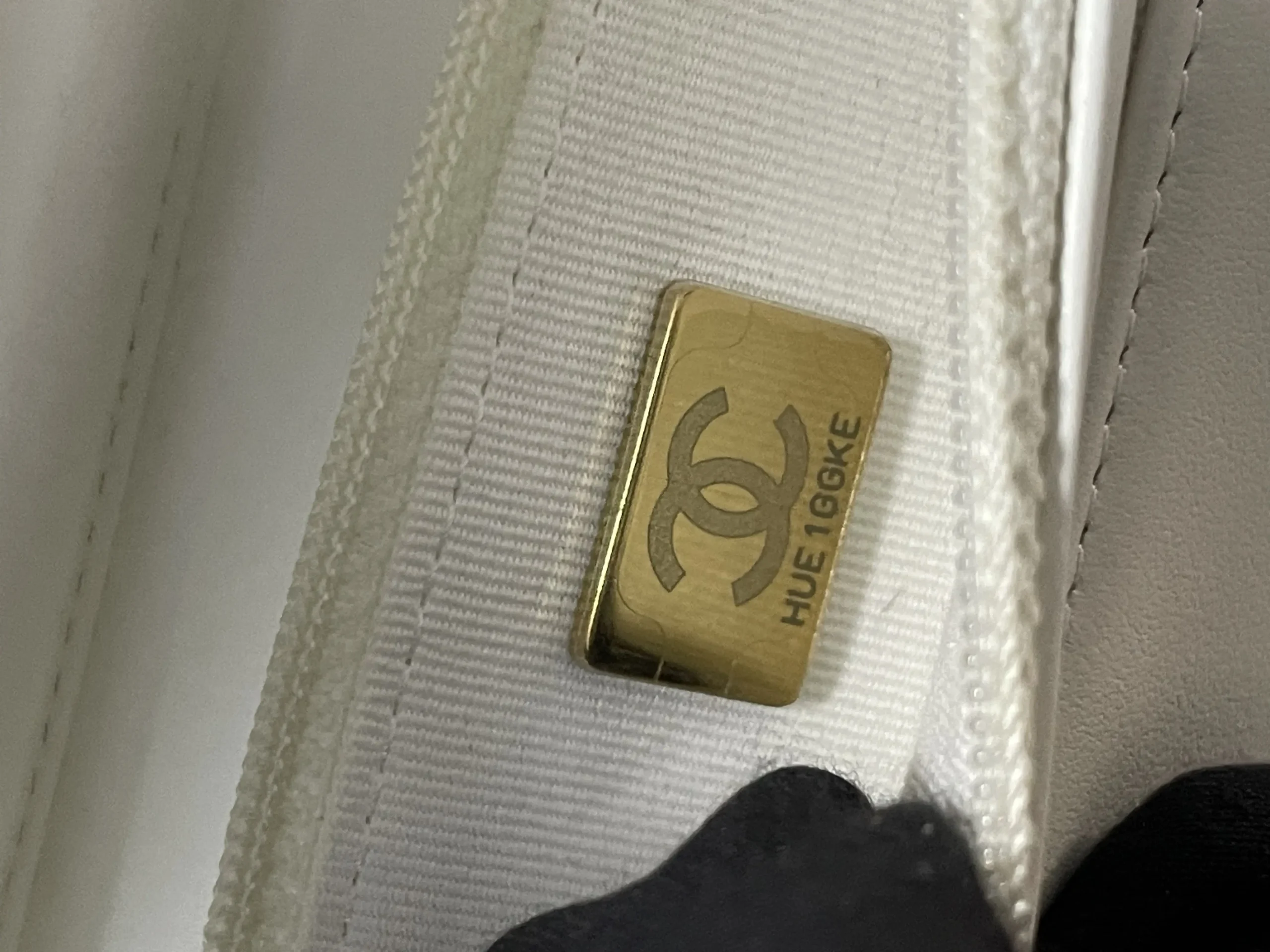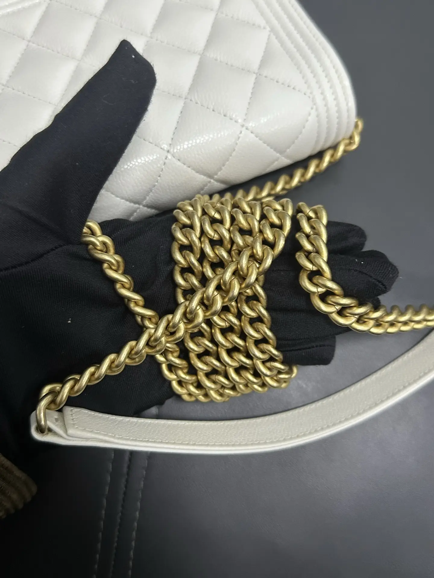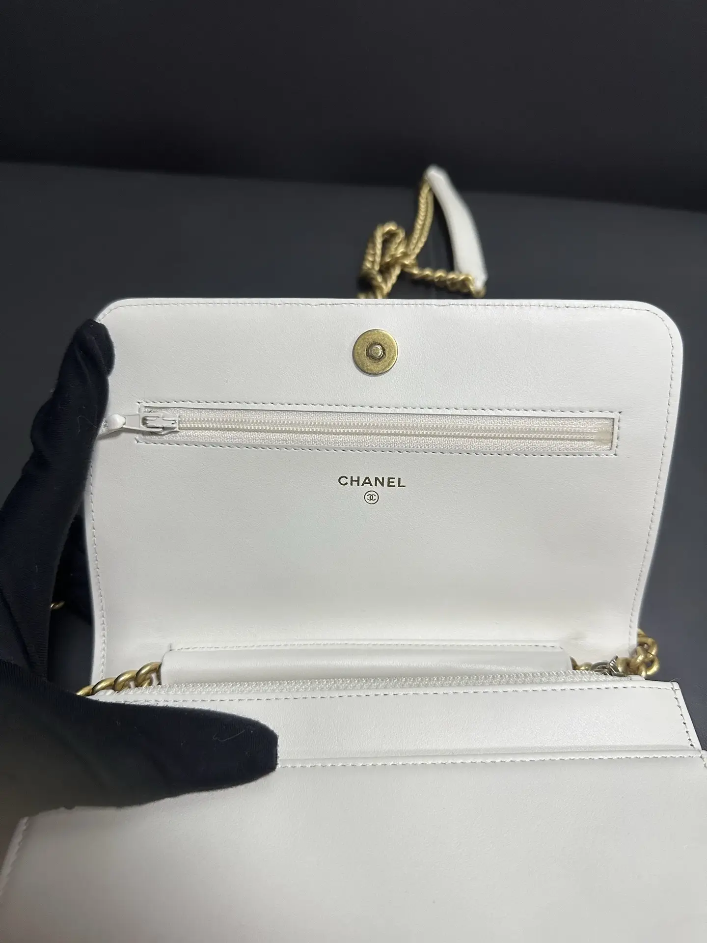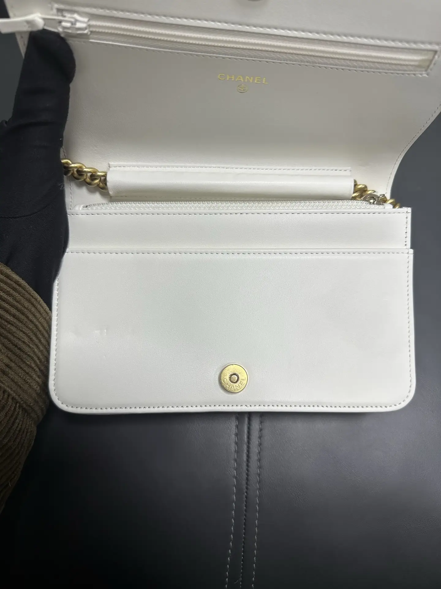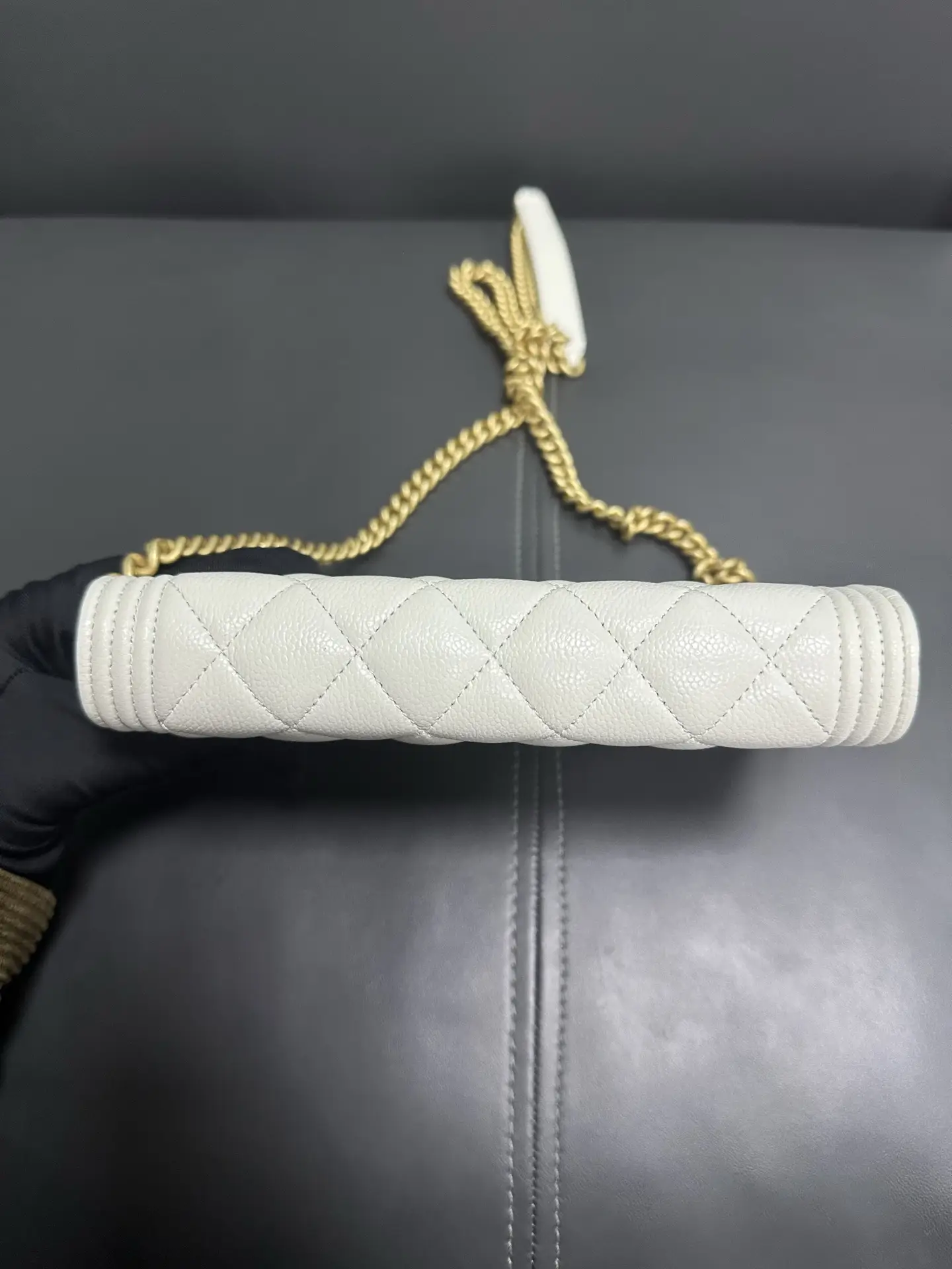 CHANEL Boy Wallet on Chain White Caviar Leather