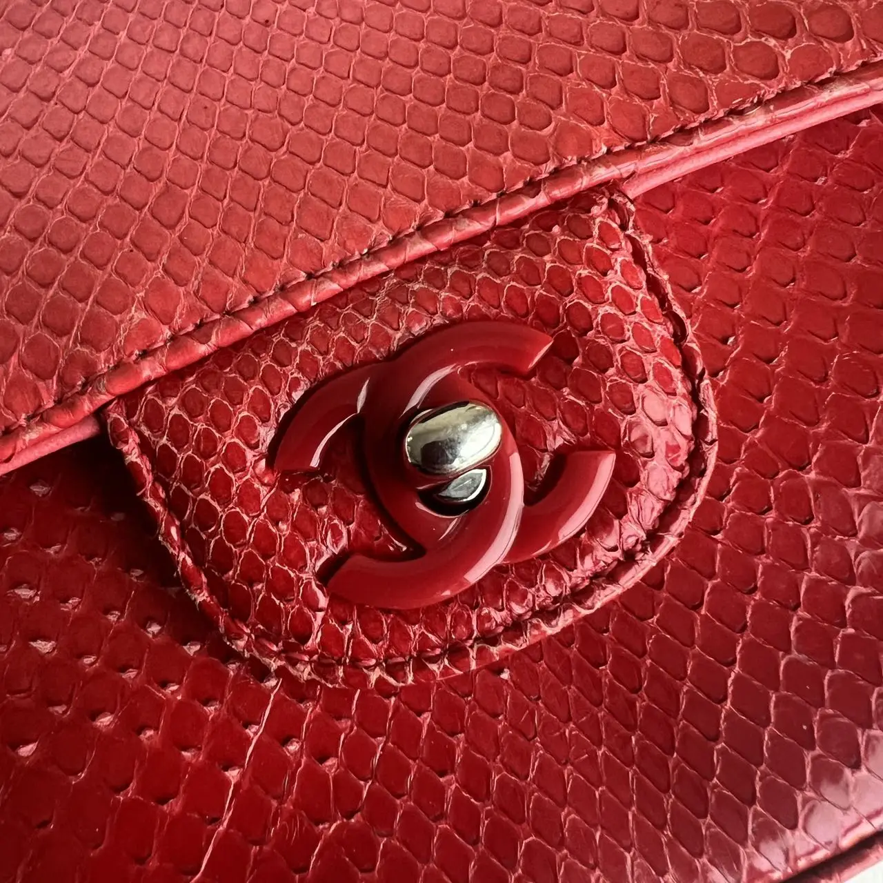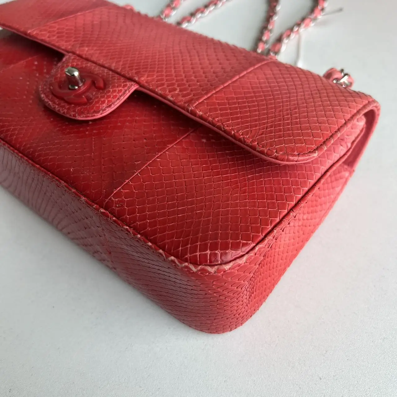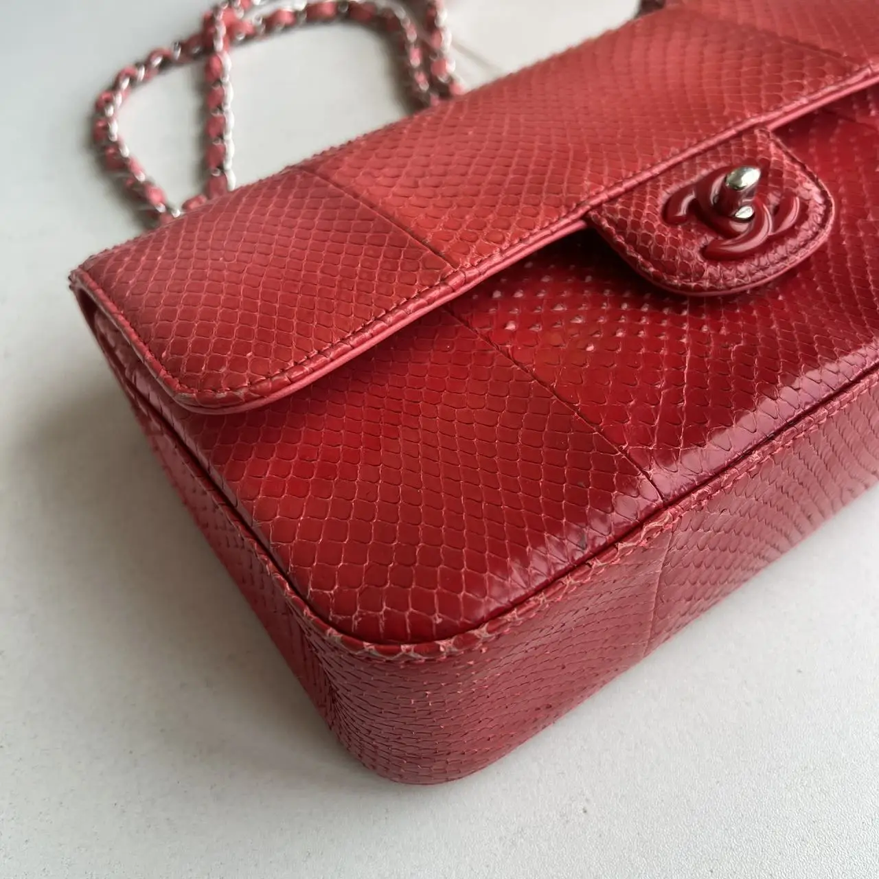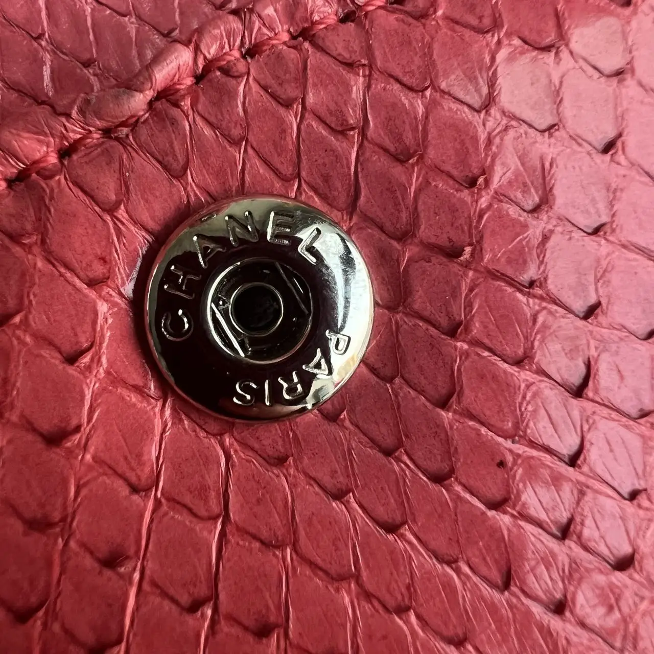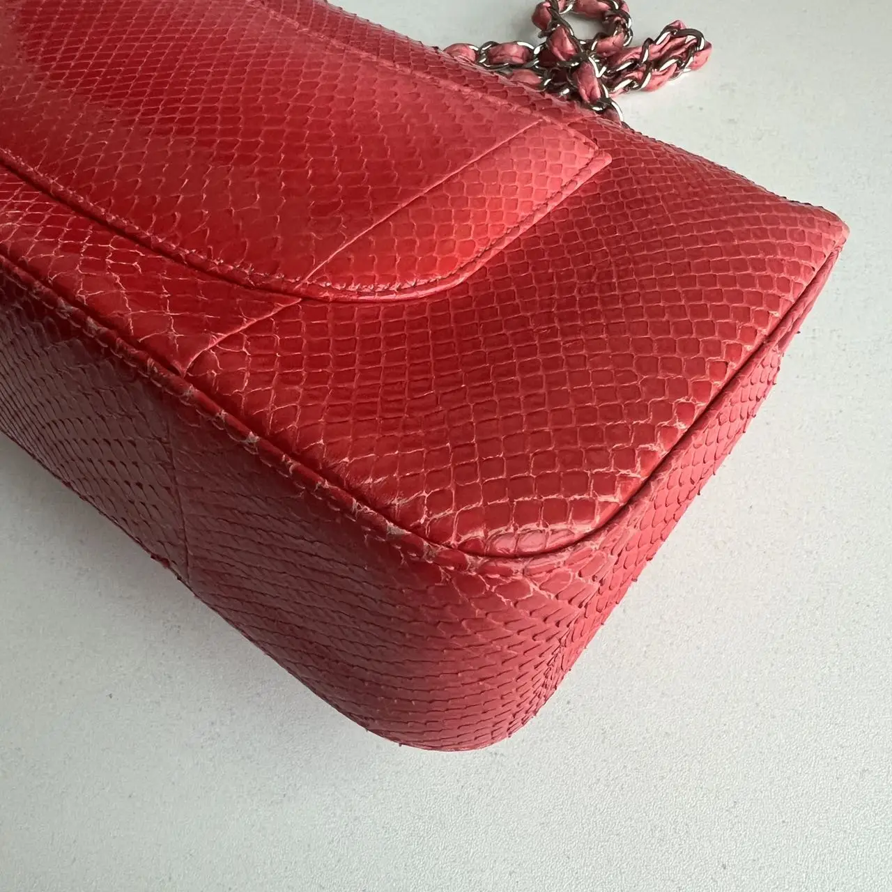 The CHANEL Medium Classic Double Flap Bag in pink ombré python is an exquisite and rare statement piece, where the iconic dual-flap silhouette and diamond quilting are rendered in the luminous, color-shifting texture of exotic python, offering a breathtaking fusion of timeless elegance and modern glamour.