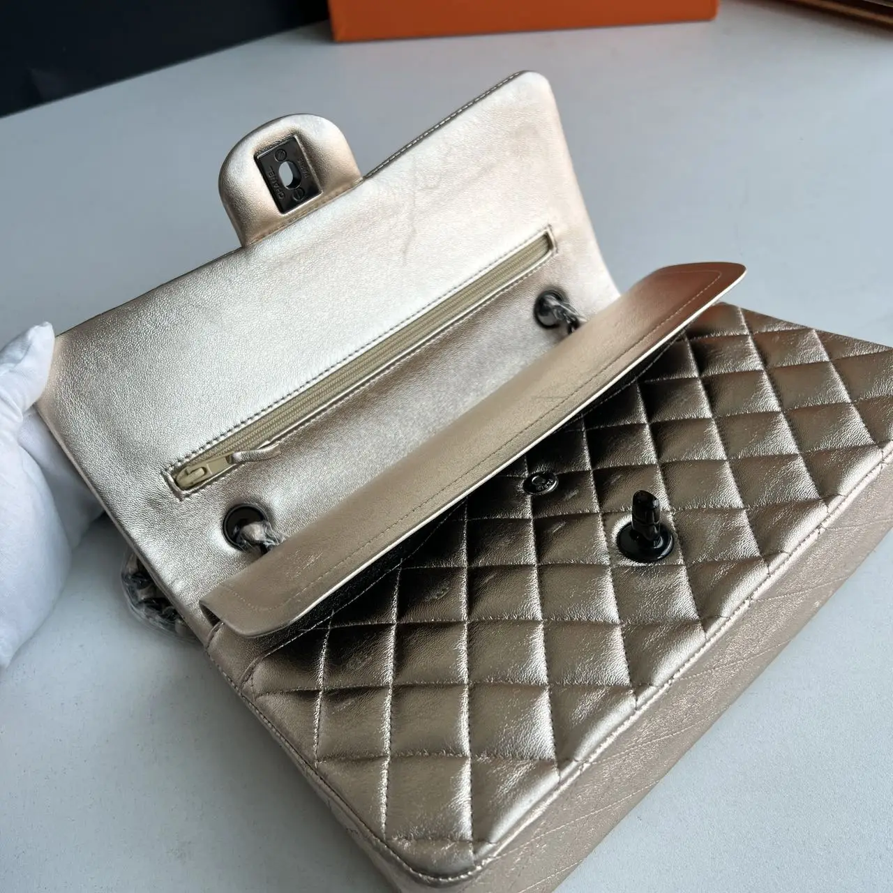• Material: Gold Lambskin
