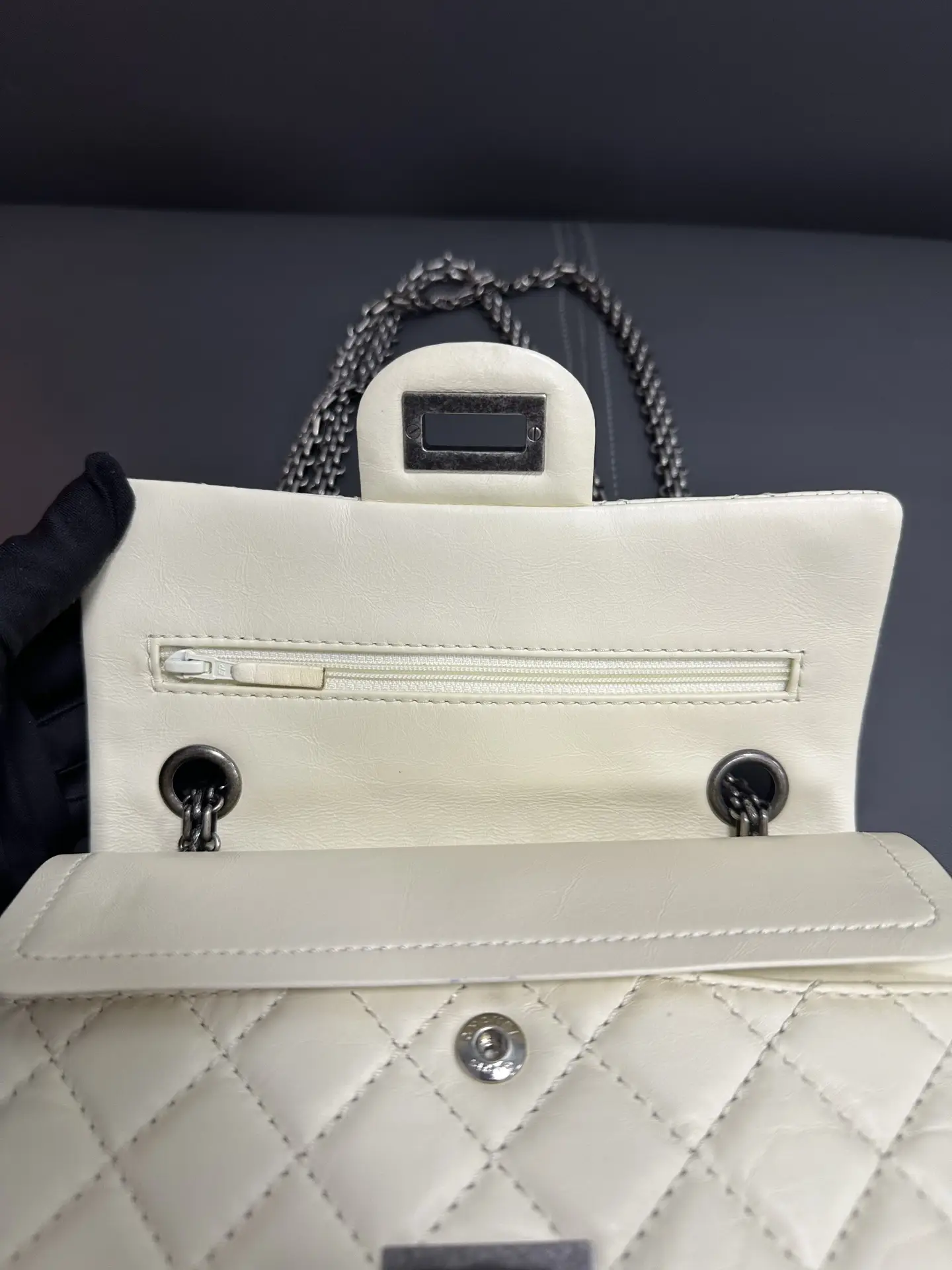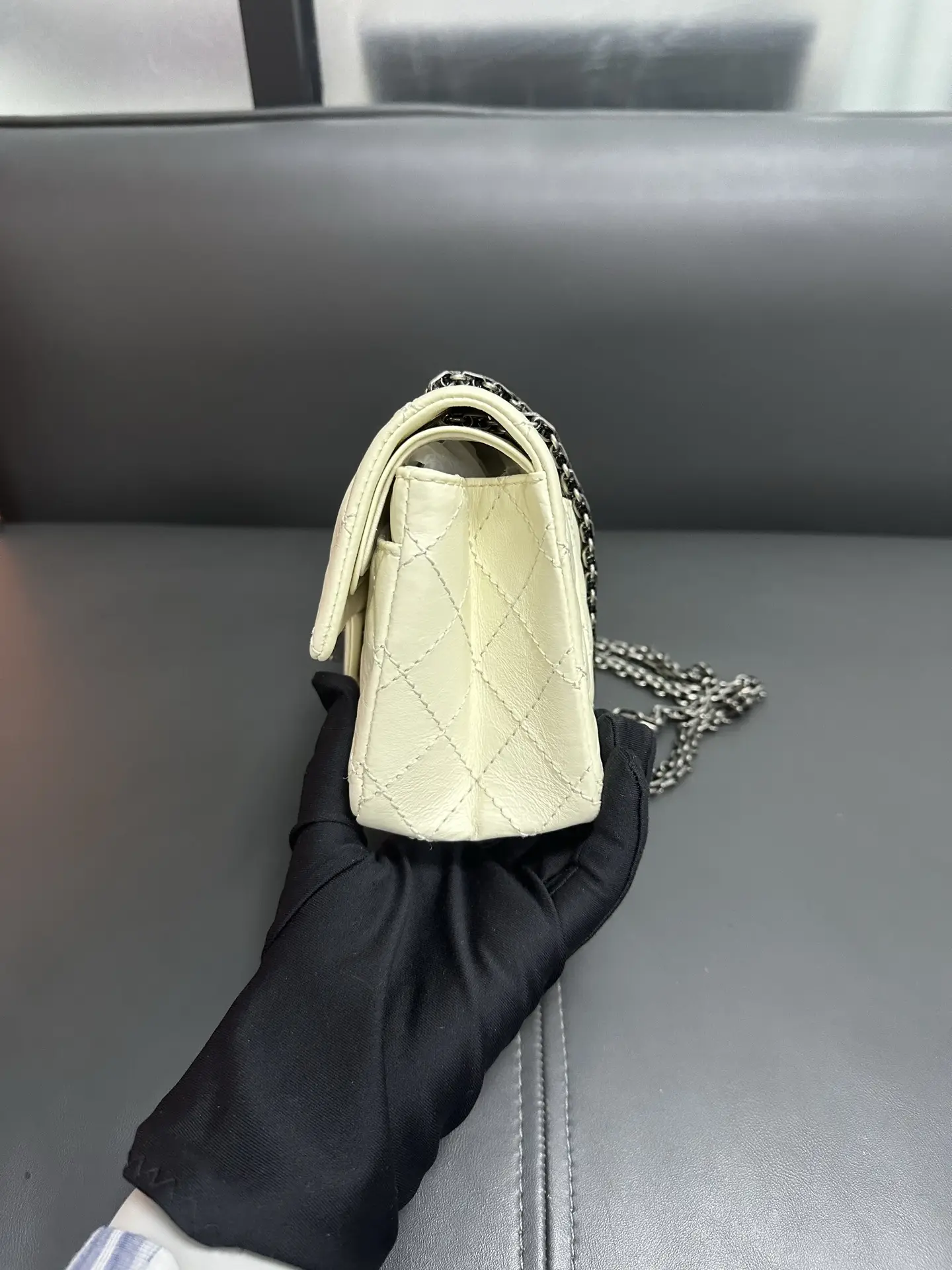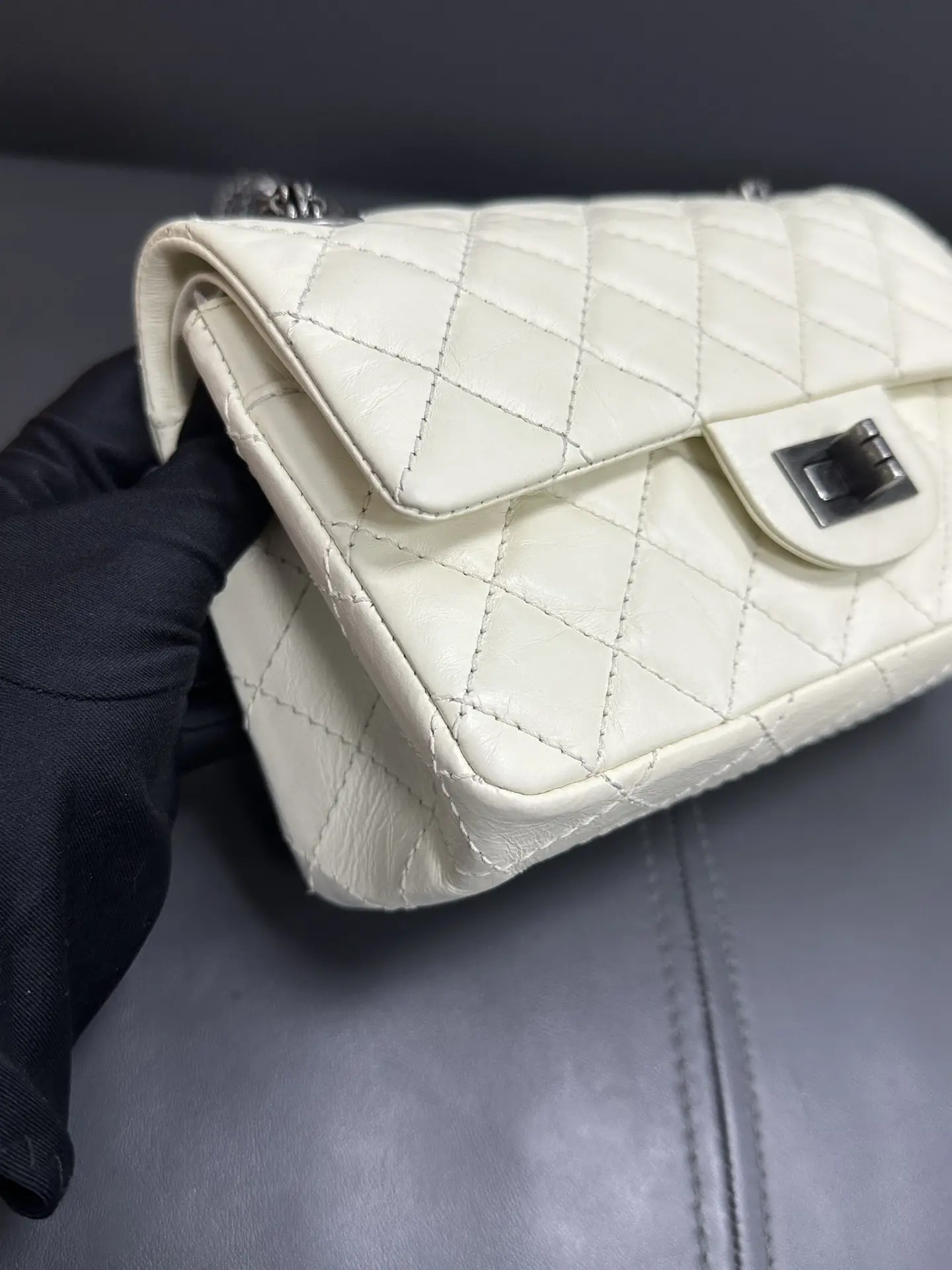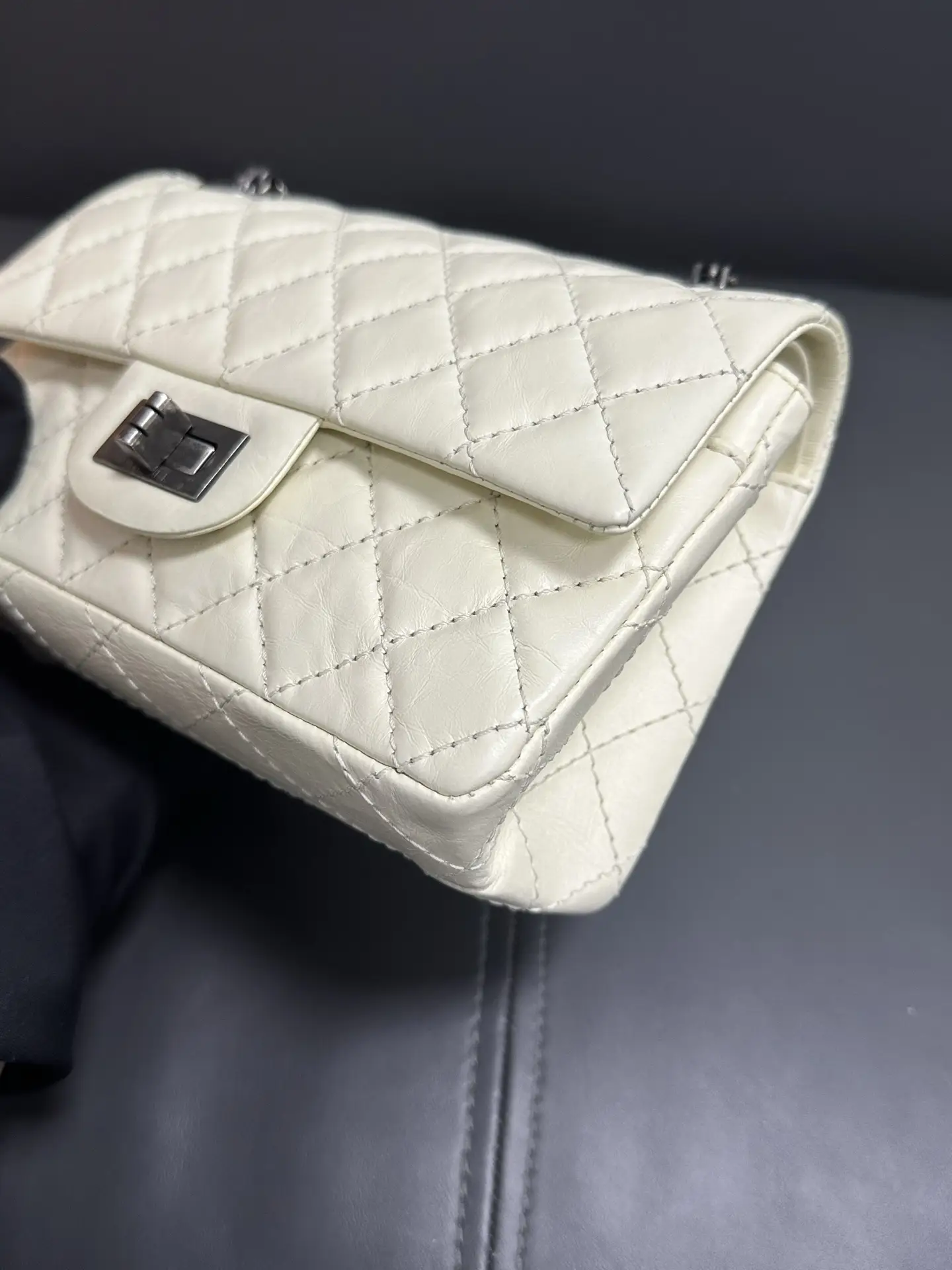 CHANEL 2.55 Reissue 226 Aged Calfskin Quilted Dark Grey