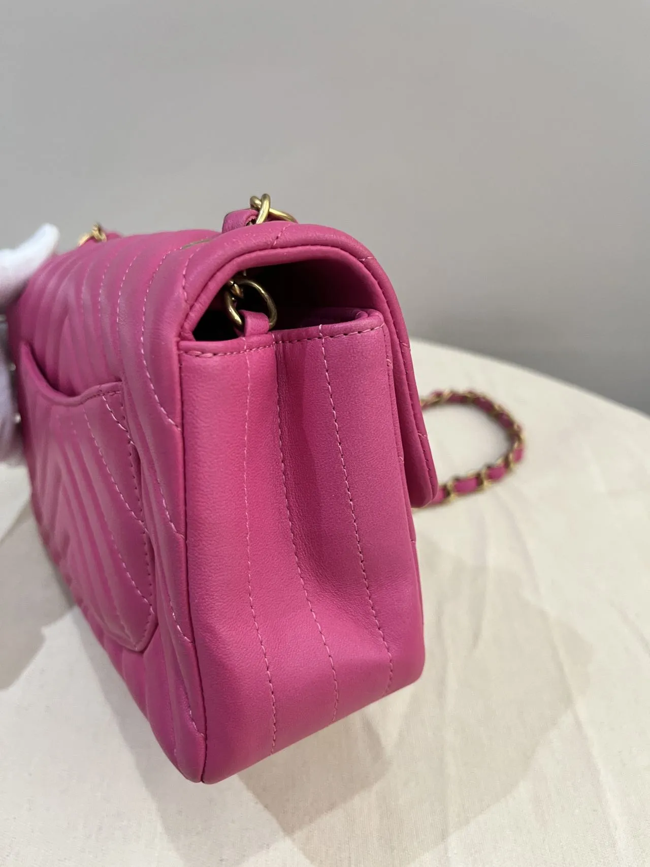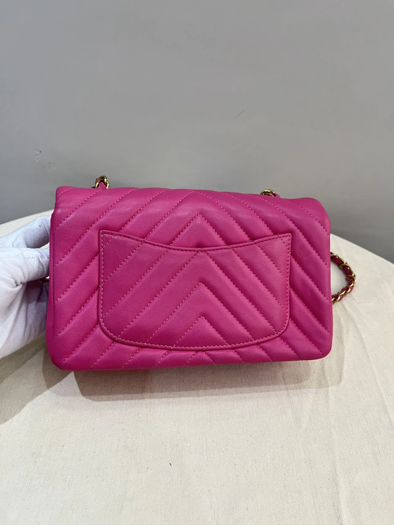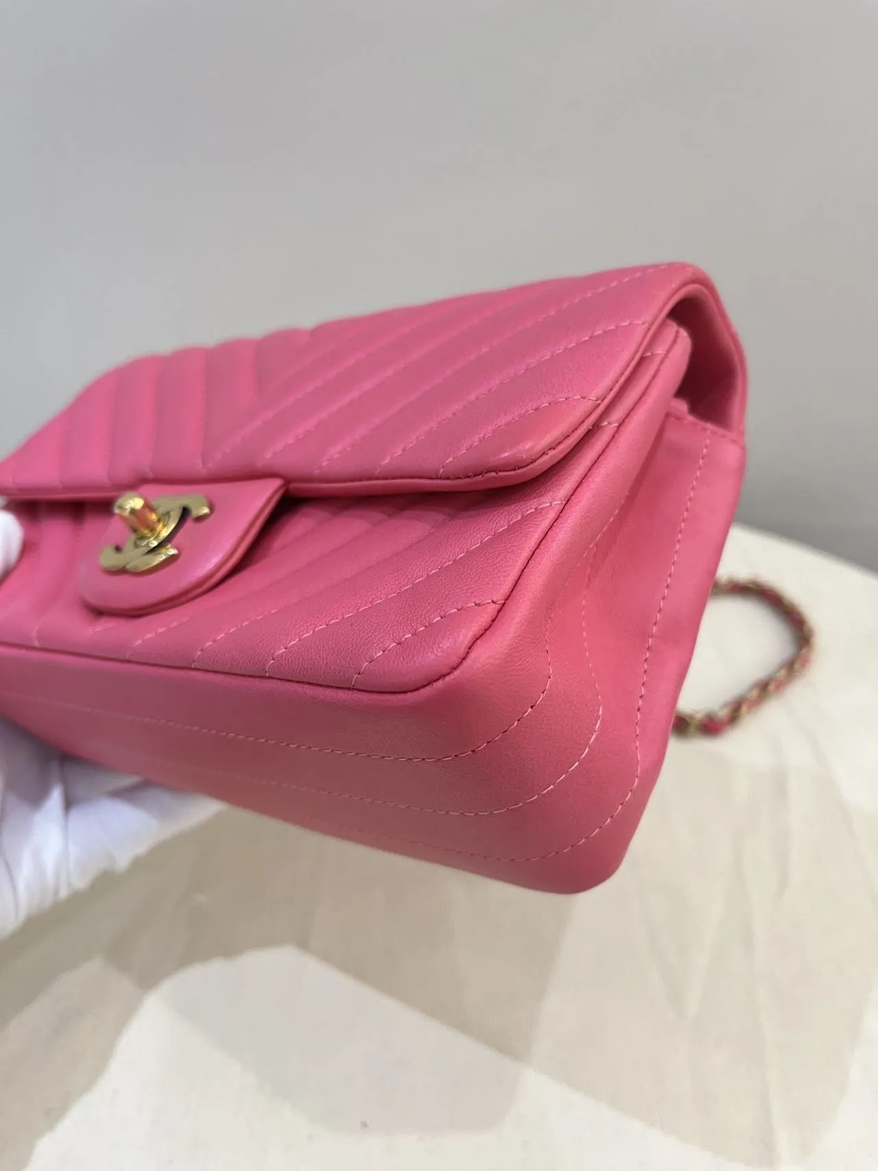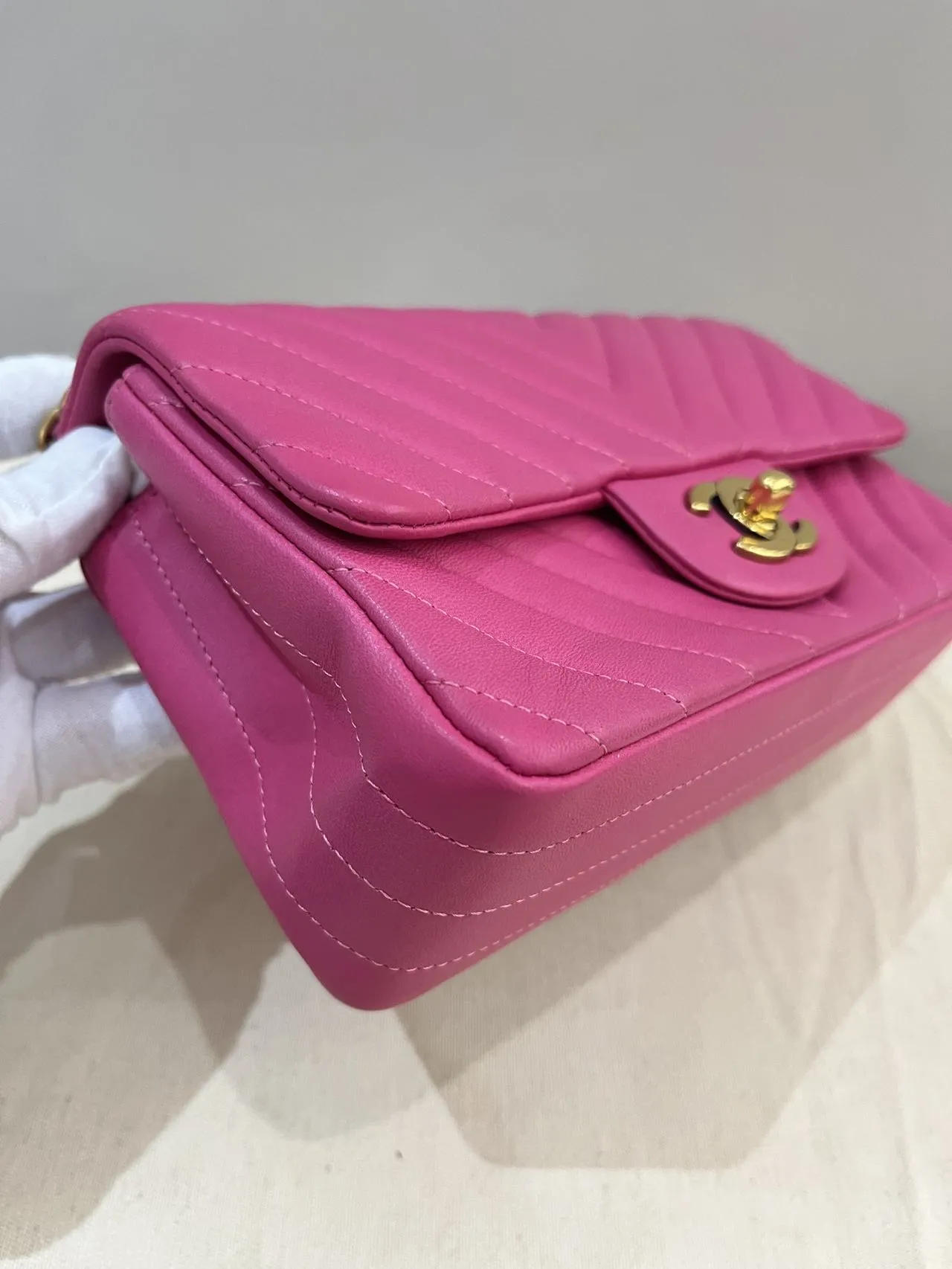 CHANEL Mini Rectangular Chevron Flap Pink Bag Gold Hardware