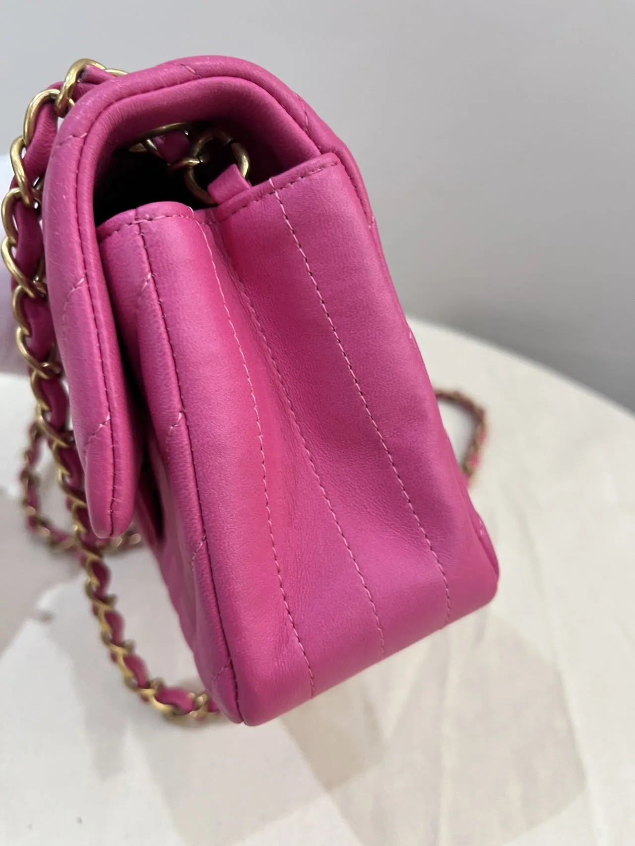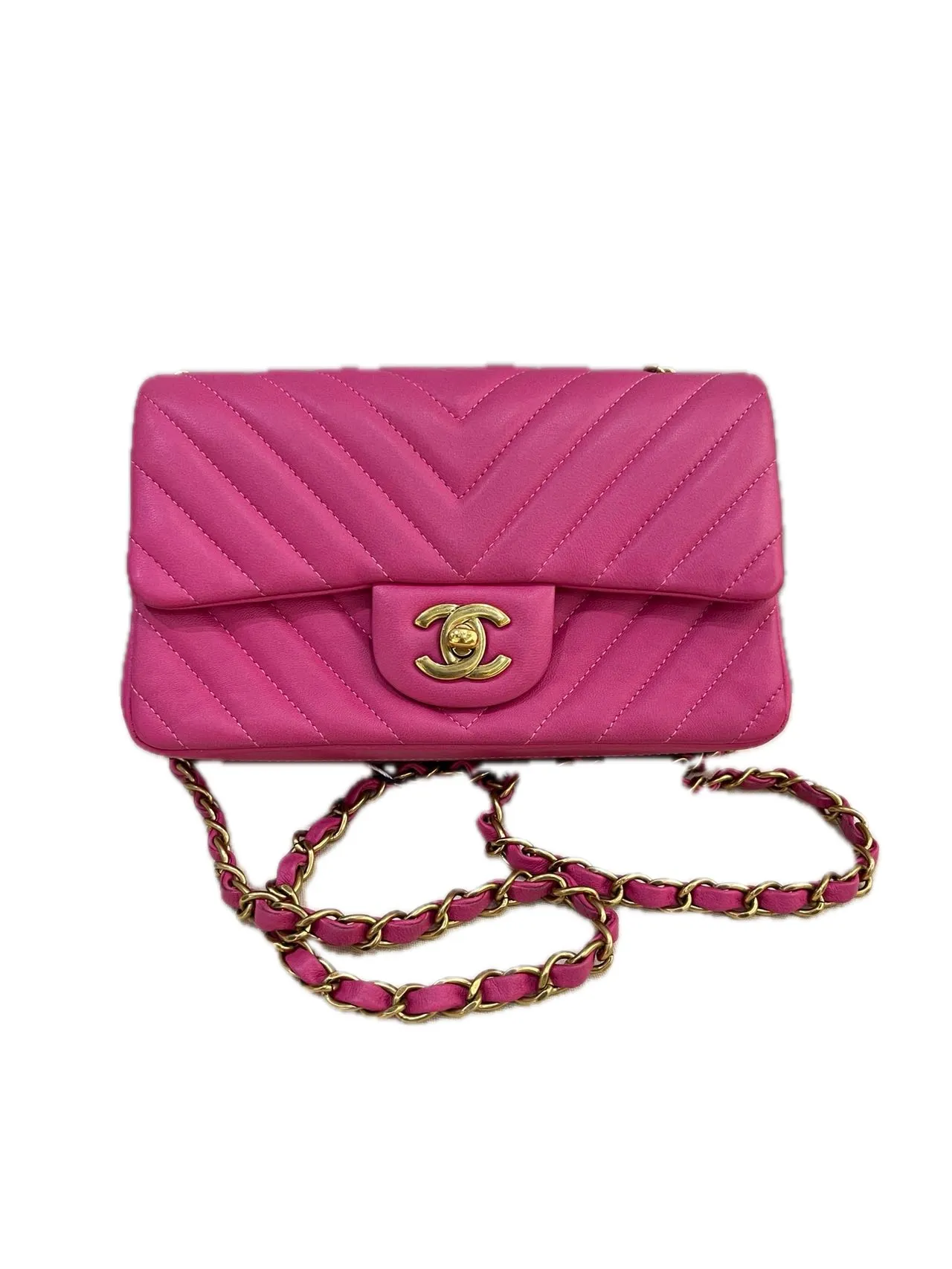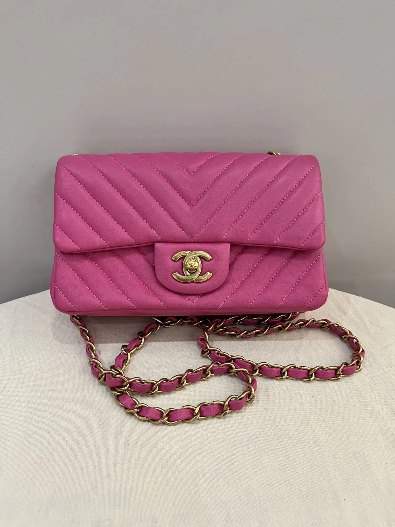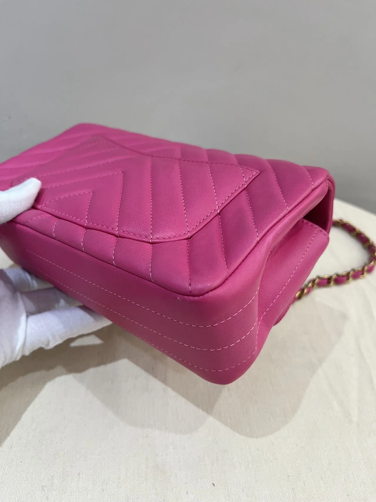 CHANEL Mini Rectangular Chevron Flap Pink Bag Gold Hardware