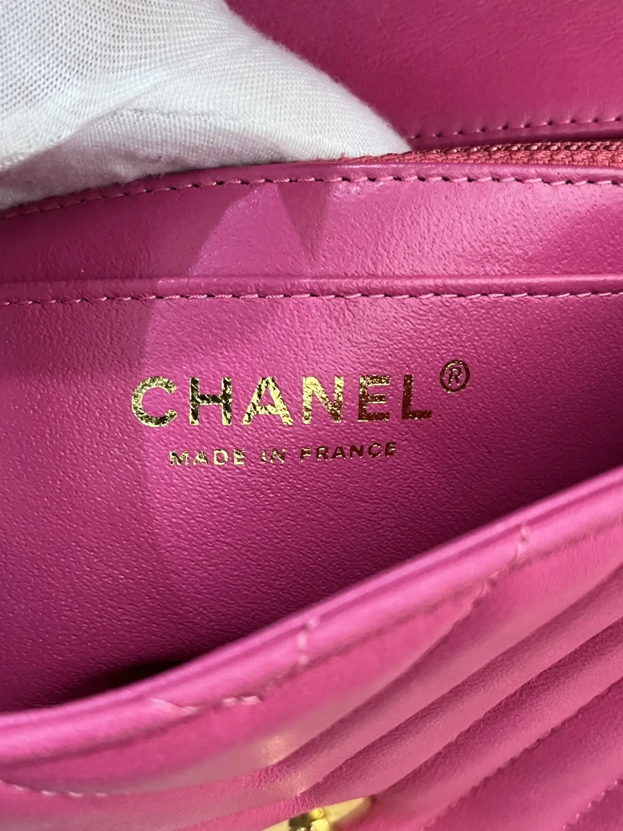 Home/WOMENS/ALL BAGS/CHANEL Mini Rectangular Chevron Flap Pink Bag Gold Hardware