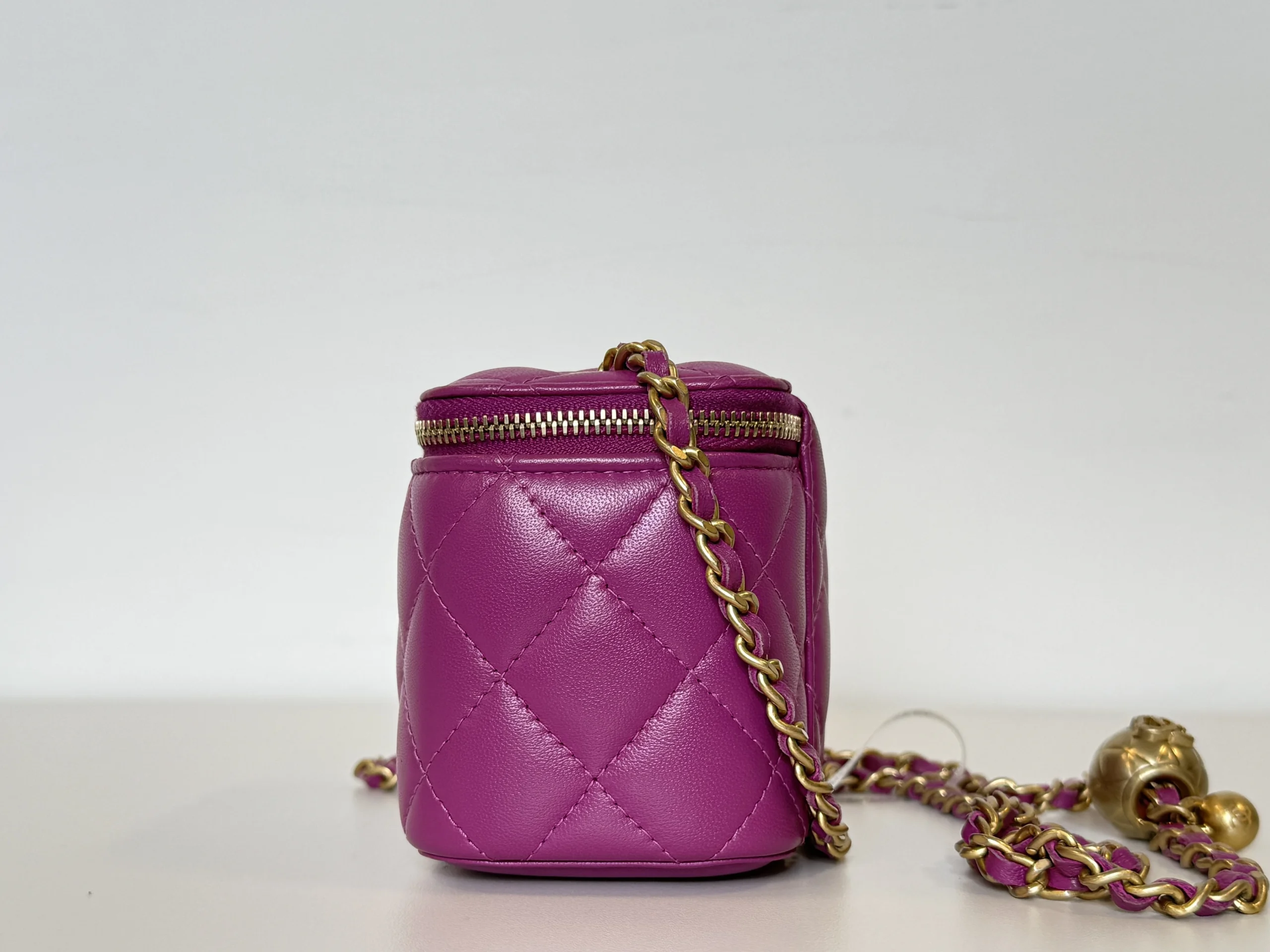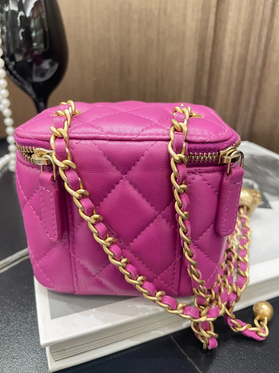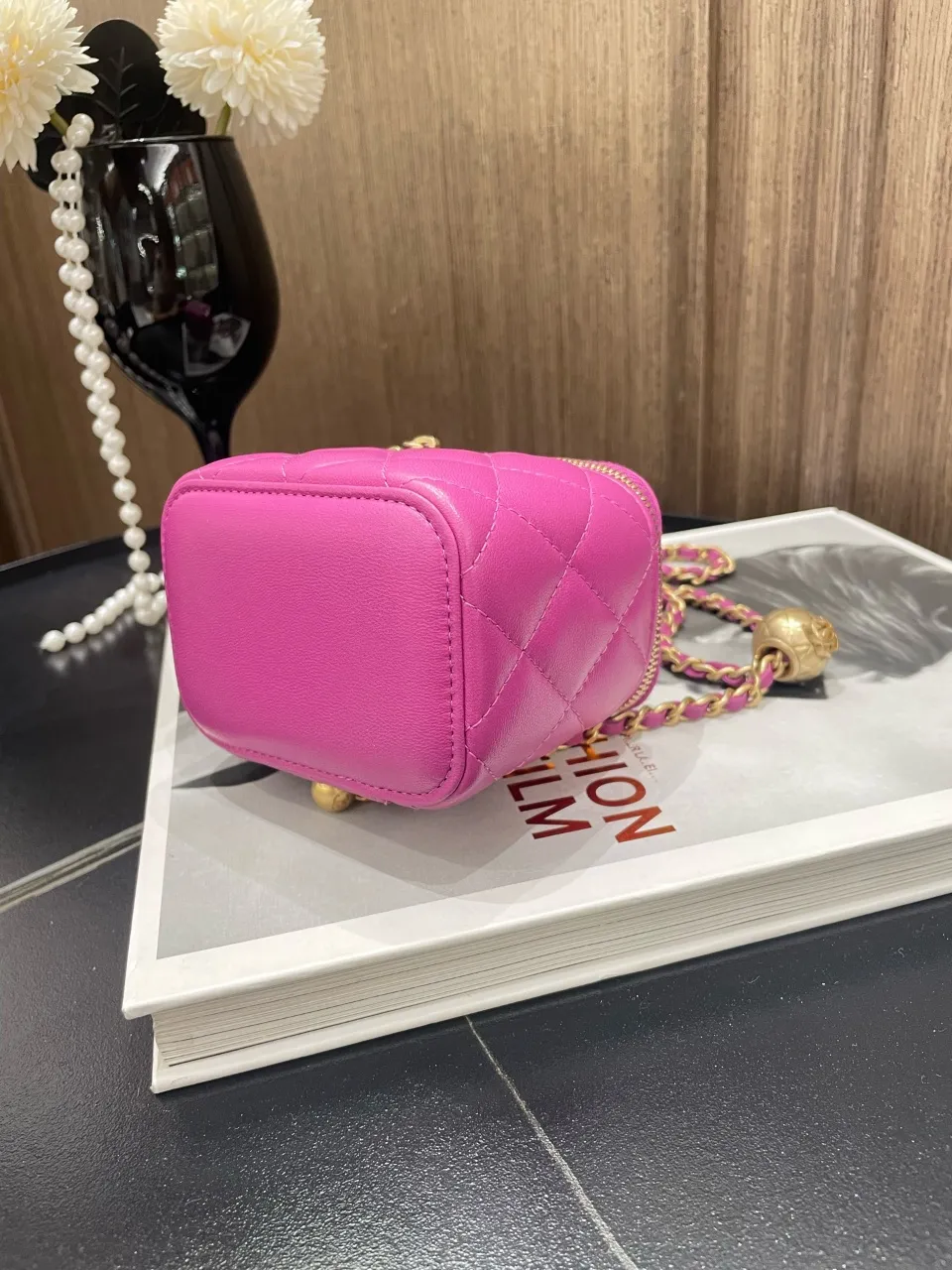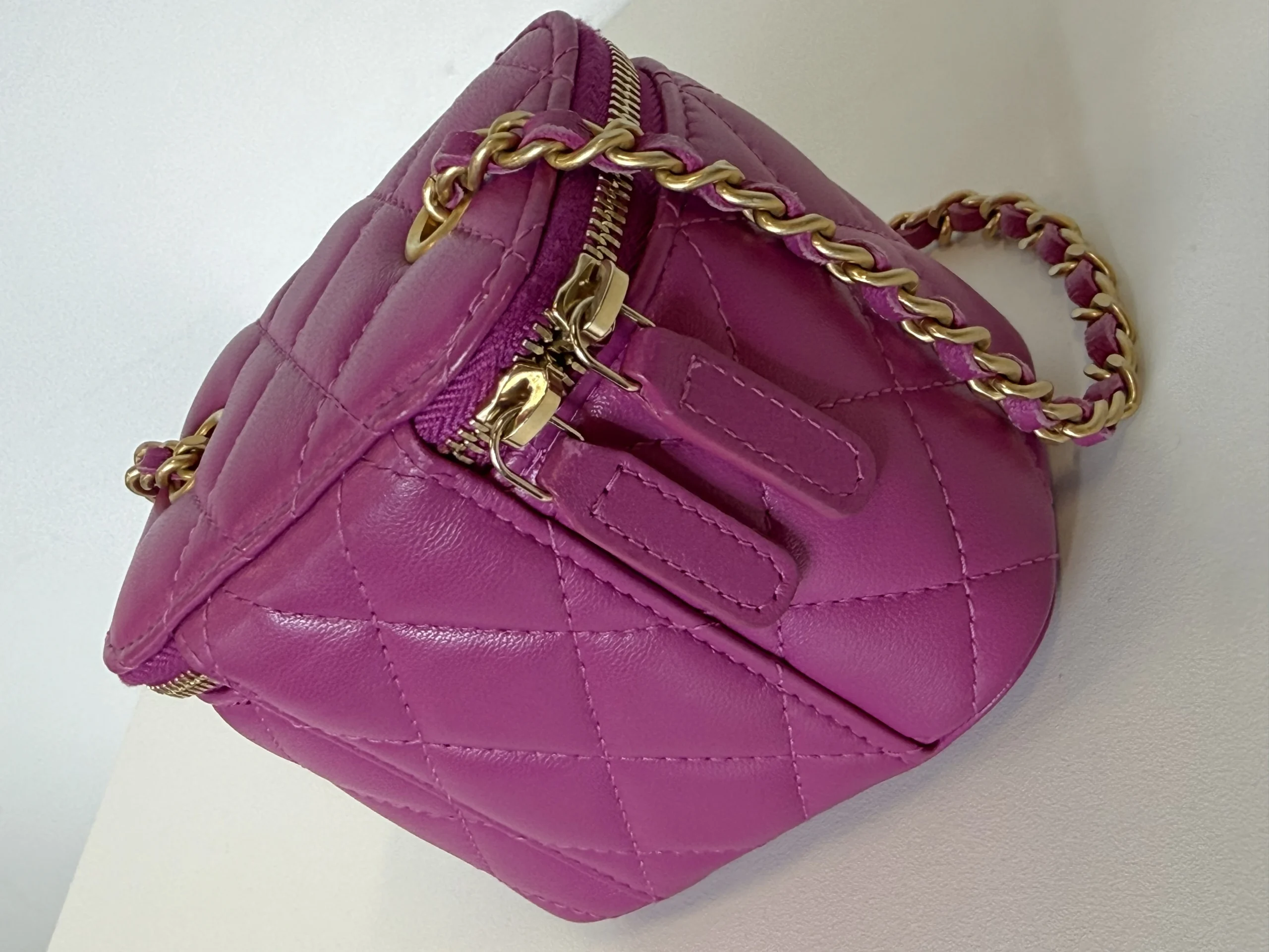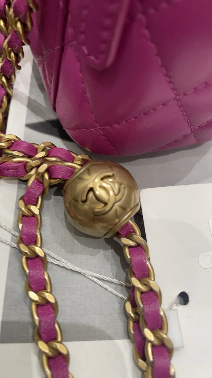 • Pink quilted lambskin leather