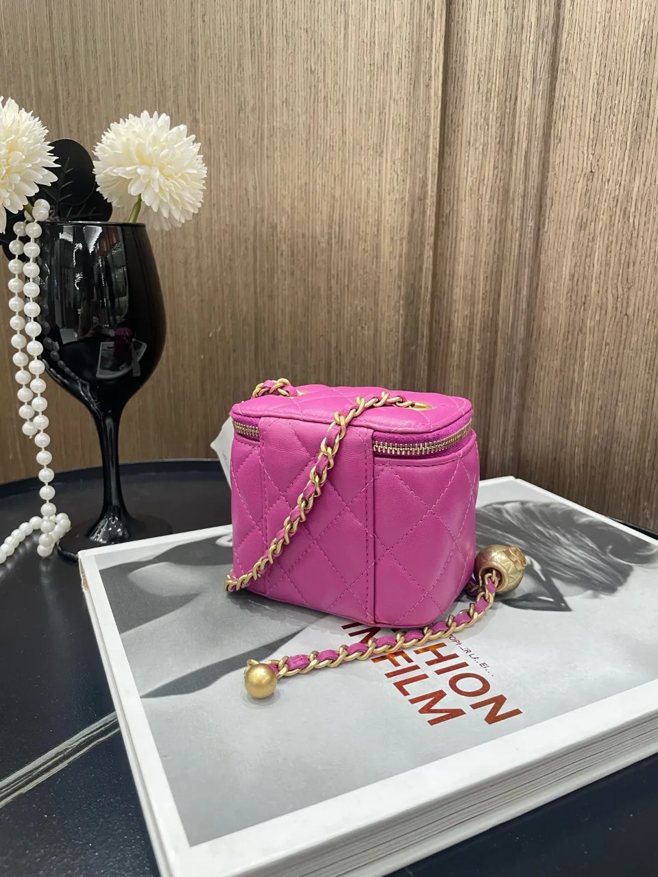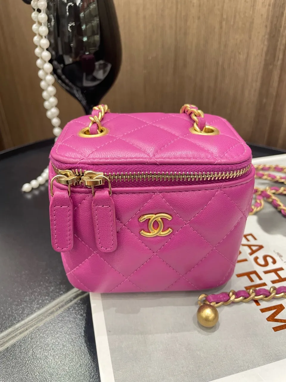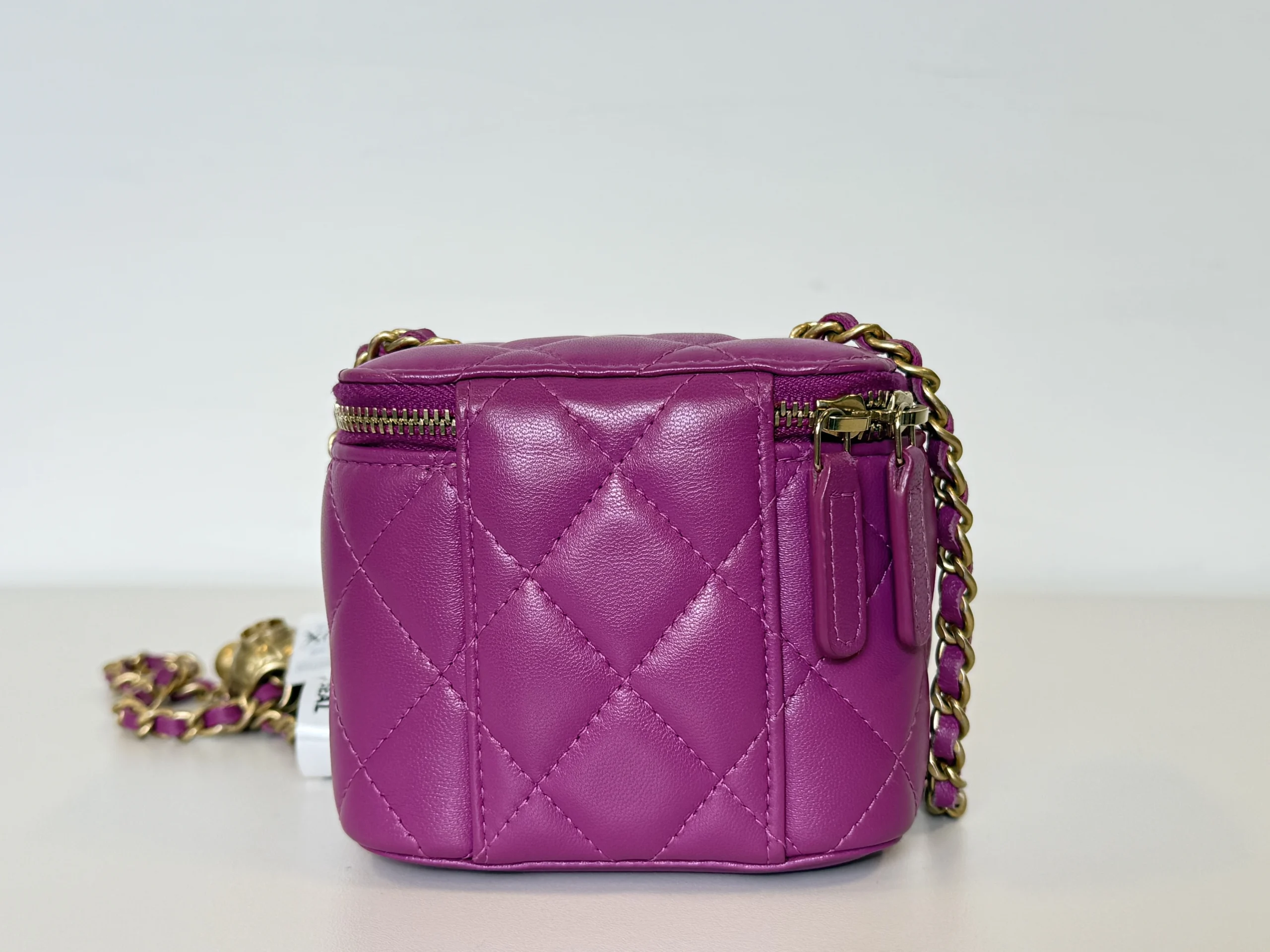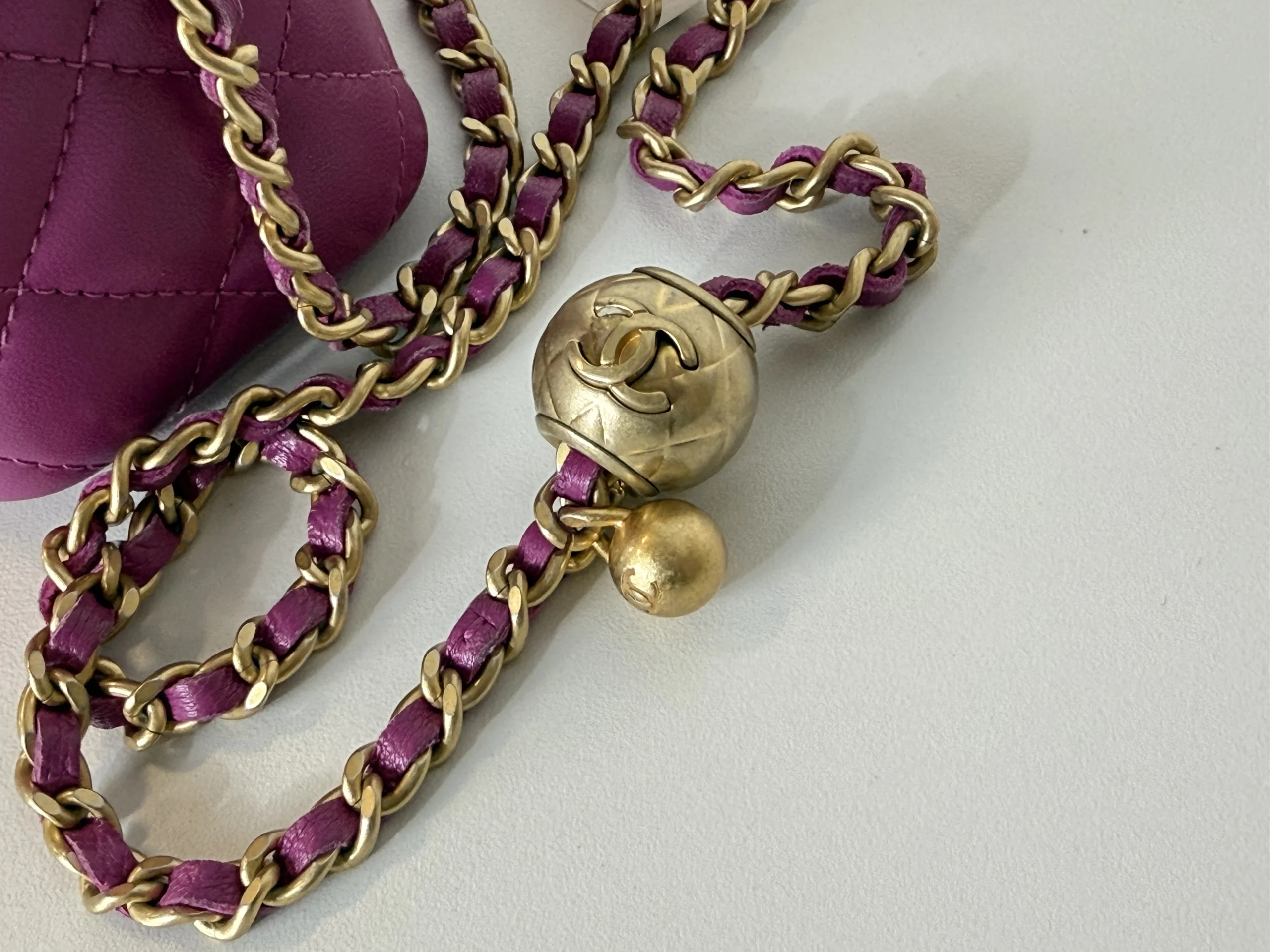 • Pink quilted lambskin leather