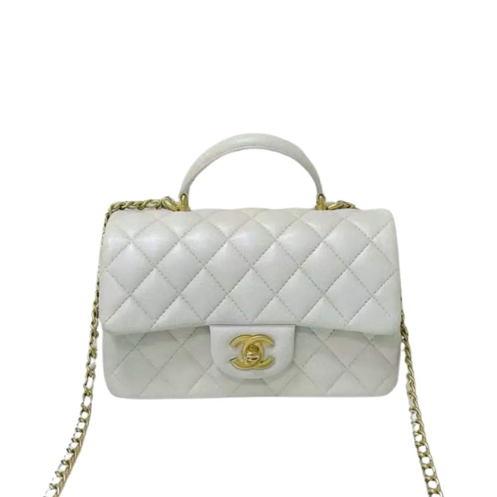 • Material: Grained Shiny Calfskin & Gold-Tone Metal