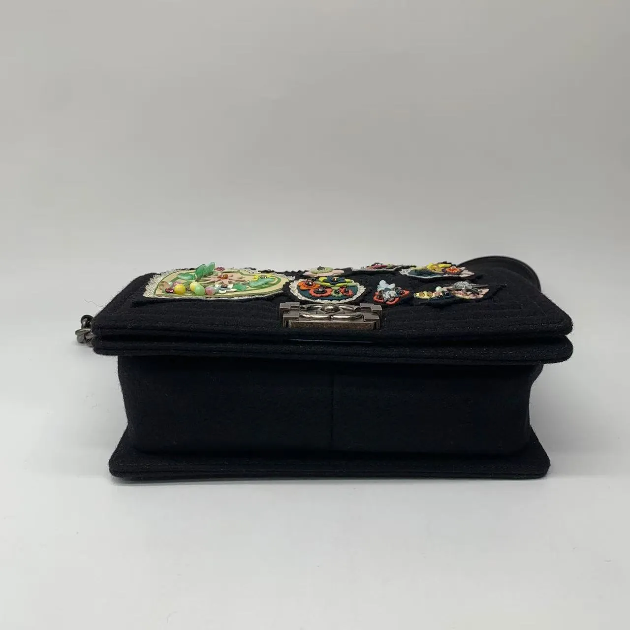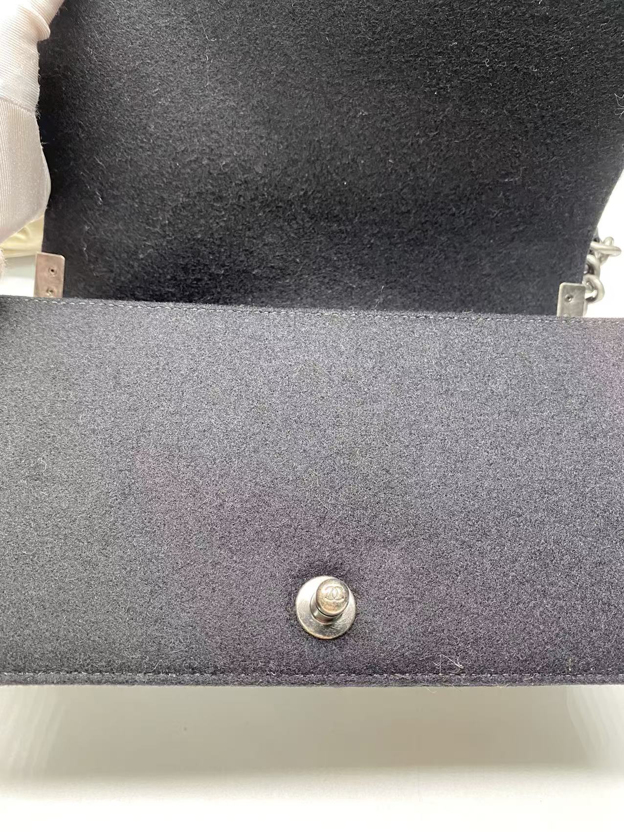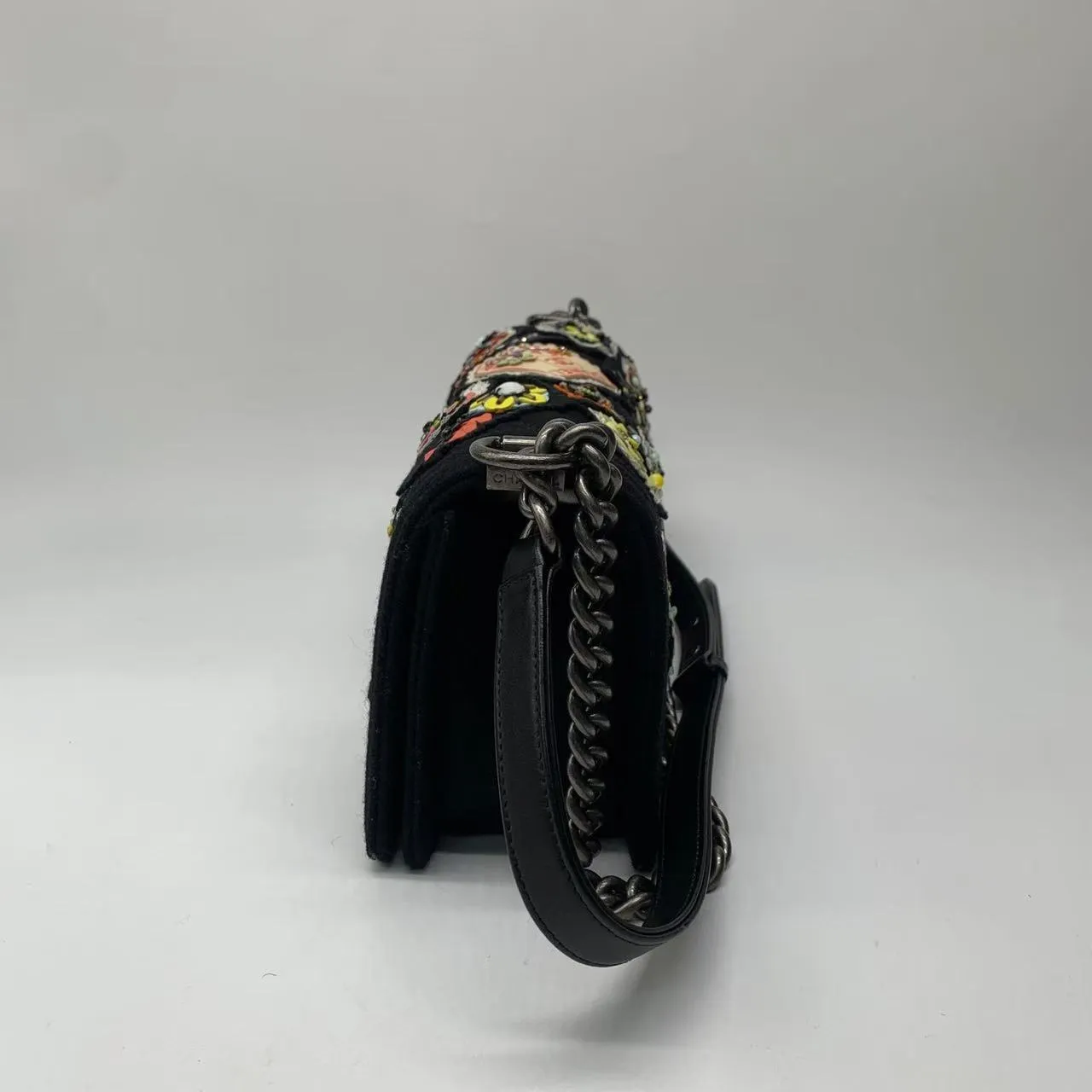 • Chanel Paris-Salzburg Metiers D’Art Boy Flap Bag with Embellishments. Silver tone hardware with push lock double C closure