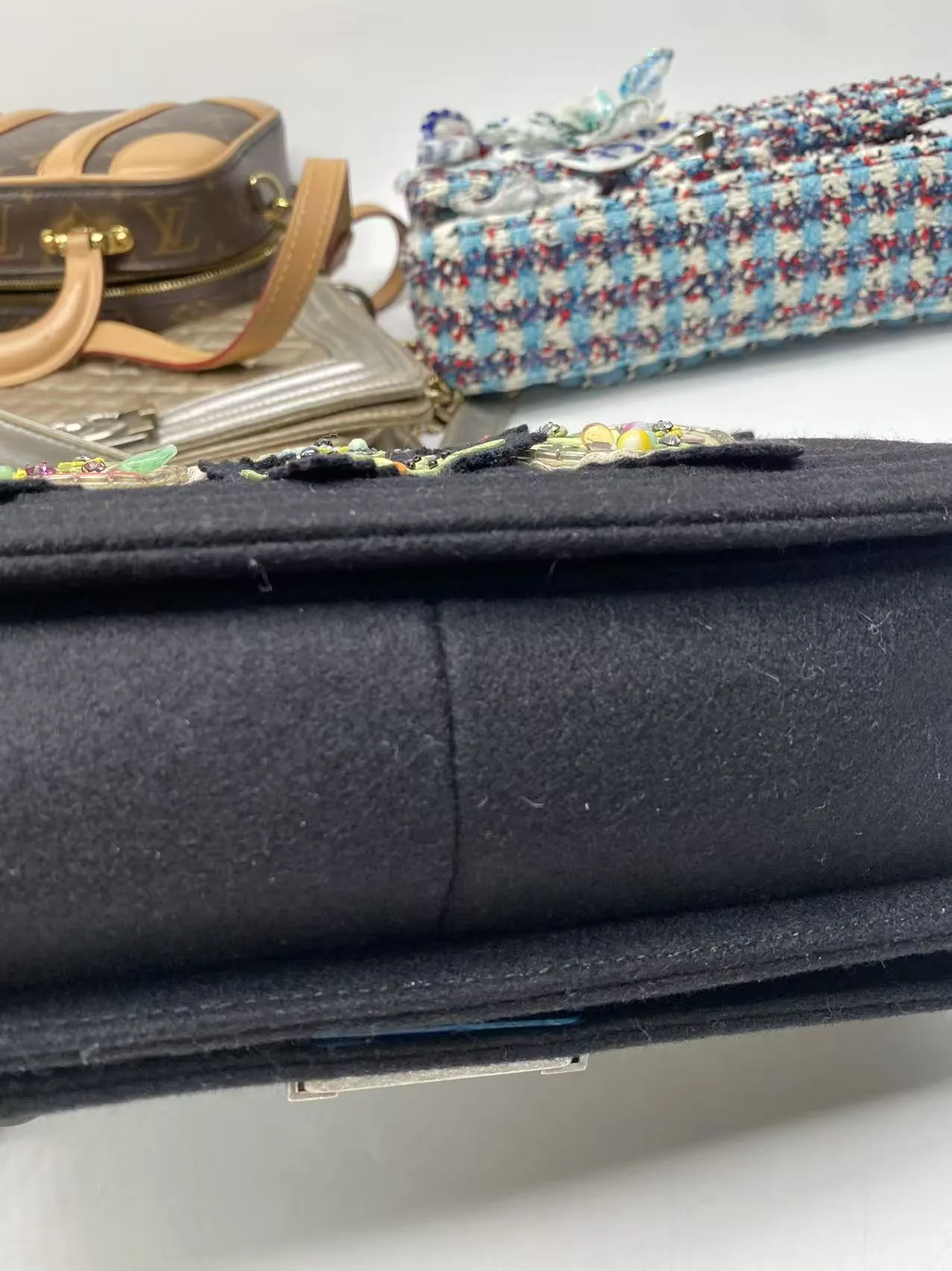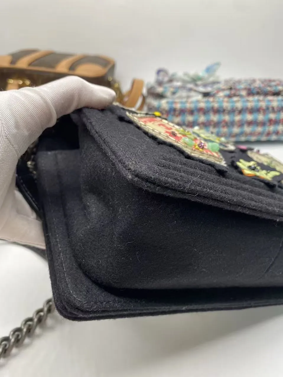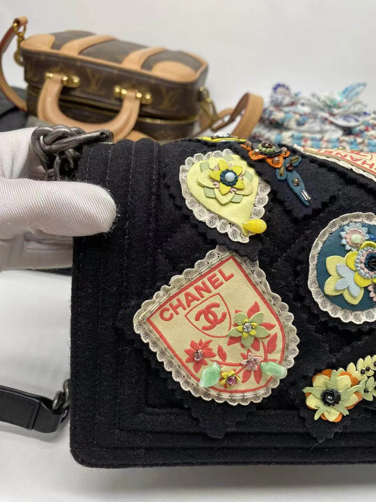The CHANEL Paris-Salzburg Medium Boy Bag New is an rare 2015 Collector’s Edition. A rare piece of fashion history with this brand new Chanel Boy Bag. Hand-finished by artisans, it features a unique embroidered quilted felt exterior and gunmetal hardware, ensuring a look you won’t find elsewhere. This complete collector’s item, made in France, is offered at £3,999.