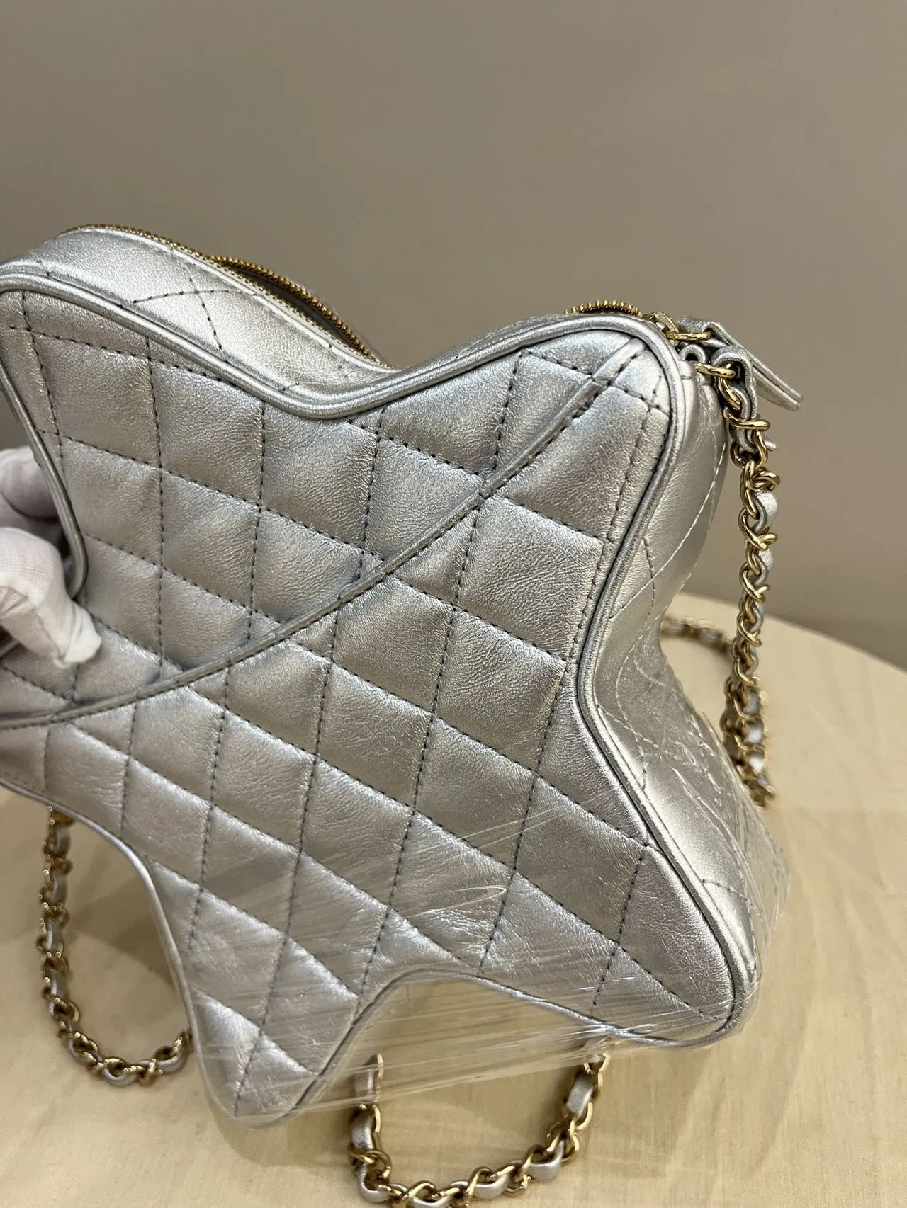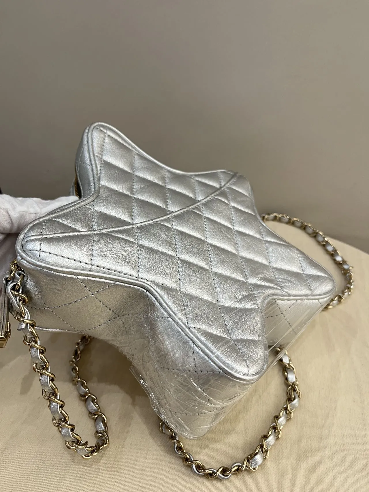 CHANEL Silver Quilted Lambskin Walk of Fame Star Bag